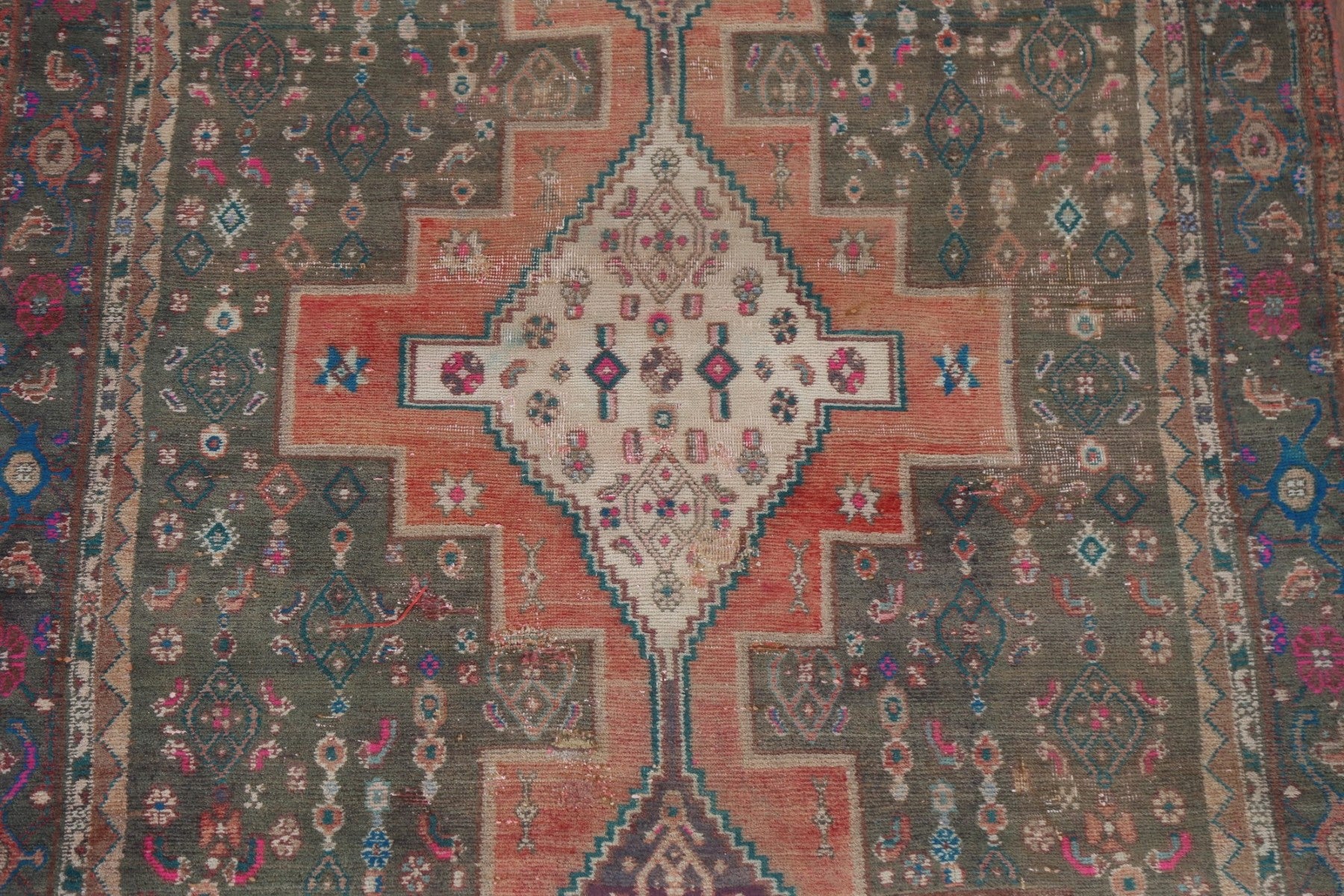 A Beautiful Genuine Persia ( Persia ) Shiraz rug is Hand Knotted by skillful weavers in Persia ( Persia ) with 100% Wool Material. This rug is in Very Good (Low Pile) condition. dimensions are 8' 10'' X 4' 5'' in foot and 269 X 135 in centimeter. the primary color is Green.