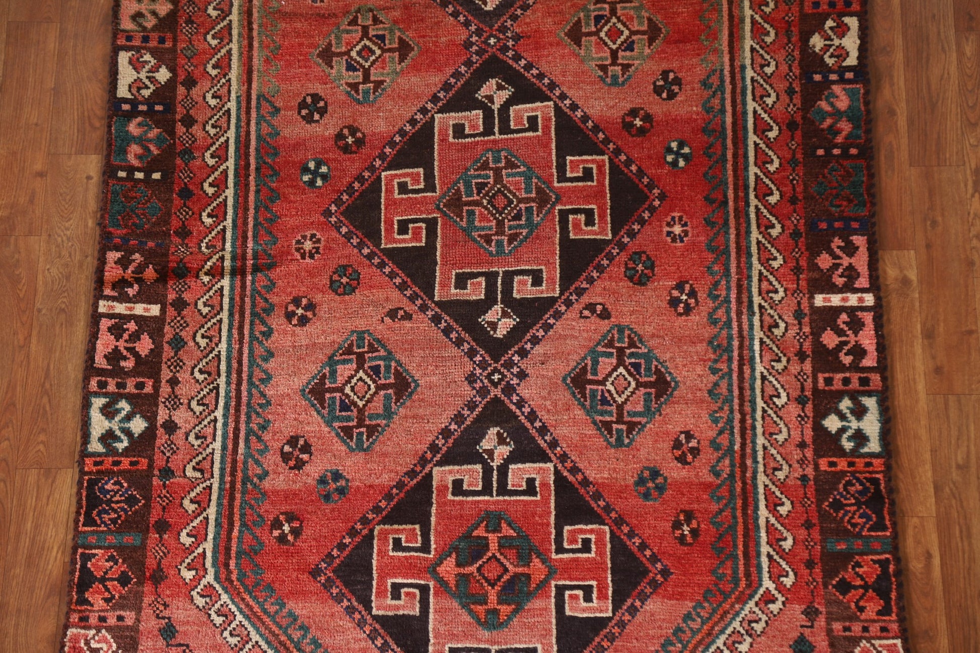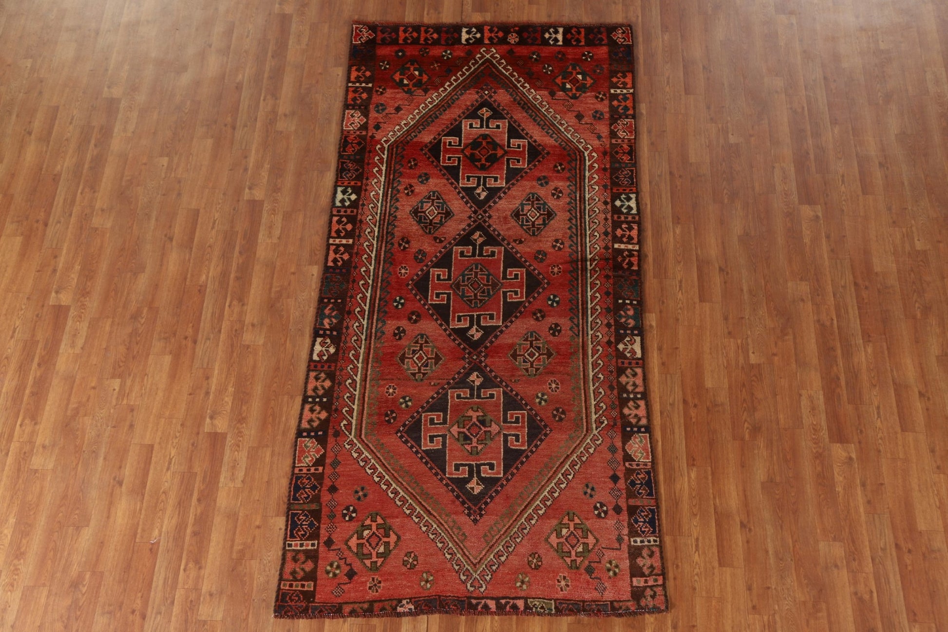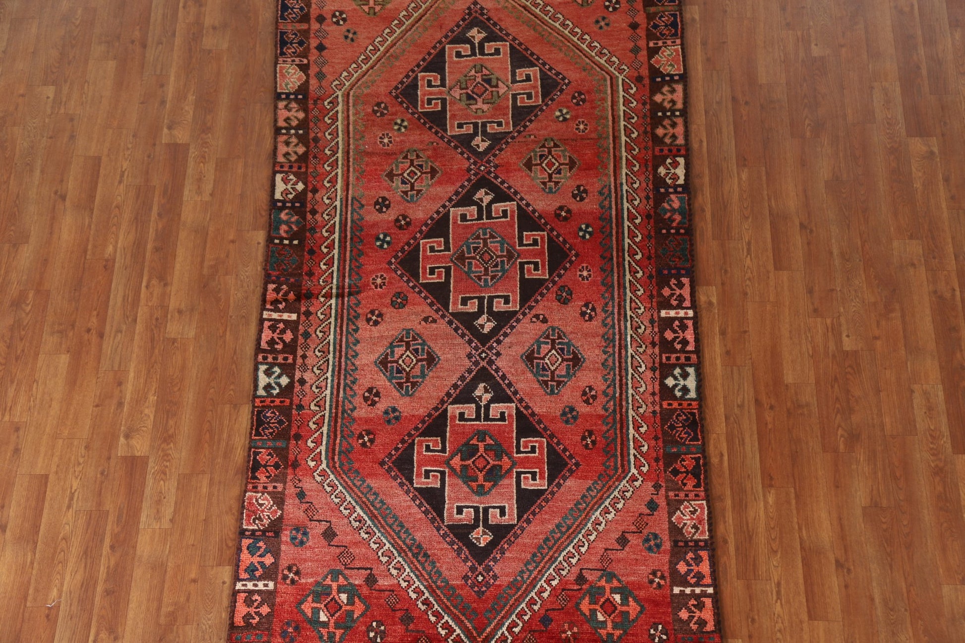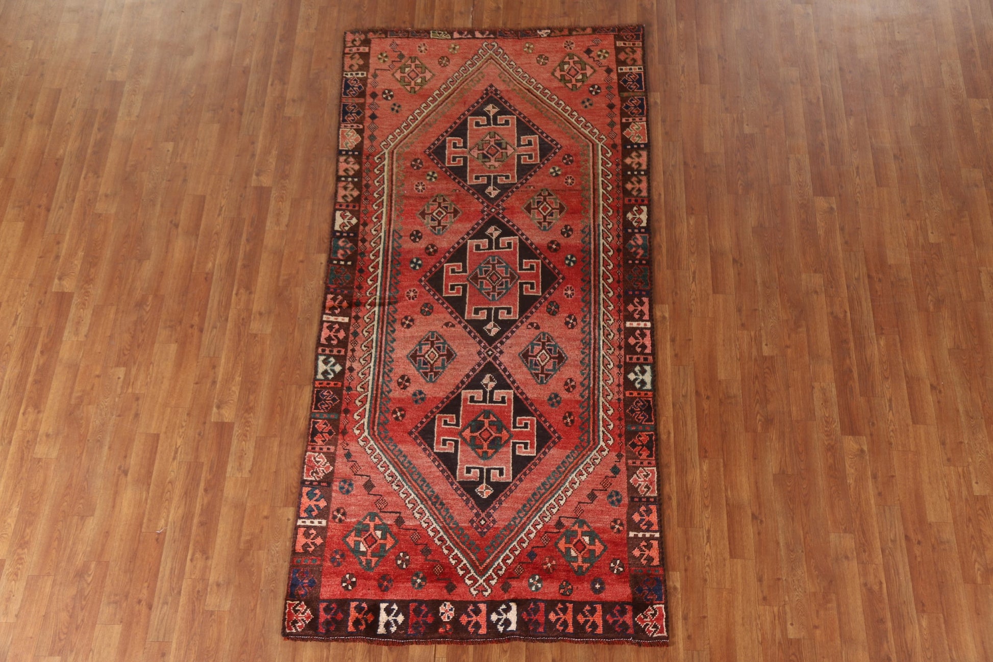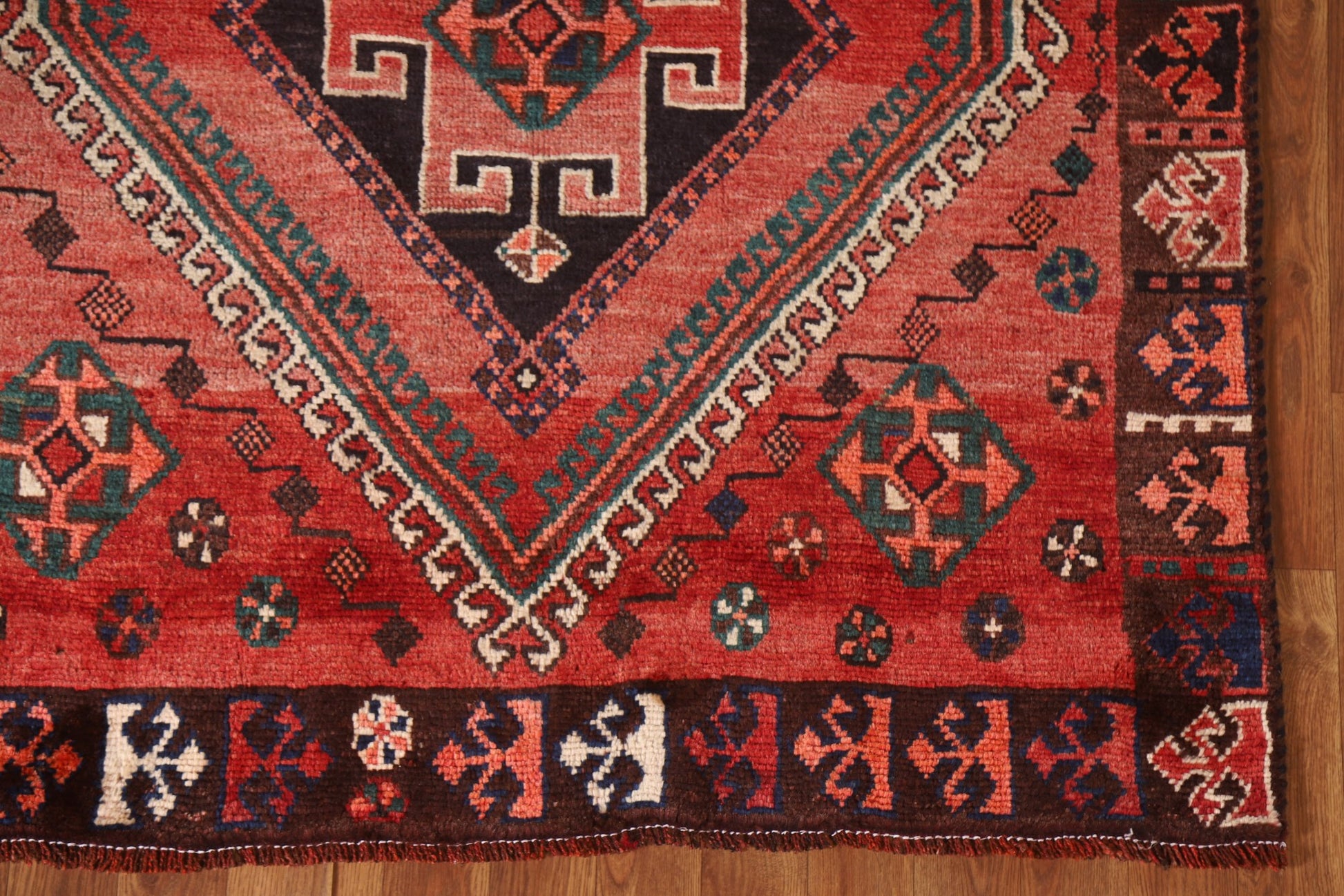 A Beautiful Genuine Persia ( Persia ) Shiraz rug is Hand Knotted by skillful weavers in Persia ( Persia ) with 100% Wool Material. This rug is in Very Good (Abrash) condition. dimensions are 8' 4'' X 4' 1'' in foot and 254 X 124 in centimeter. the primary color is Oranges & Rust.