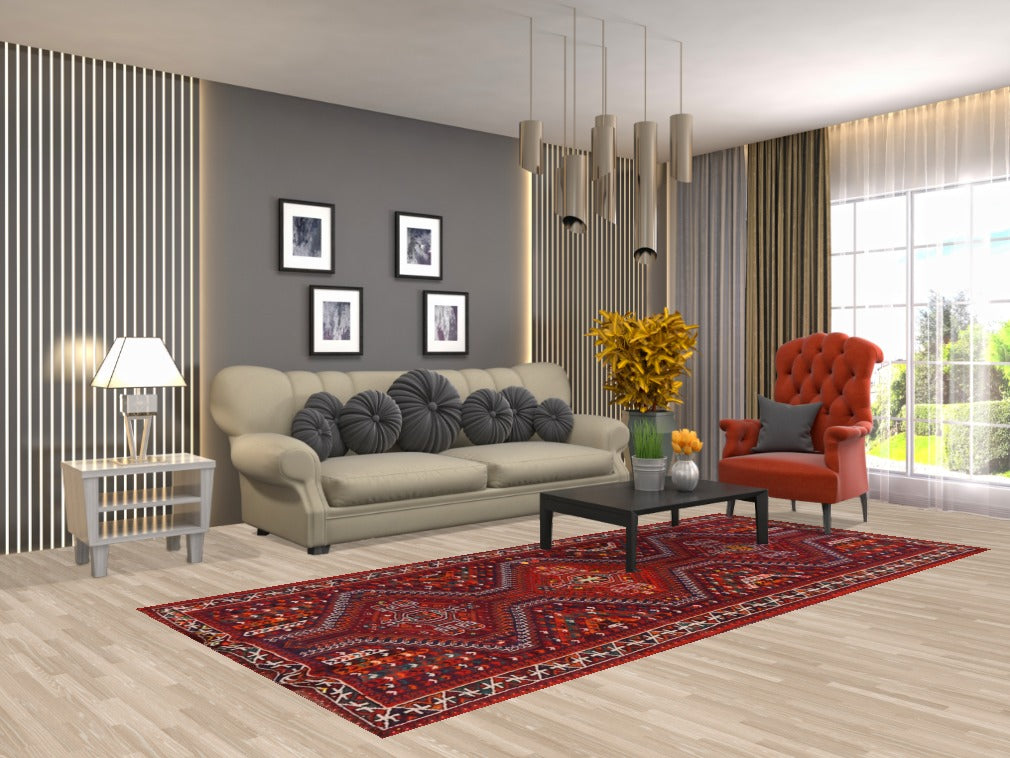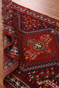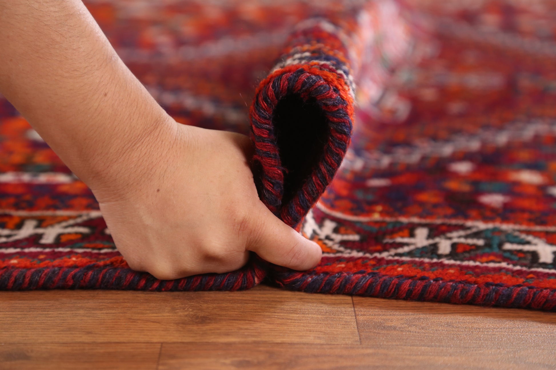 A Beautiful Genuine Persia ( Persia ) Shiraz rug is Hand Knotted by skillful weavers in Persia ( Persia ) with 100% Wool Material. This rug is in Very Good condition. dimensions are 9' 8'' X 4' 4'' in foot and 295 X 132 in centimeter. the primary color is Red.