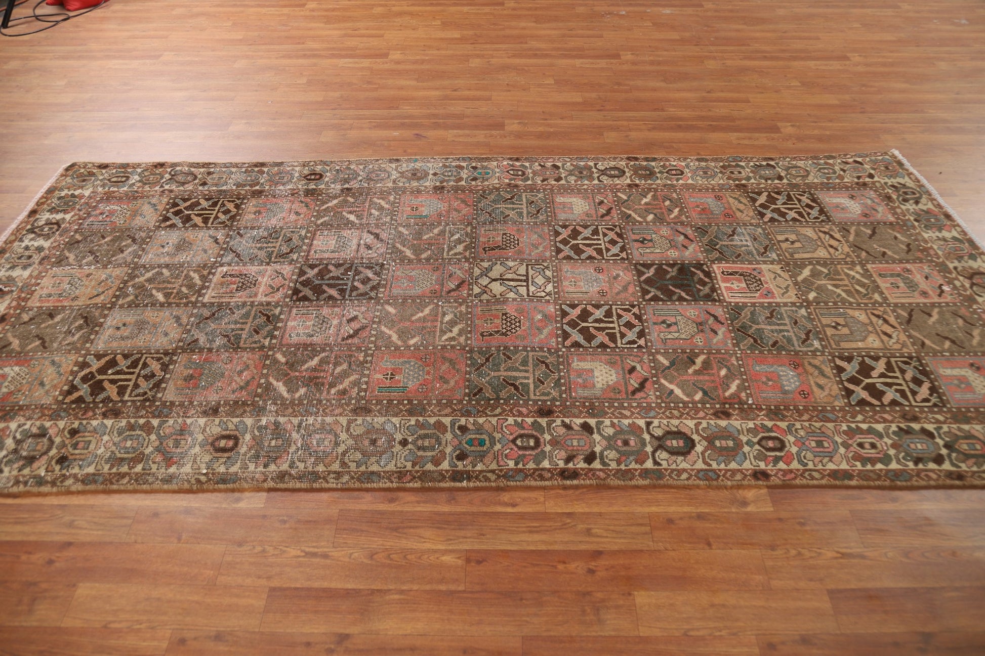Tribal Geometric Wool Bakhtiari Persian Runner Rug 4x9