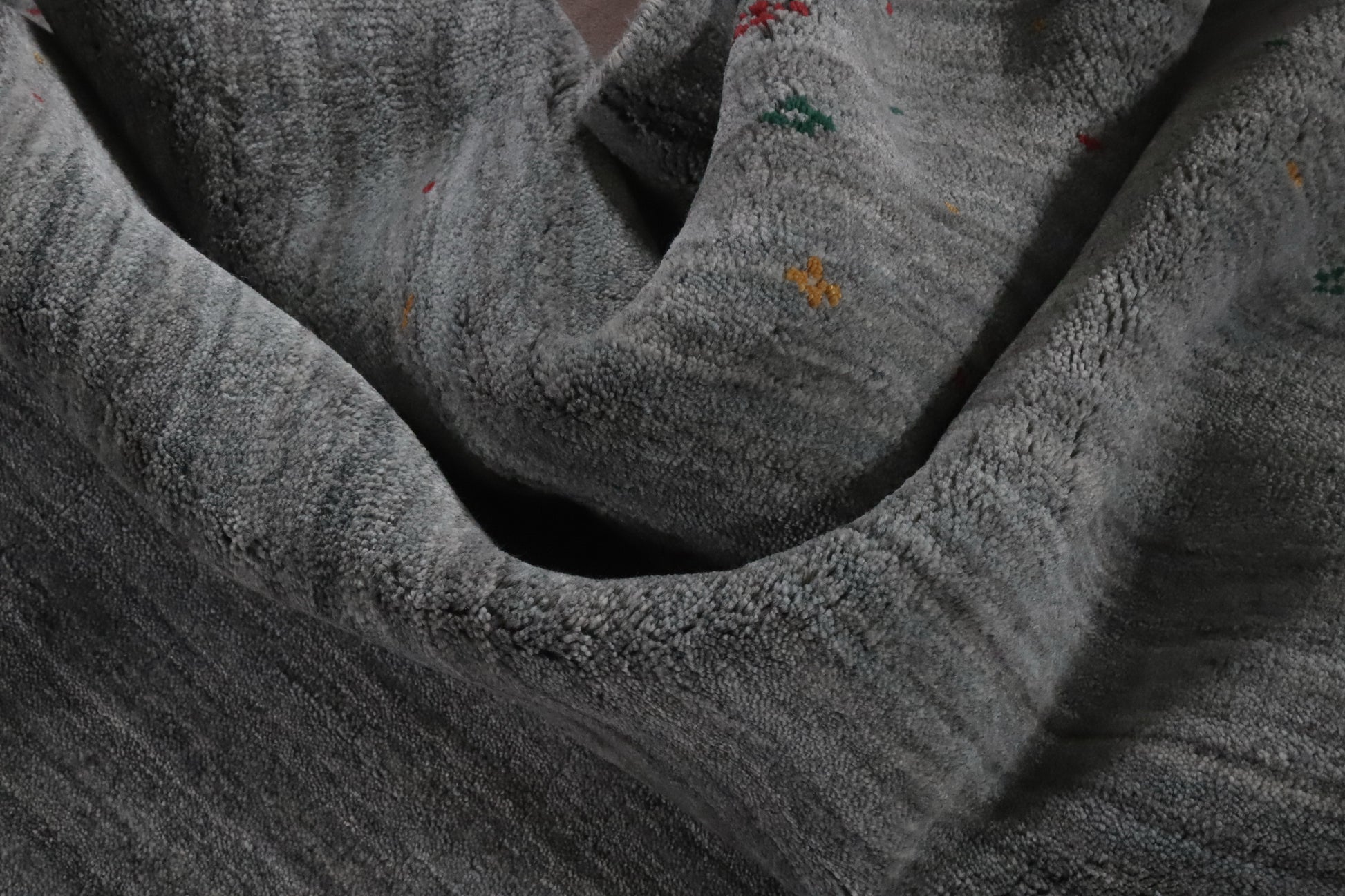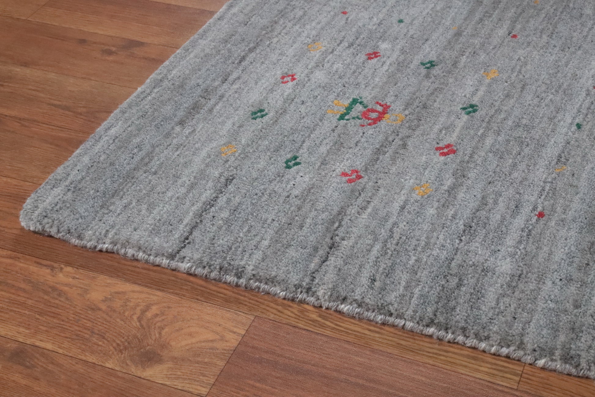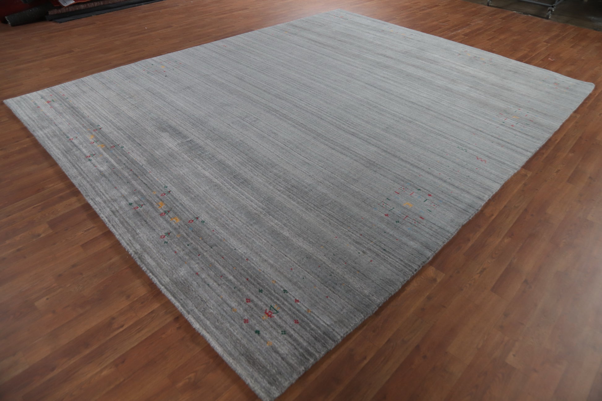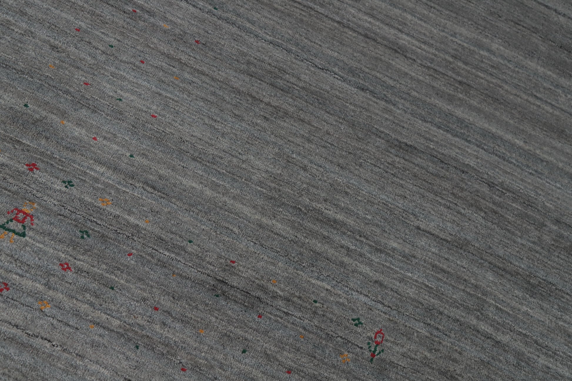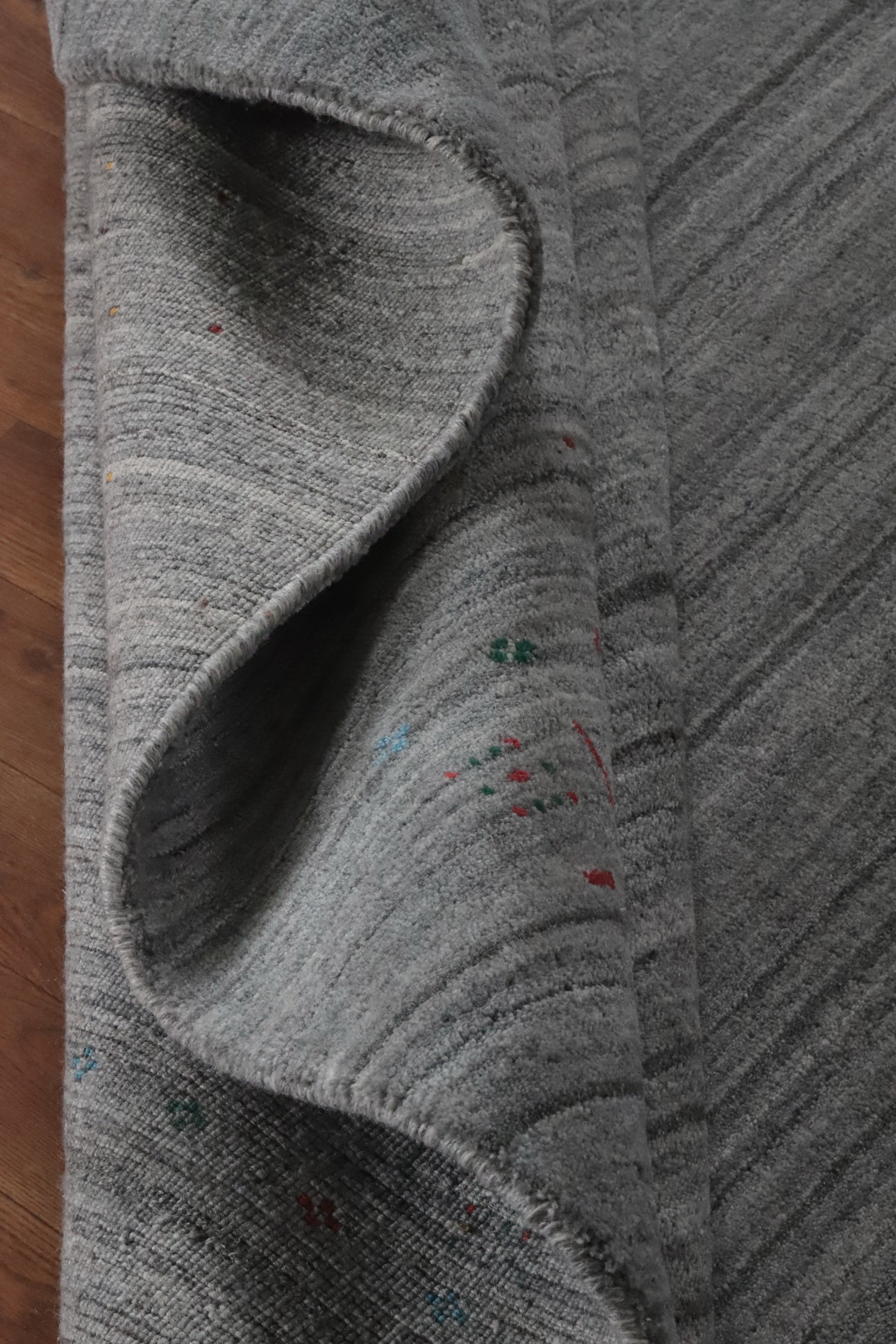 A Beautiful Genuine India Gabbeh rug is Hand Knotted by skillful weavers in India with 100% Wool Material. This rug is in New, First Quality condition. dimensions are 11' 5'' X 9' 0'' in foot and 348 X 274 in centimeter. the primary color is Greys & Charcoal.