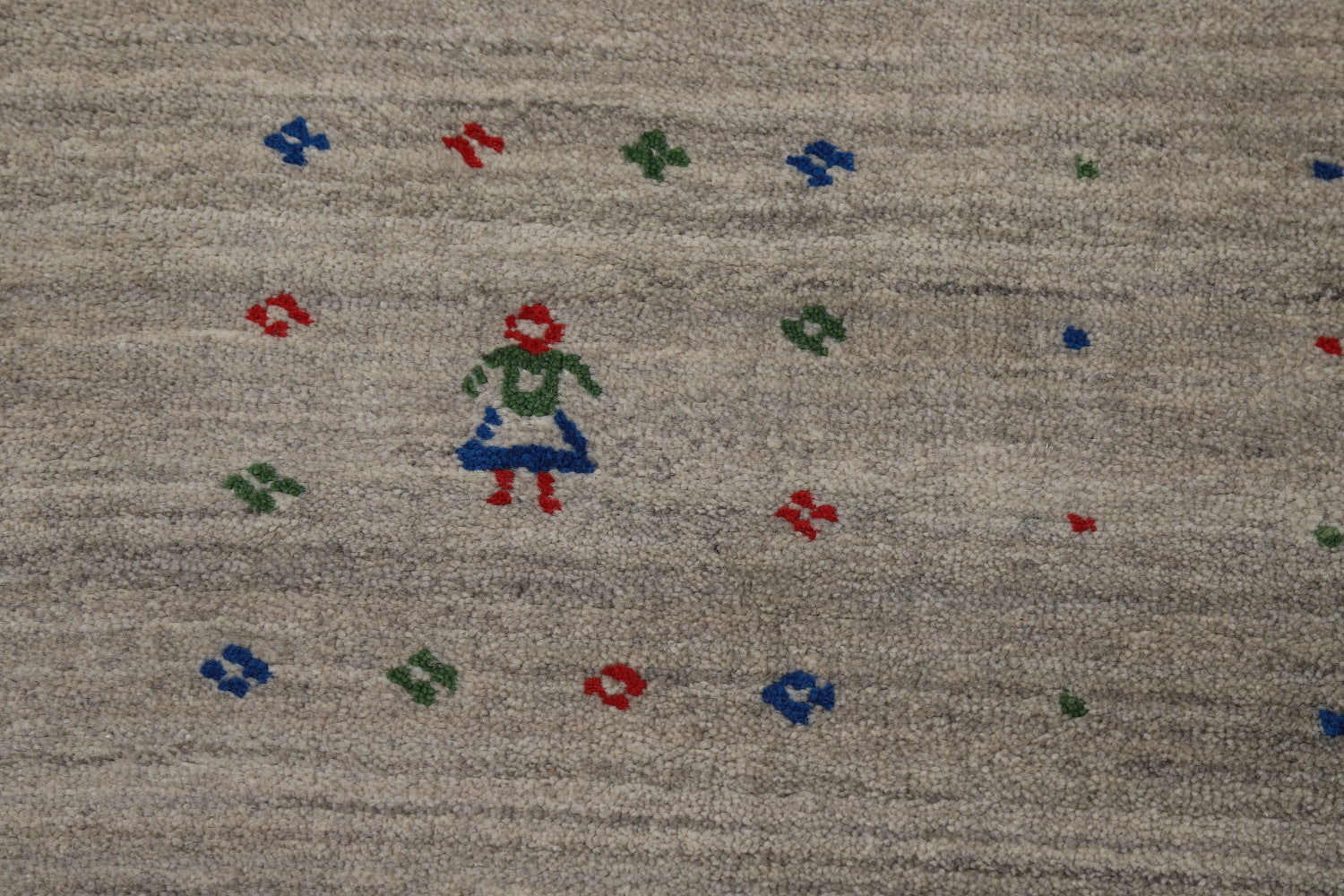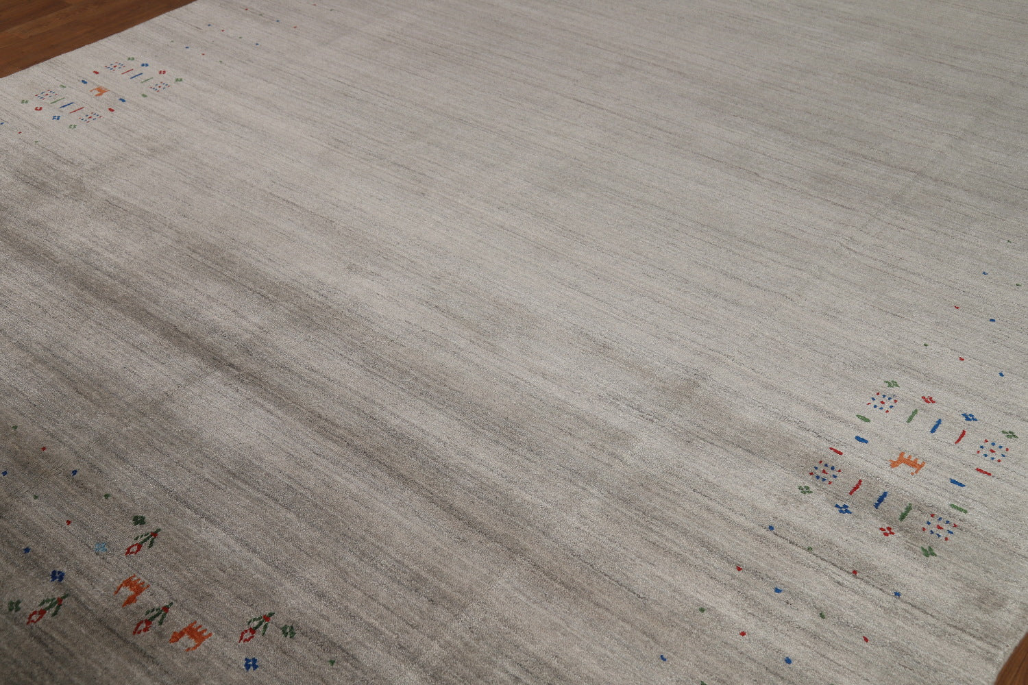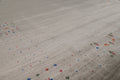 A Beautiful Genuine India Gabbeh rug is Hand Knotted by skillful weavers in India with 100% Wool Material. This rug is in New, First Quality condition. dimensions are 12' 1'' X 7' 11'' in foot and 368 X 241 in centimeter. the primary color is Greys & Charcoal.