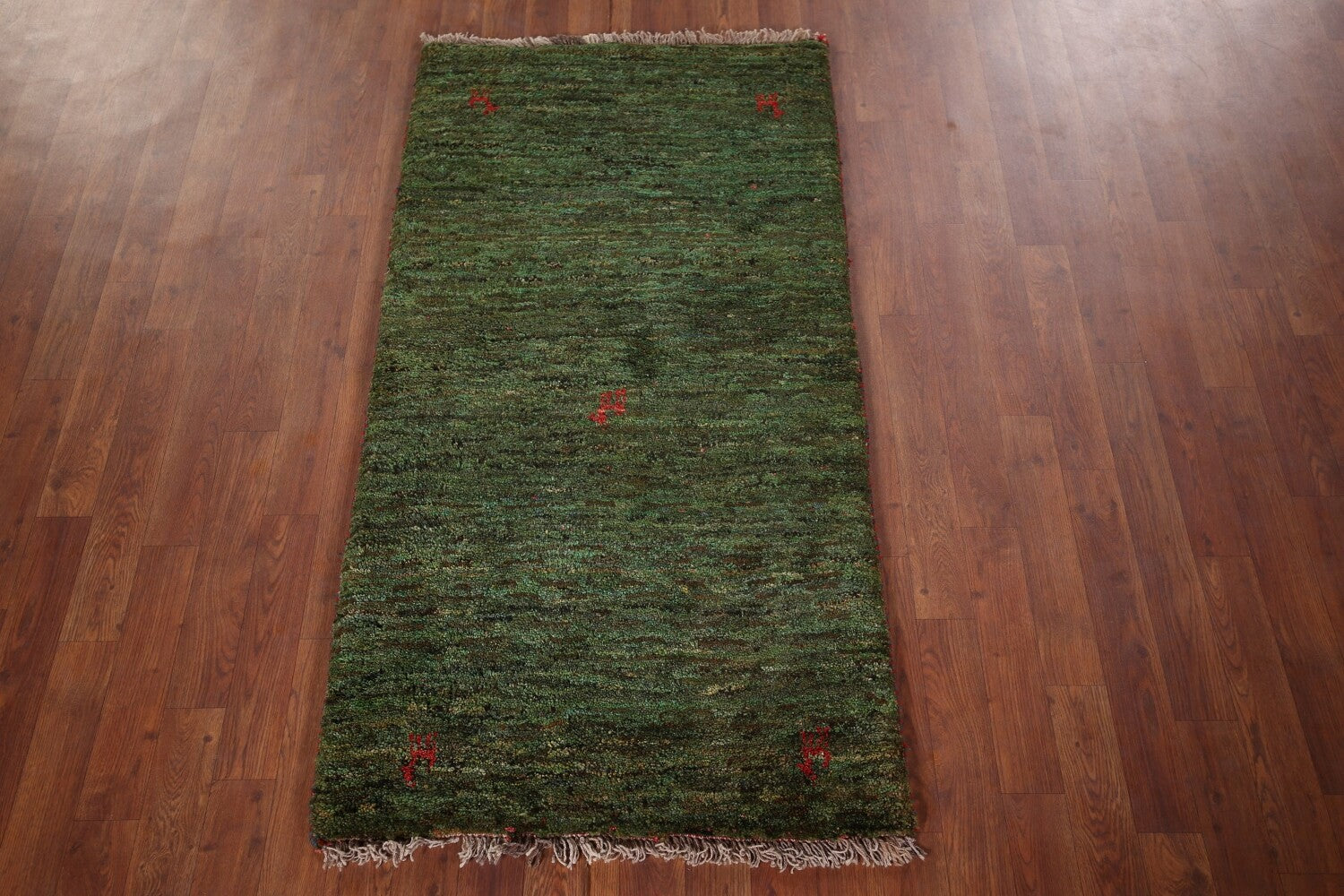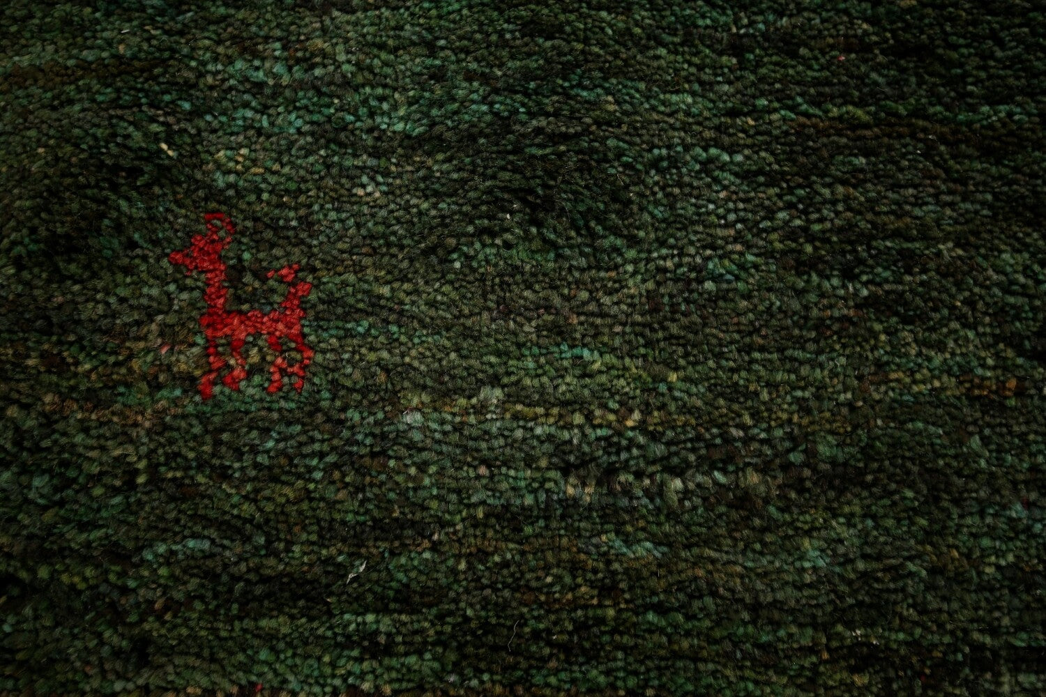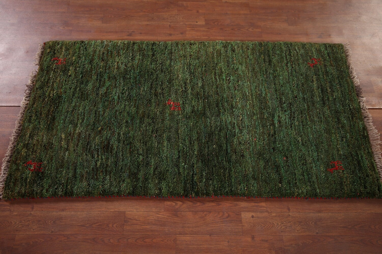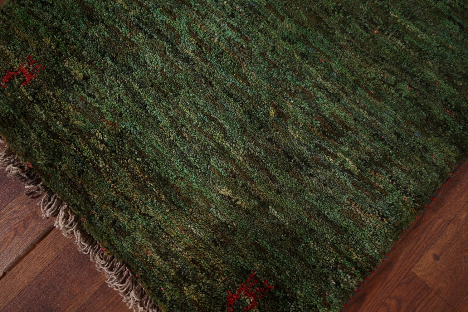 Tribal Green Gabbeh Persian Accent Rug 3x5