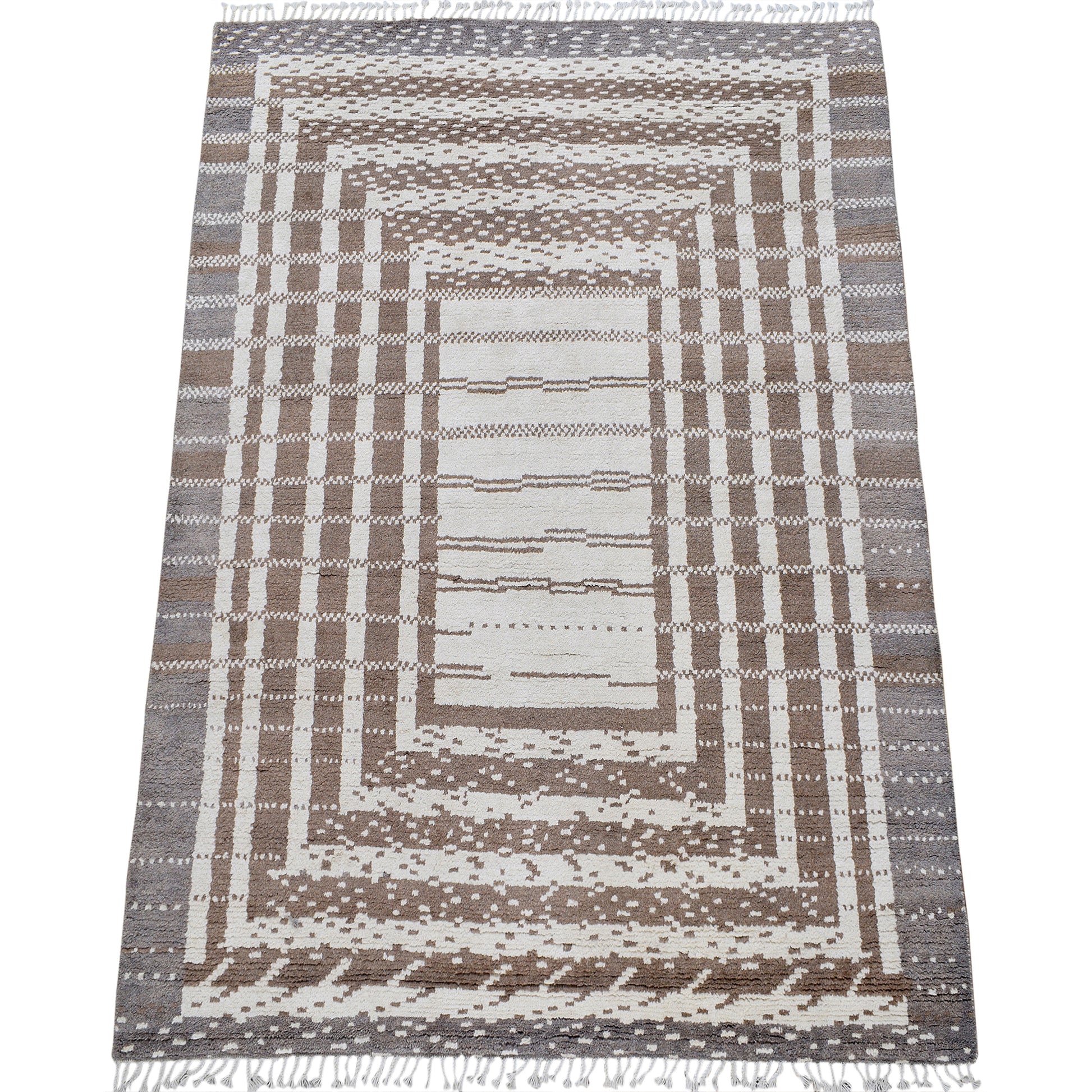 A Beautiful Genuine Morocco Moroccan rug is Hand Knotted by skillful weavers in Morocco with 100% Wool Material. This rug is in New, First Quality condition. dimensions are 10' 2'' X 8' 0'' in foot and 310 X 244 in centimeter. the primary color is Beige & Ivories.