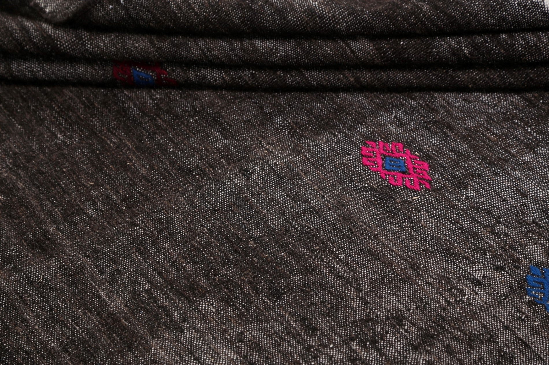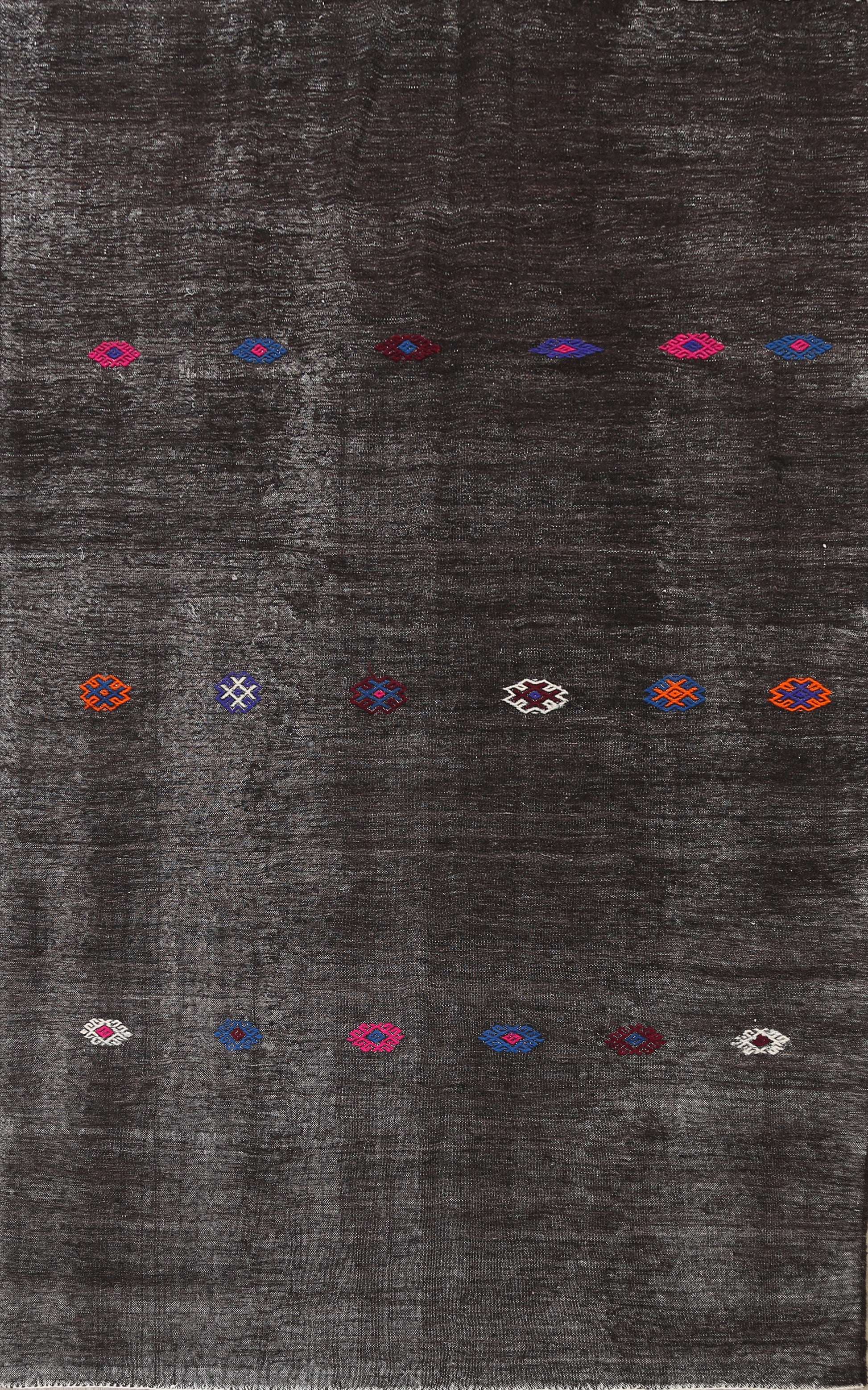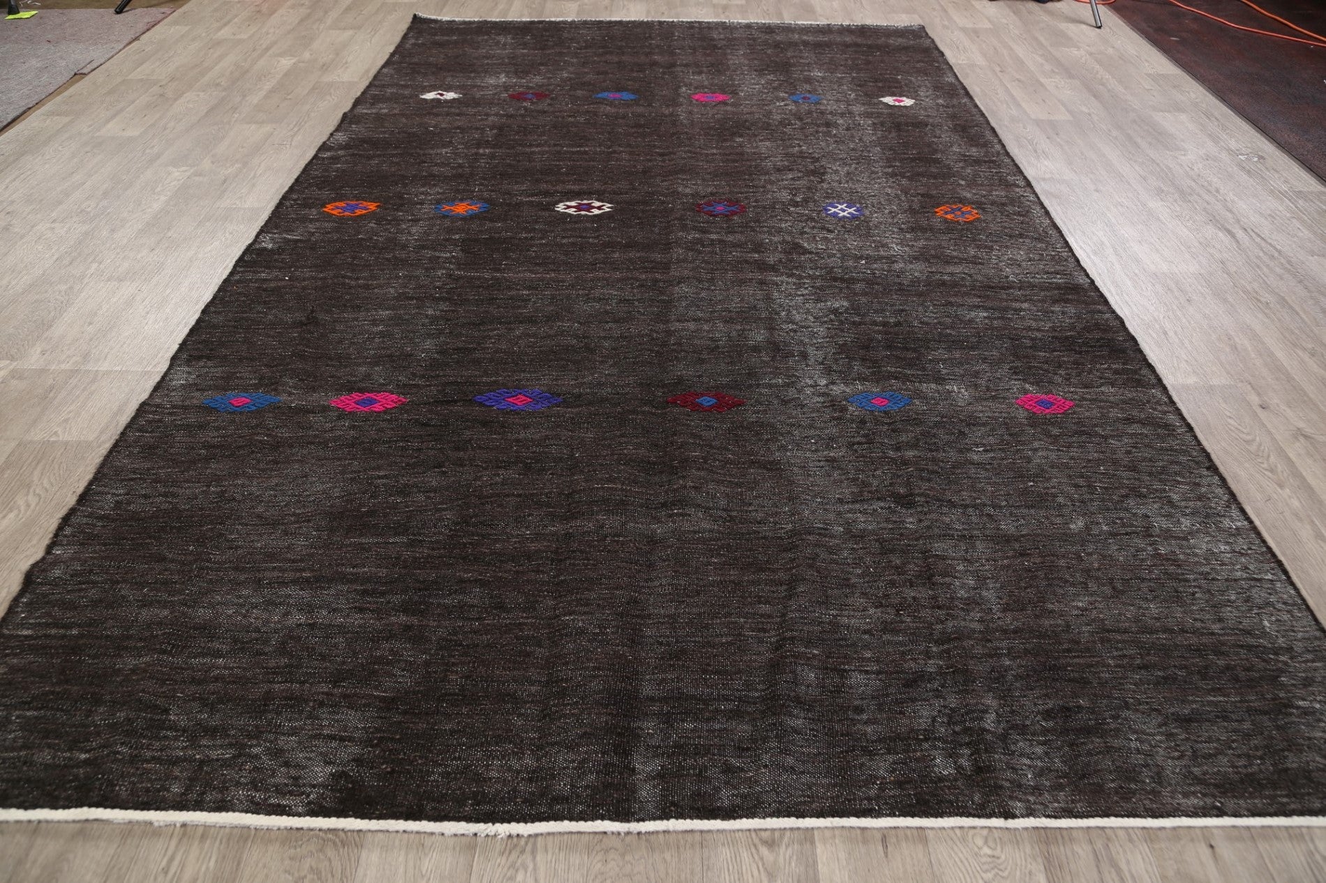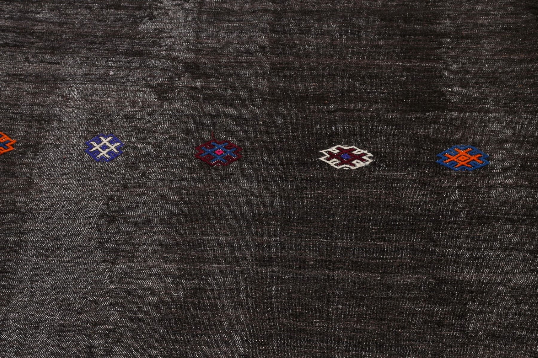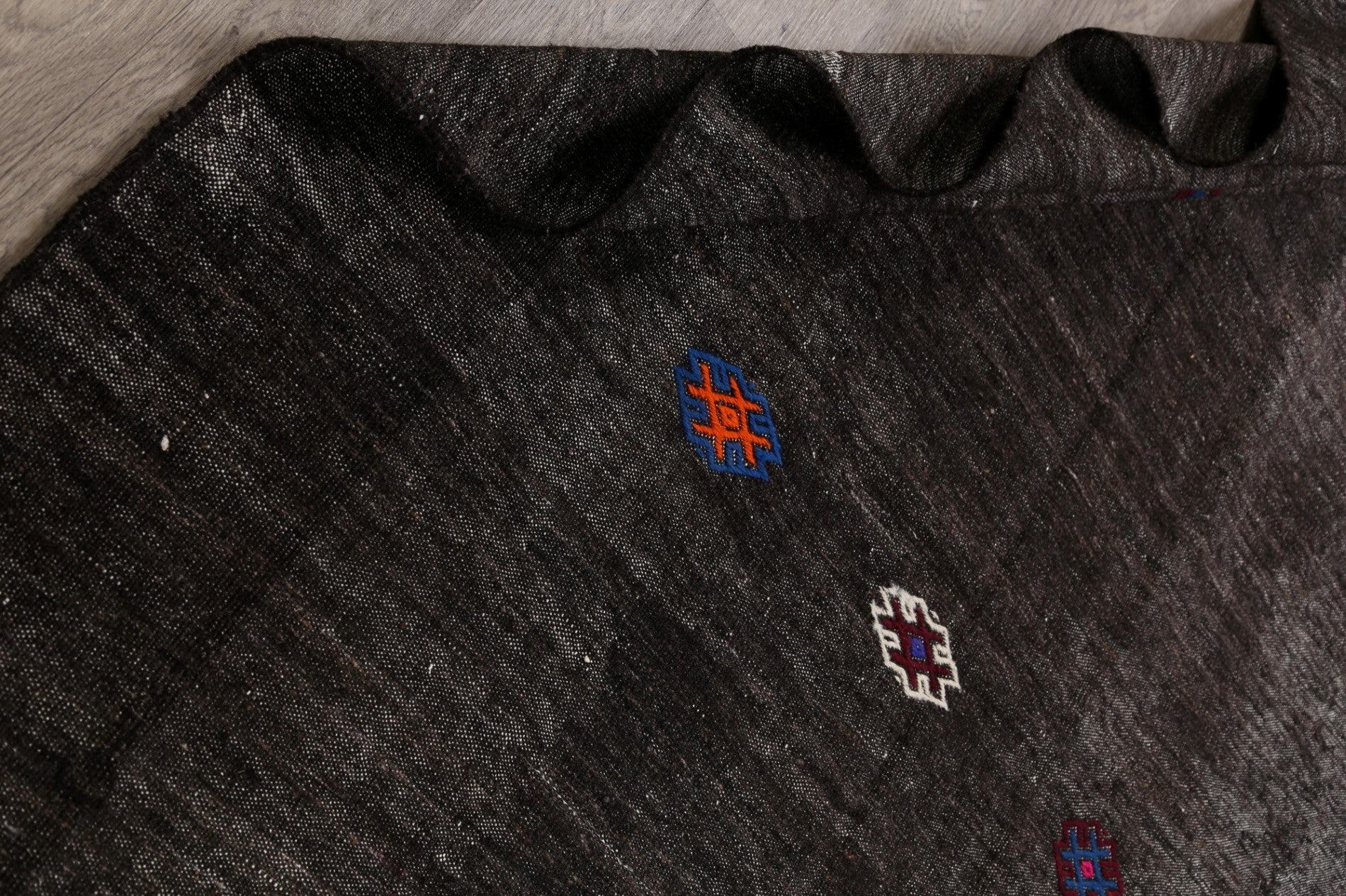 A Beautiful Genuine Turkey Kilim rug is Hand Woven by skillful weavers in Turkey with 100% Wool Material. This rug is in Very Good ( Low Pile ) condition. dimensions are 11' 4'' X 6' 9'' in foot and 345 X 206 in centimeter. the primary color is Greys & Charcoal.