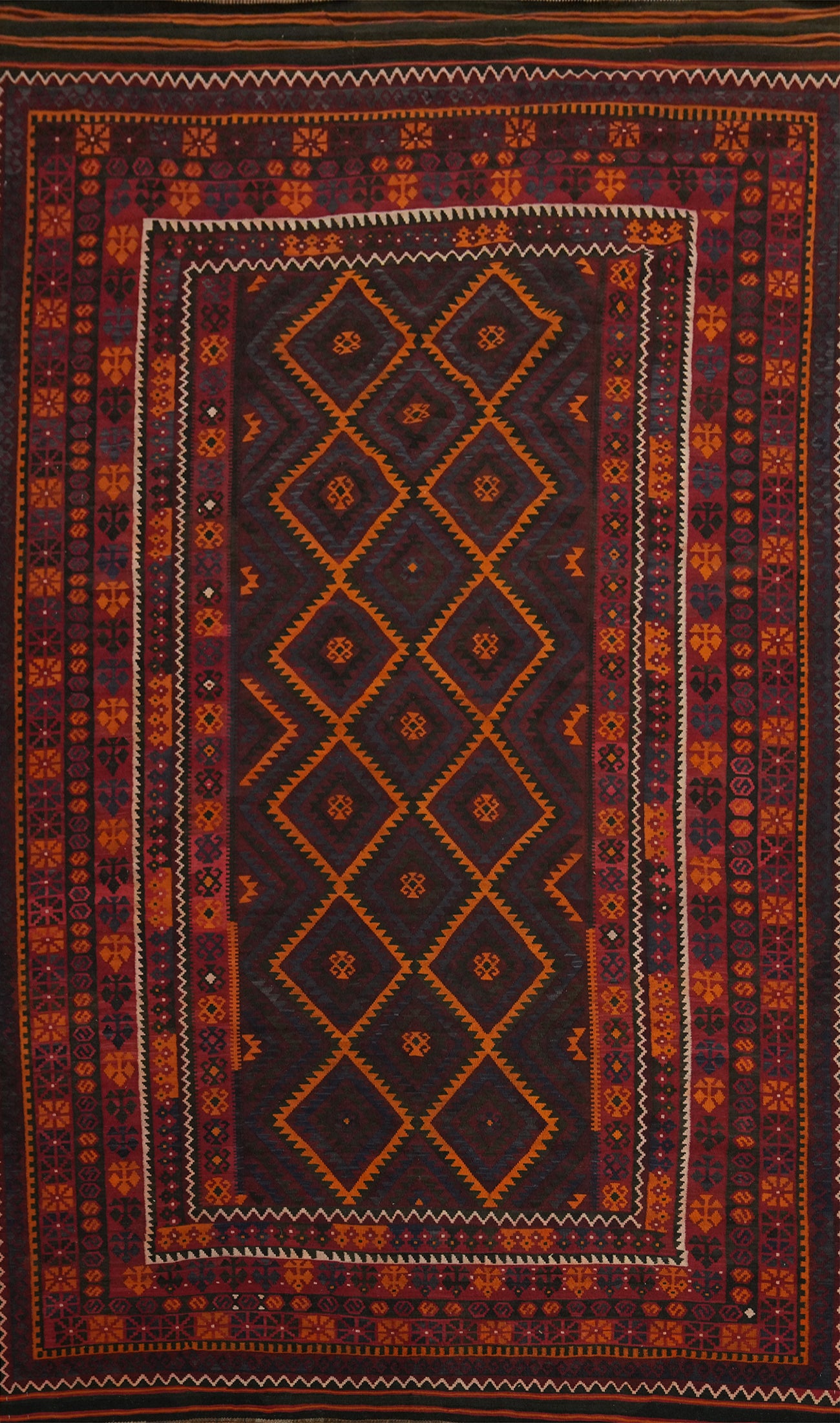 A Beautiful Genuine Pakistan Kilim rug is Hand Woven by skillful weavers in Pakistan with 100% Wool Material. This rug is in New, First Quality condition. dimensions are 13' 8'' X 8' 9'' in foot and  417 X 267 in centimeter. the primary color is Oranges & Rust.