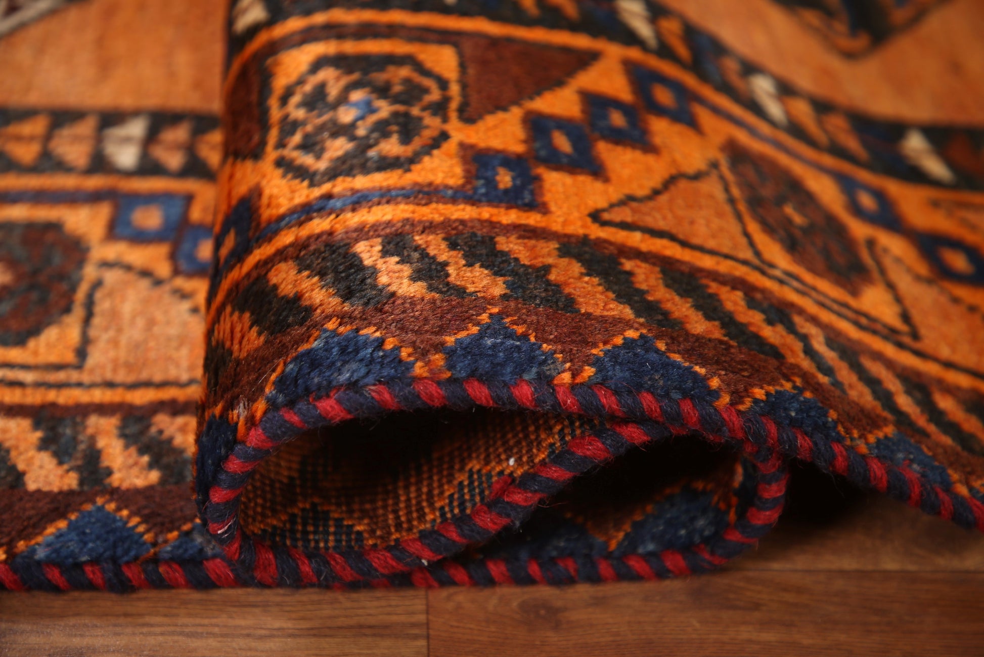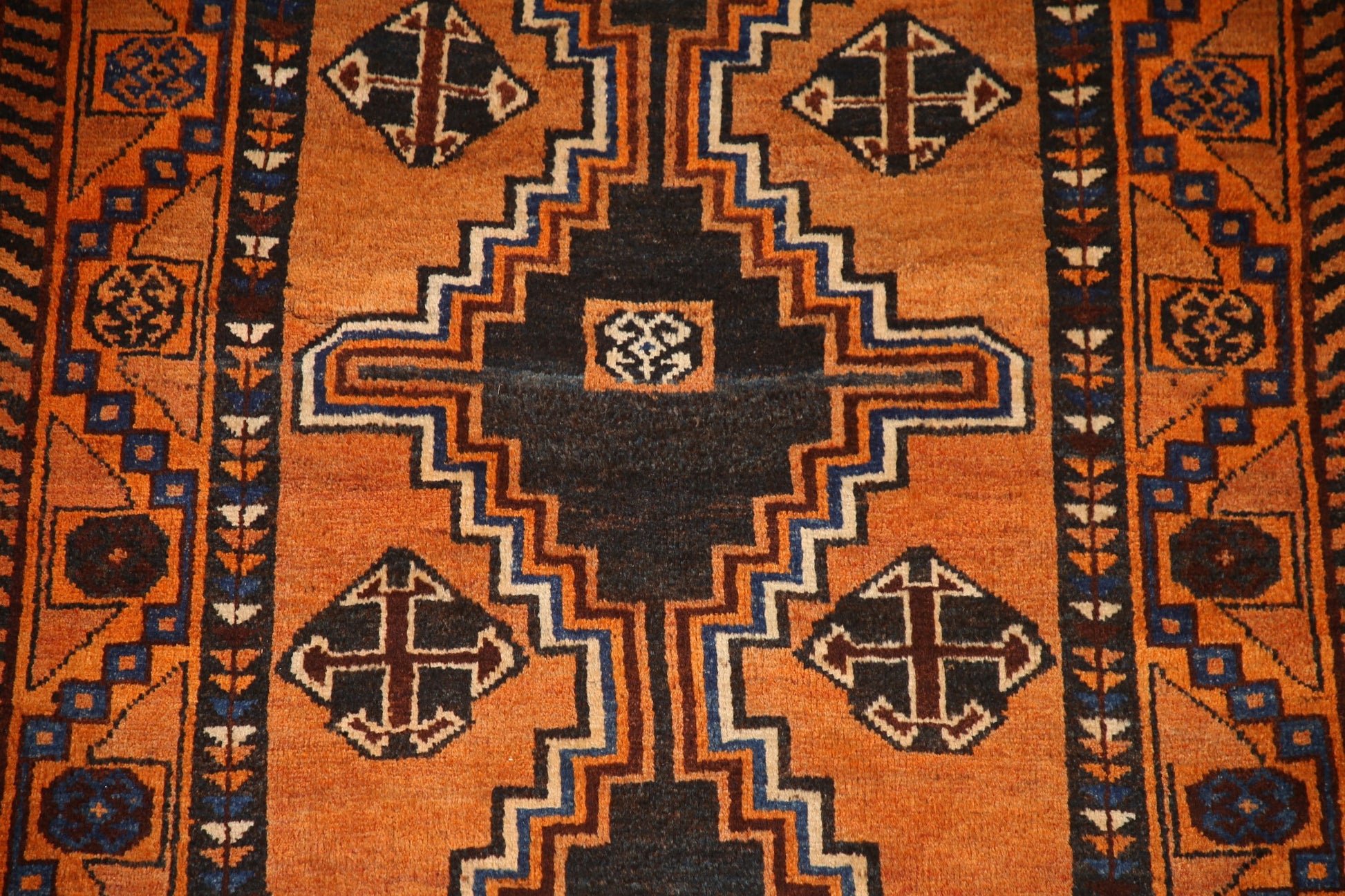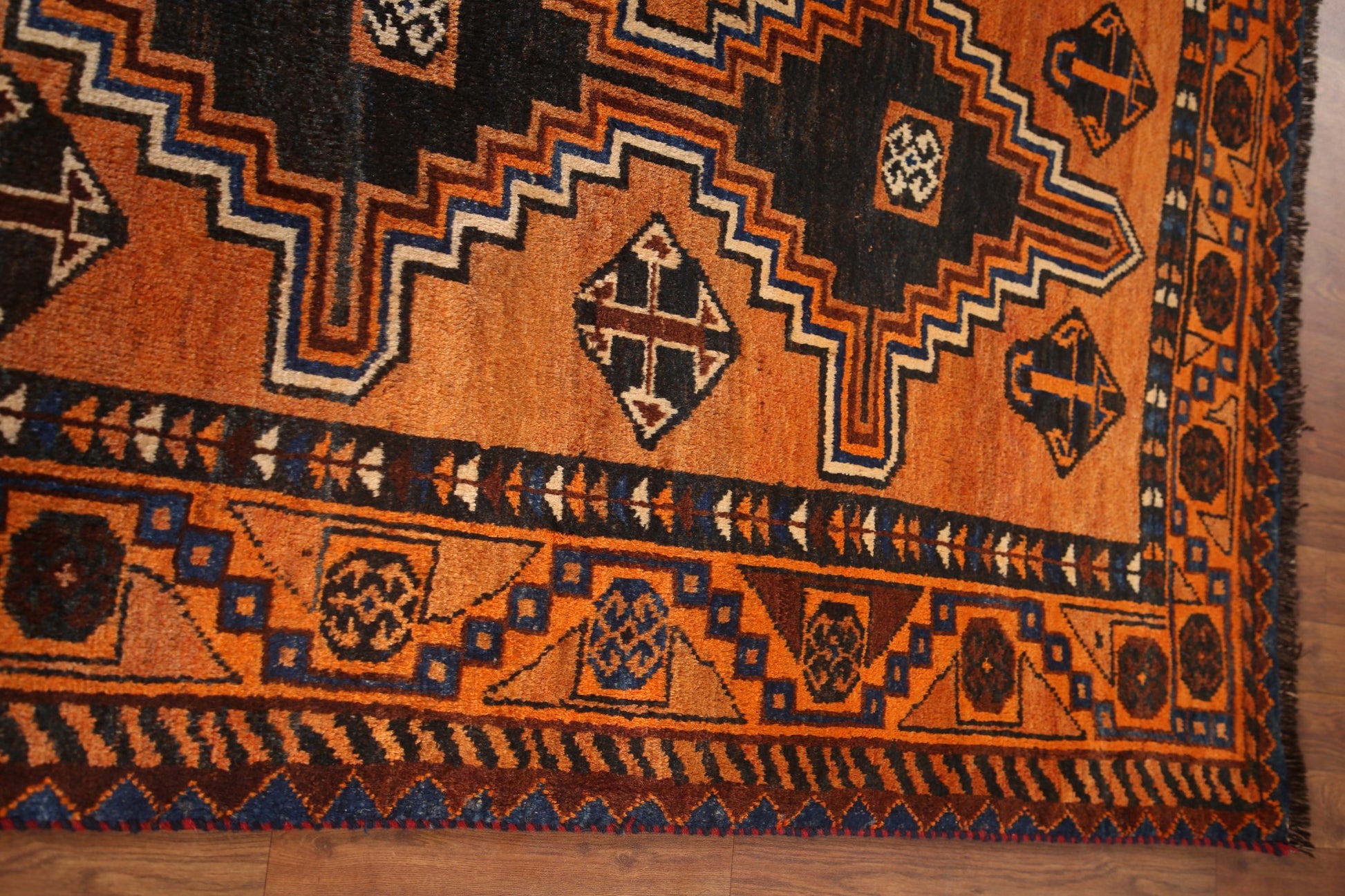 A Beautiful Genuine Persia ( Persia ) Lori rug is Hand Knotted by skillful weavers in Persia ( Persia ) with 100% Wool Material. This rug is in Very Good (Low Pile) condition. dimensions are 7' 4'' X 4' 0'' in foot and 224 X 122 in centimeter. the primary color is Oranges & Rust.