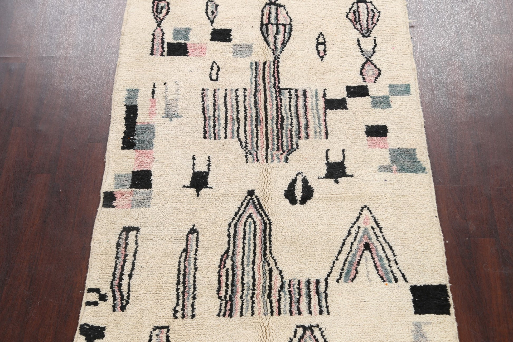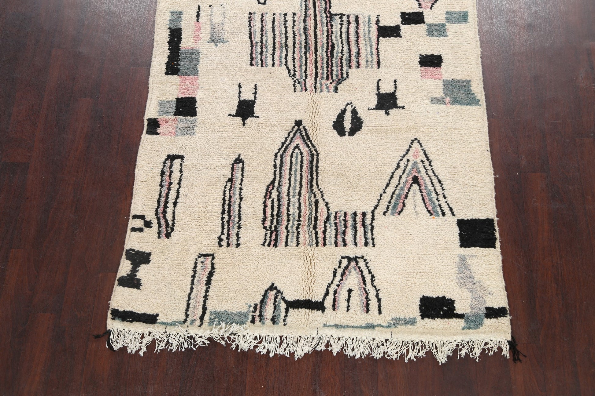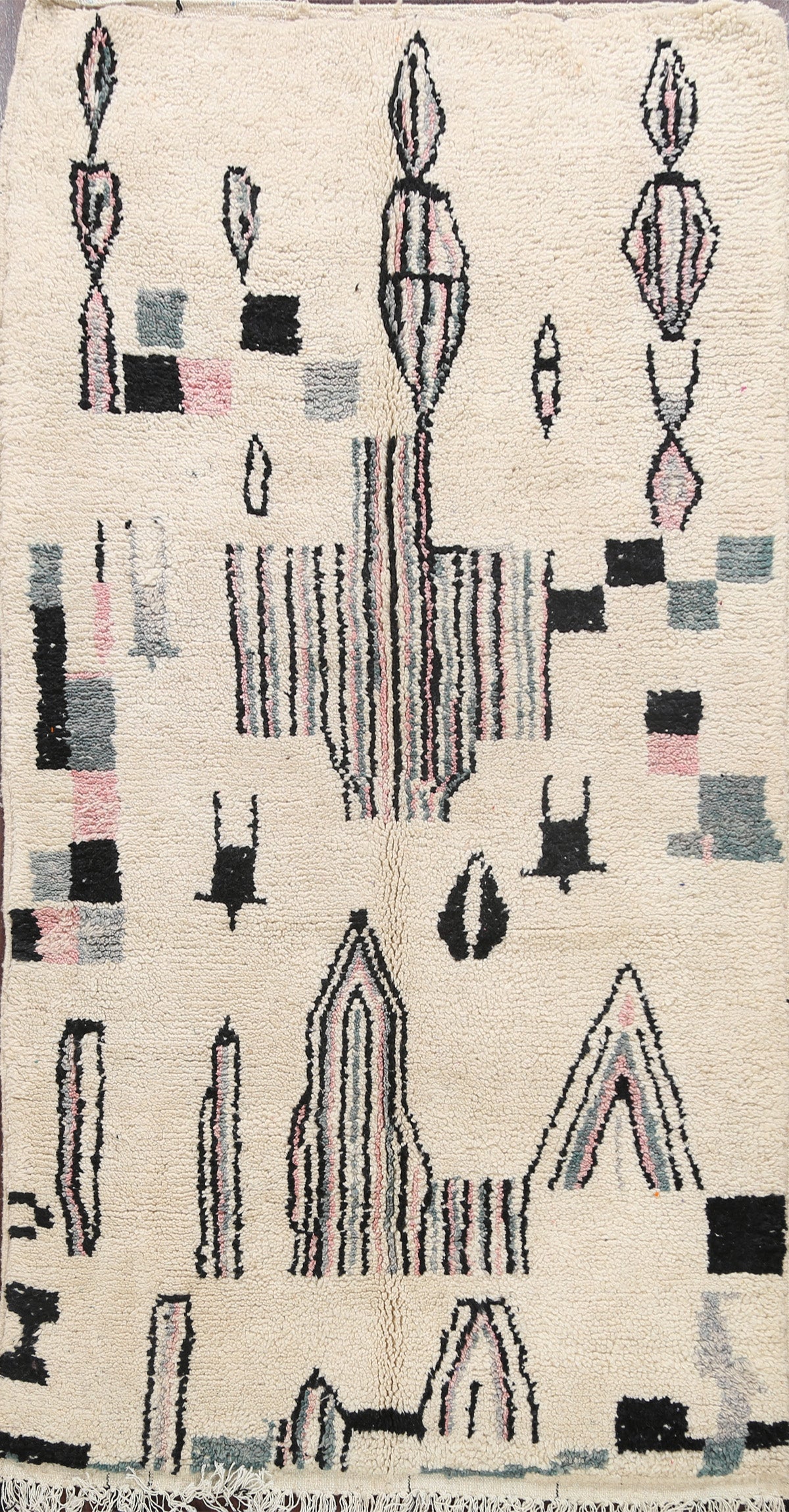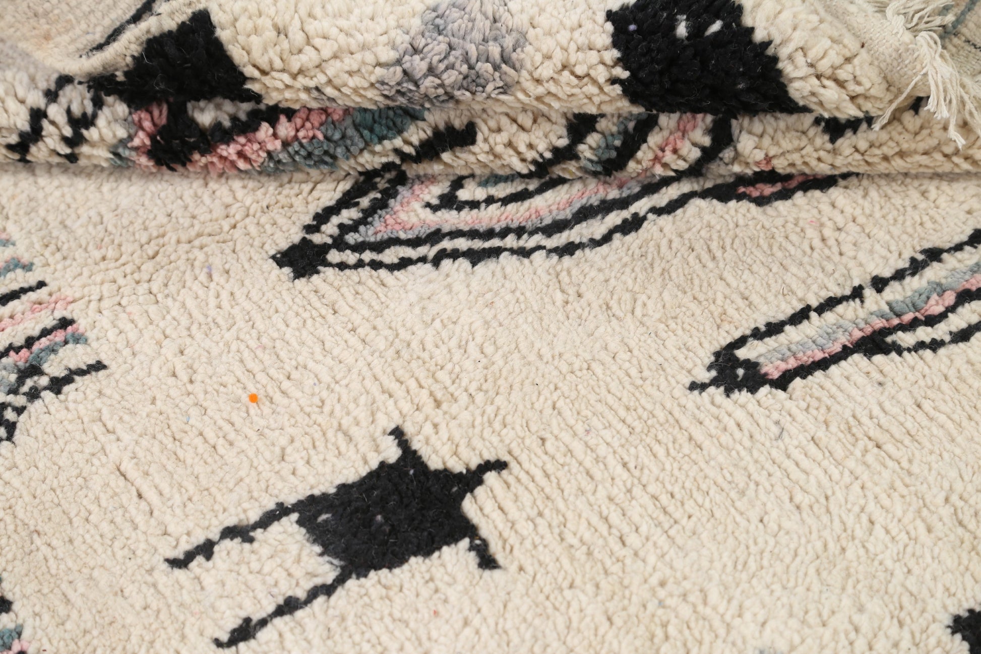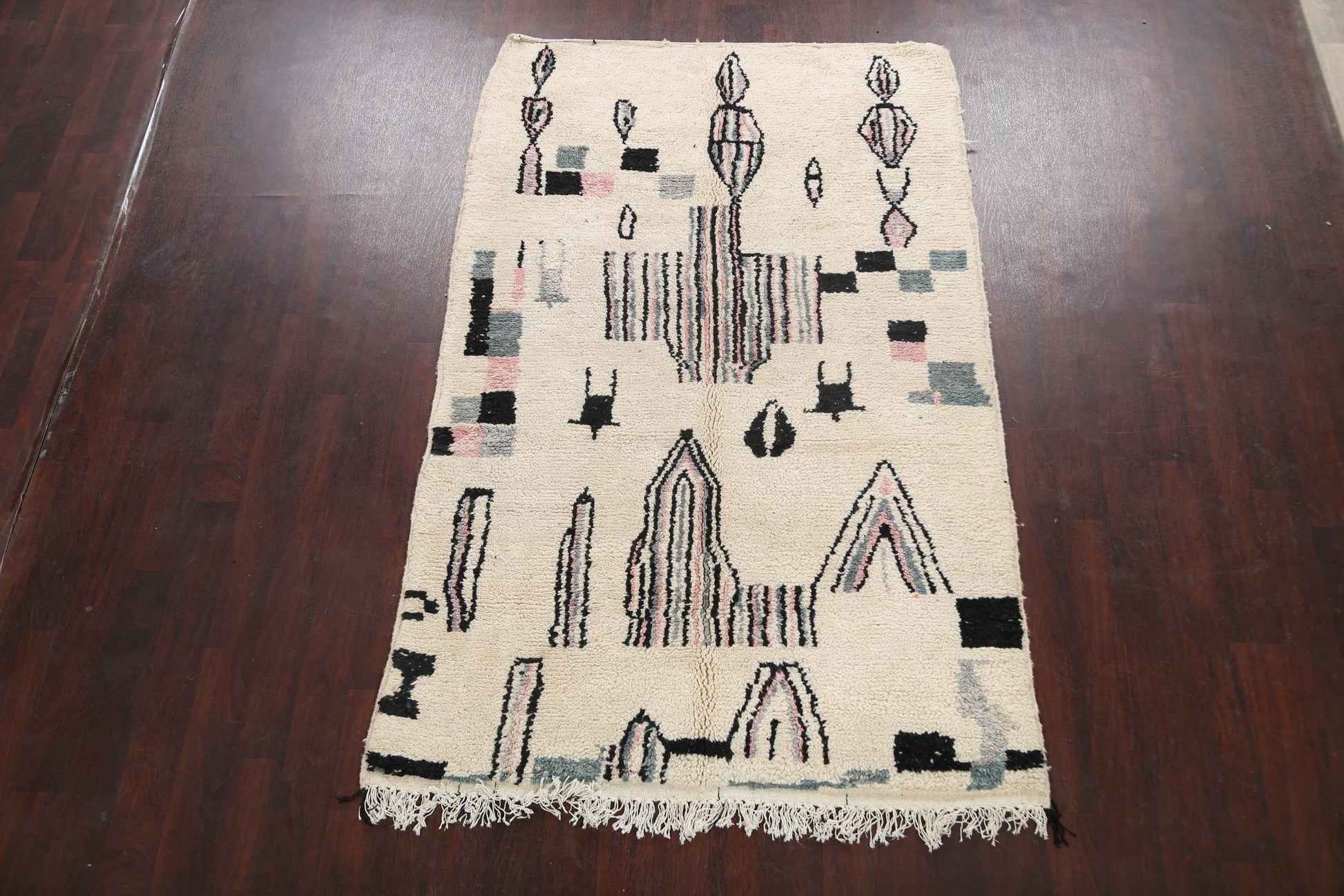 A Beautiful Genuine Morocco Moroccan rug is Hand Knotted by skillful weavers in Morocco with 100% Wool Material. This rug is in New, First Quality condition. dimensions are 7' 9'' X 5' 1'' in foot and 236 X 155 in centimeter. the primary color is Beige & Ivories.