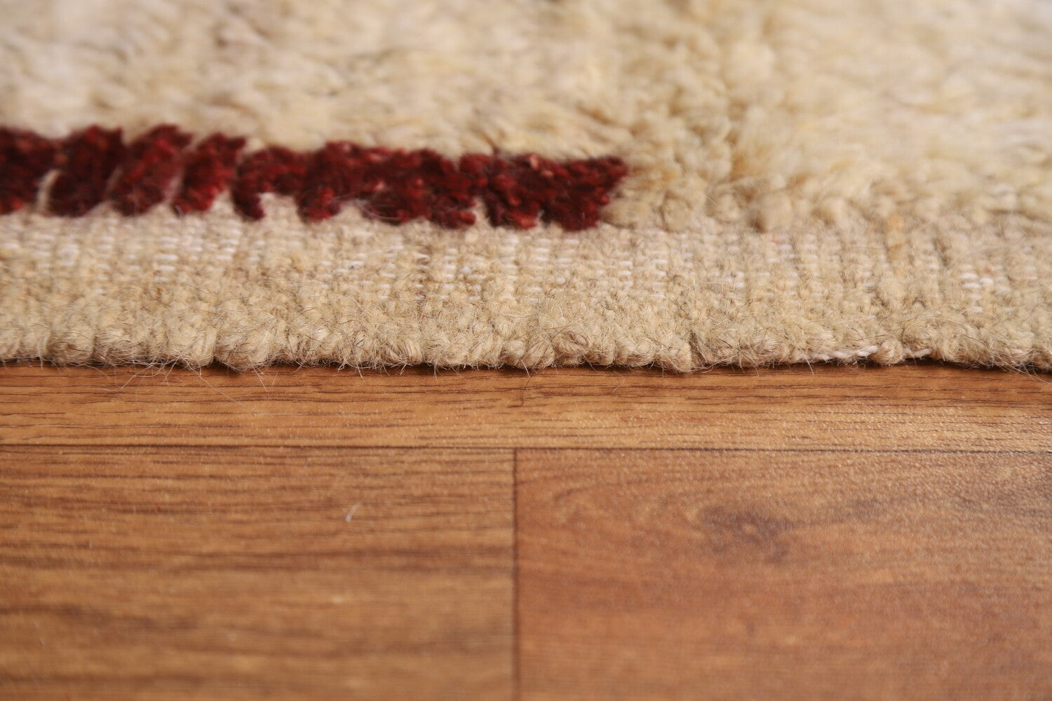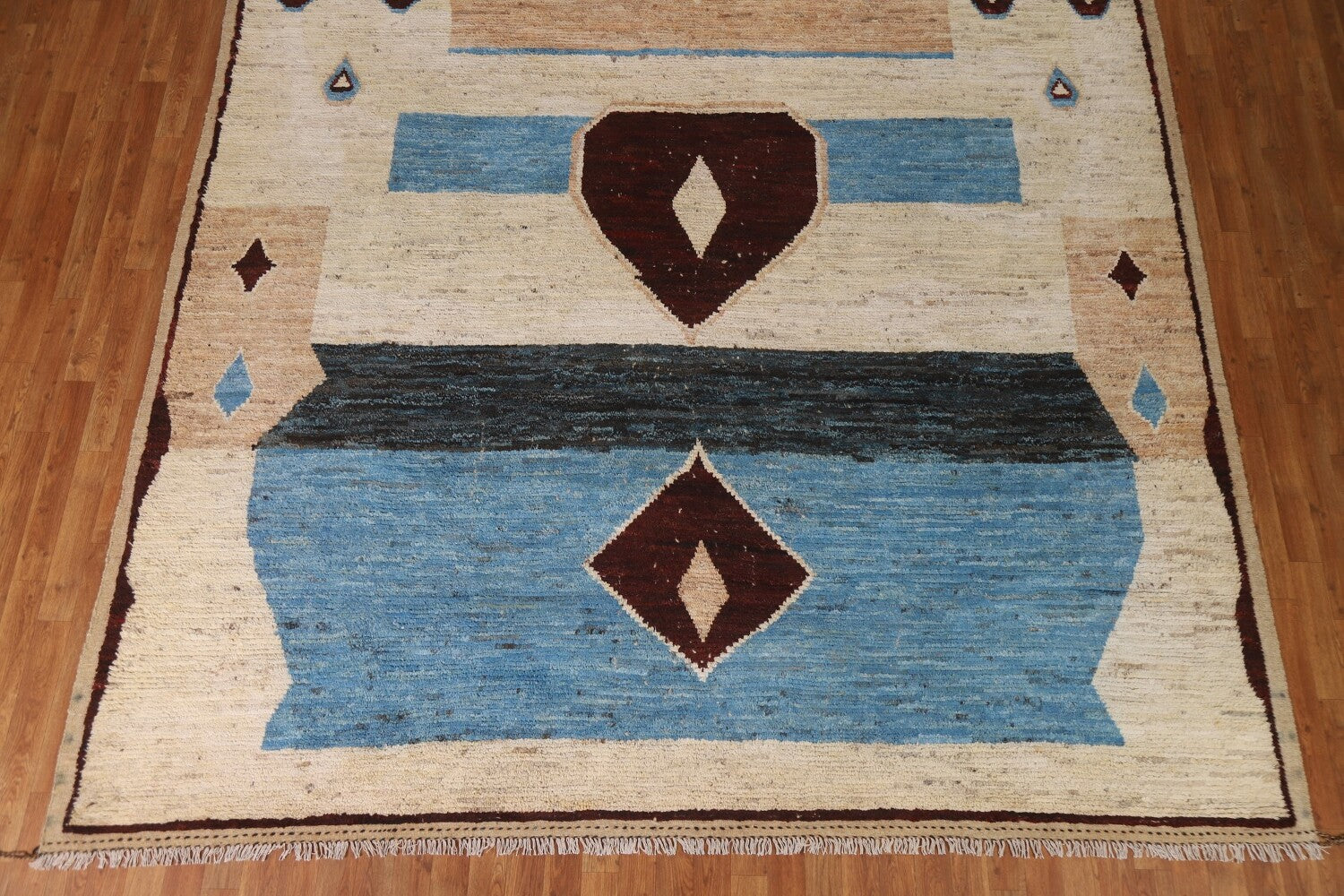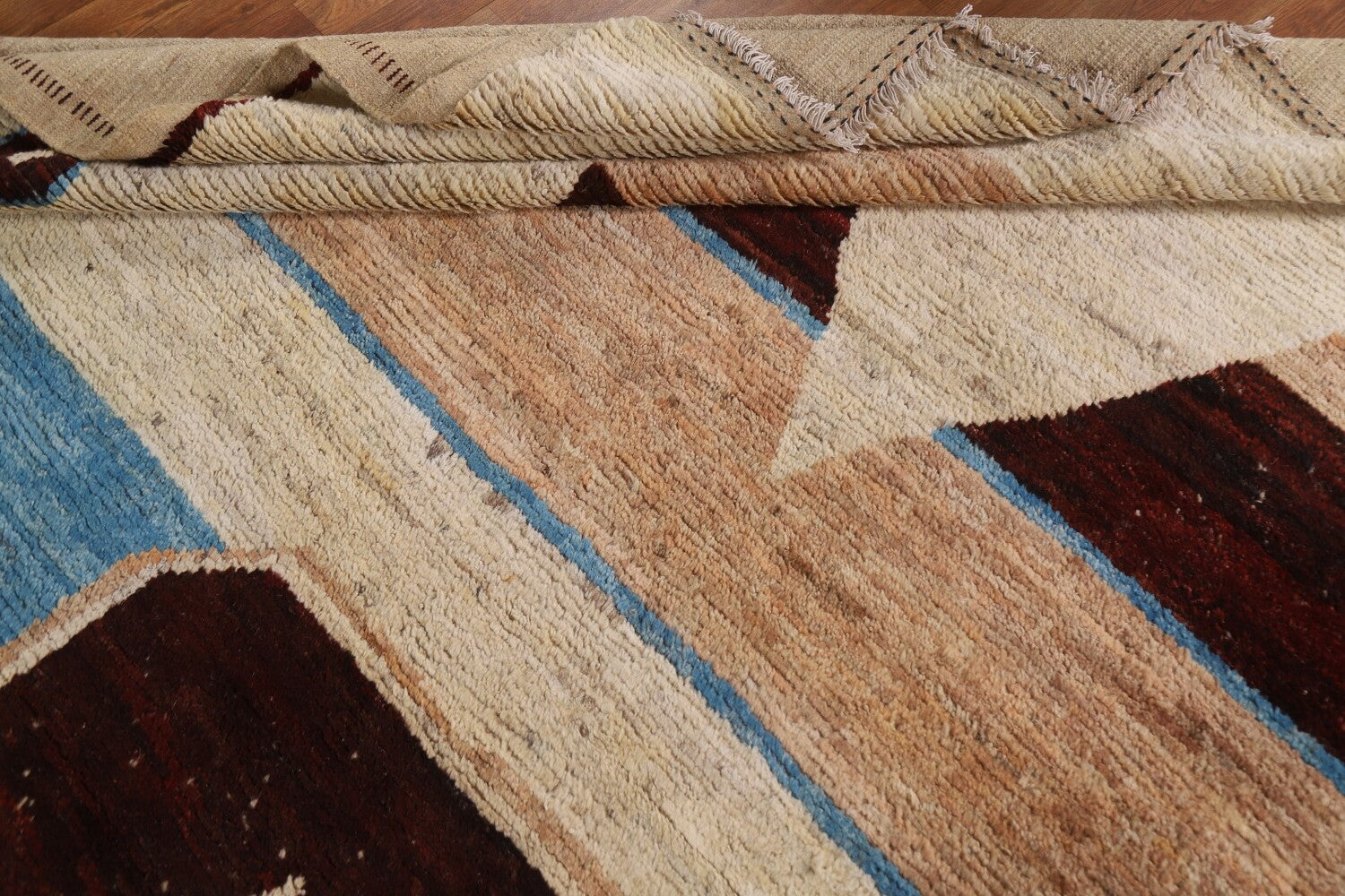 A Beautiful Genuine Pakistan Moroccan rug is Hand Knotted by skillful weavers in Pakistan with 100% Wool Material. This rug is in condition. dimensions are 12' 0'' X 9' 6'' in foot and 366 X 290 in centimeter. the primary color is Beige & Ivories.