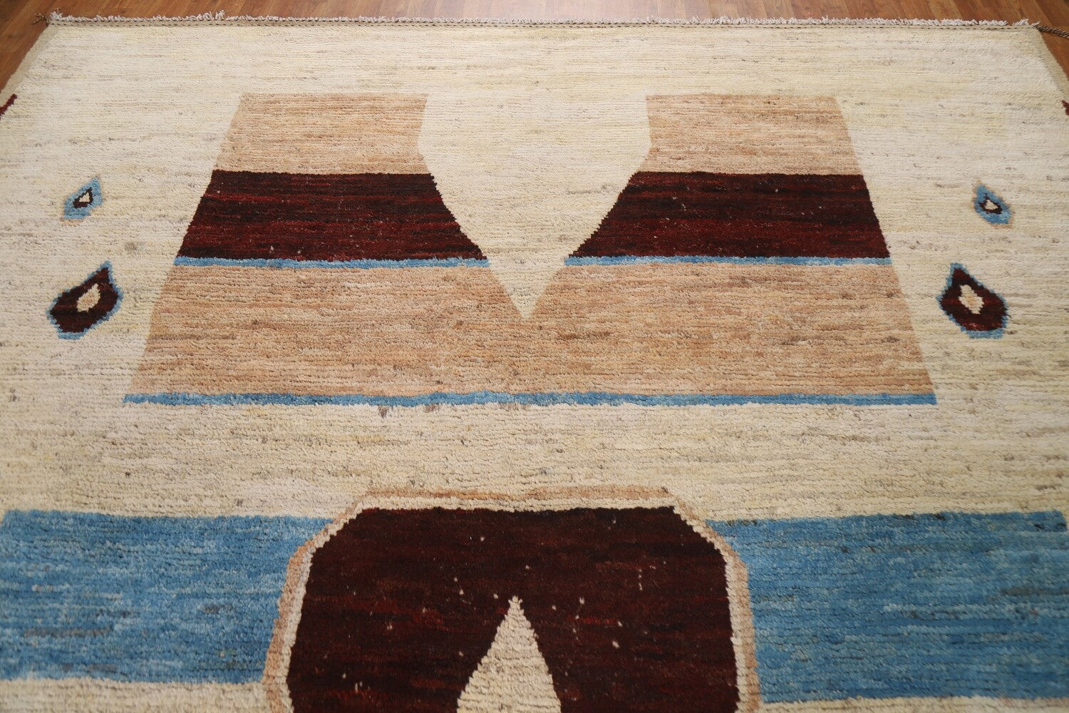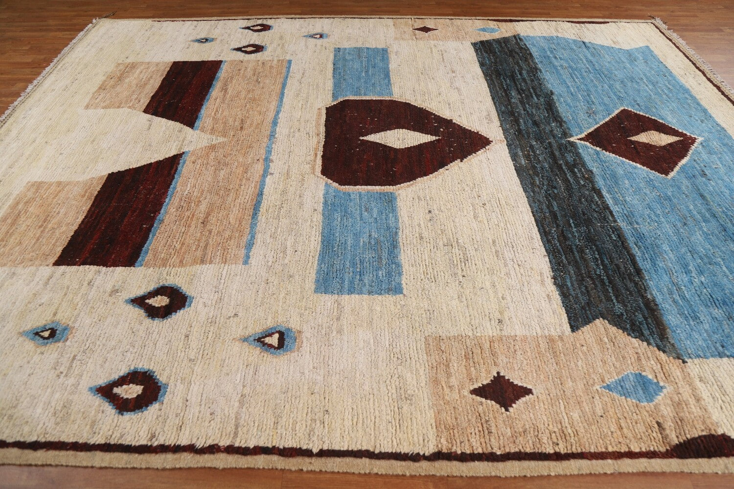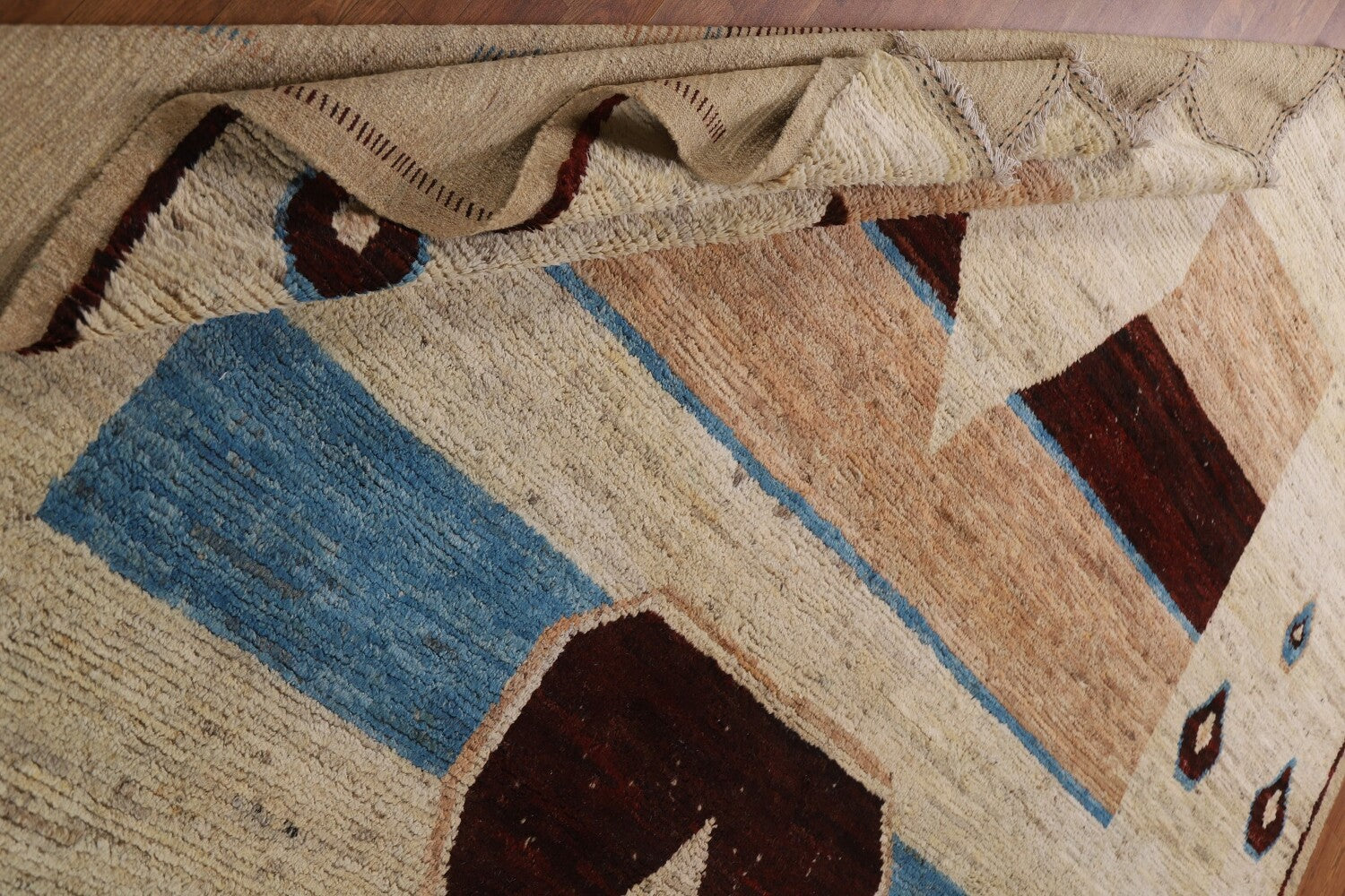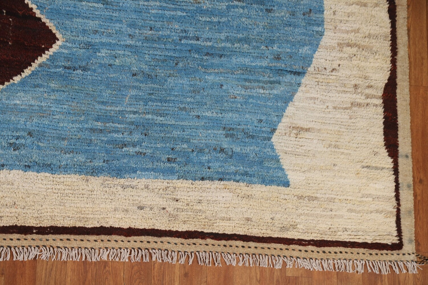 A Beautiful Genuine Pakistan Moroccan rug is Hand Knotted by skillful weavers in Pakistan with 100% Wool Material. This rug is in condition. dimensions are 12' 0'' X 9' 6'' in foot and 366 X 290 in centimeter. the primary color is Beige & Ivories.