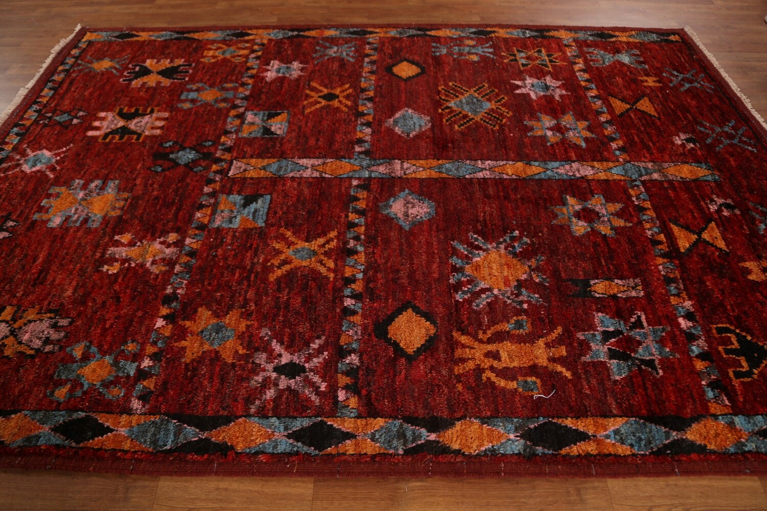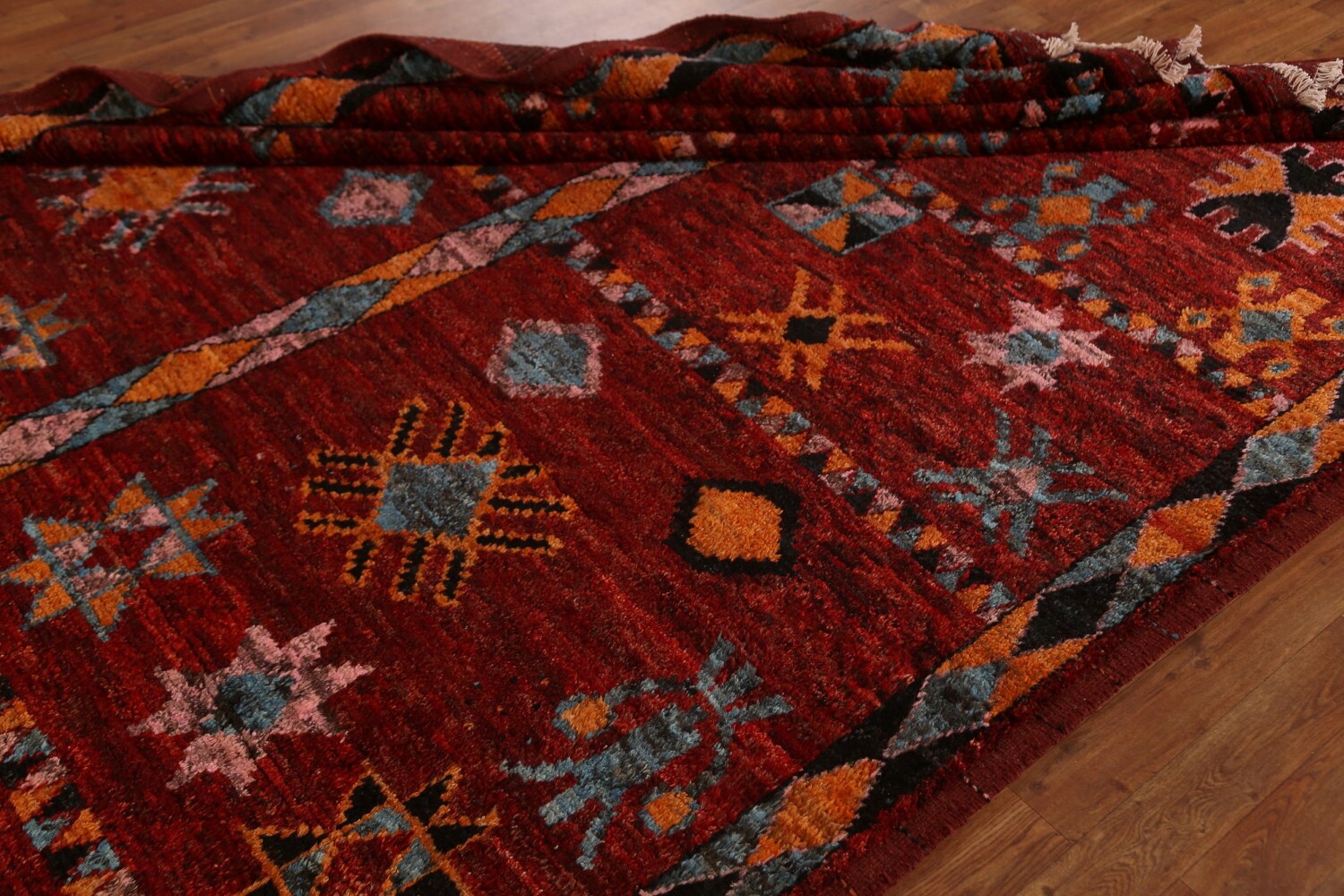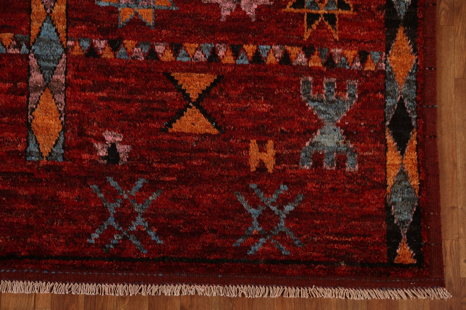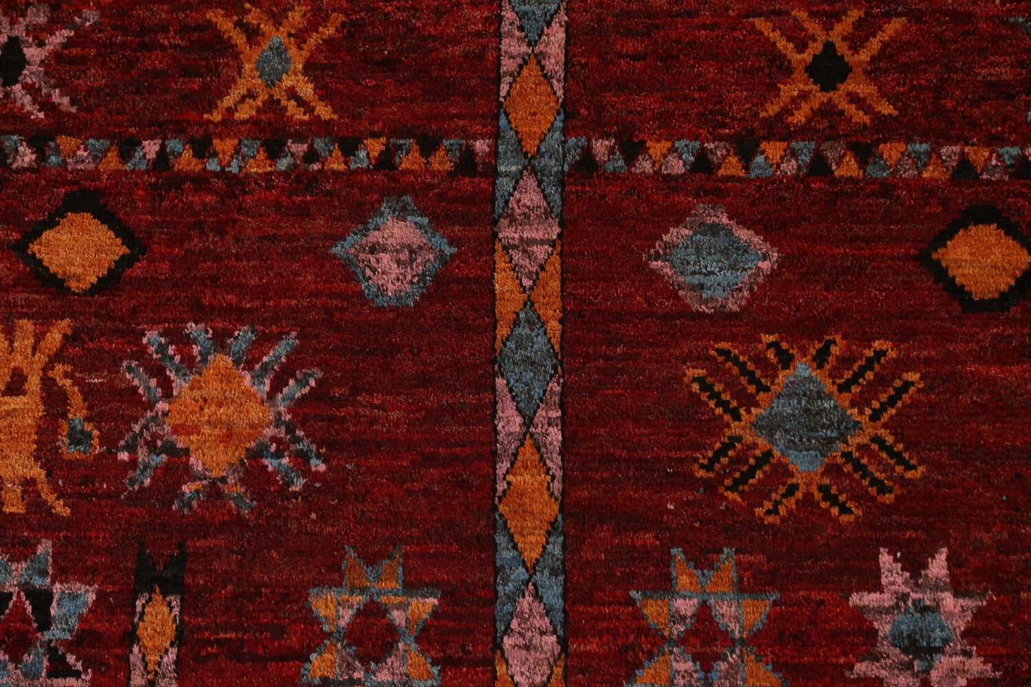 A Beautiful Genuine Pakistan Moroccan rug is Hand Knotted by skillful weavers in Pakistan with 100% Wool Material. This rug is in condition. dimensions are 10' 0'' X 6' 10'' in foot and 305 X 208 in centimeter. the primary color is Red.