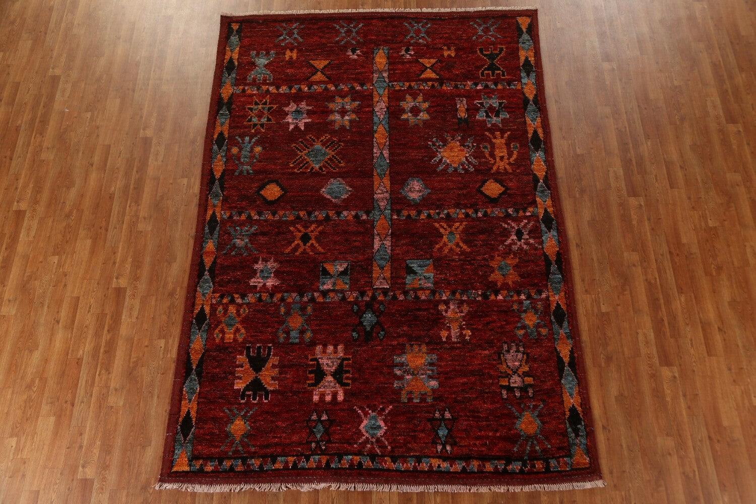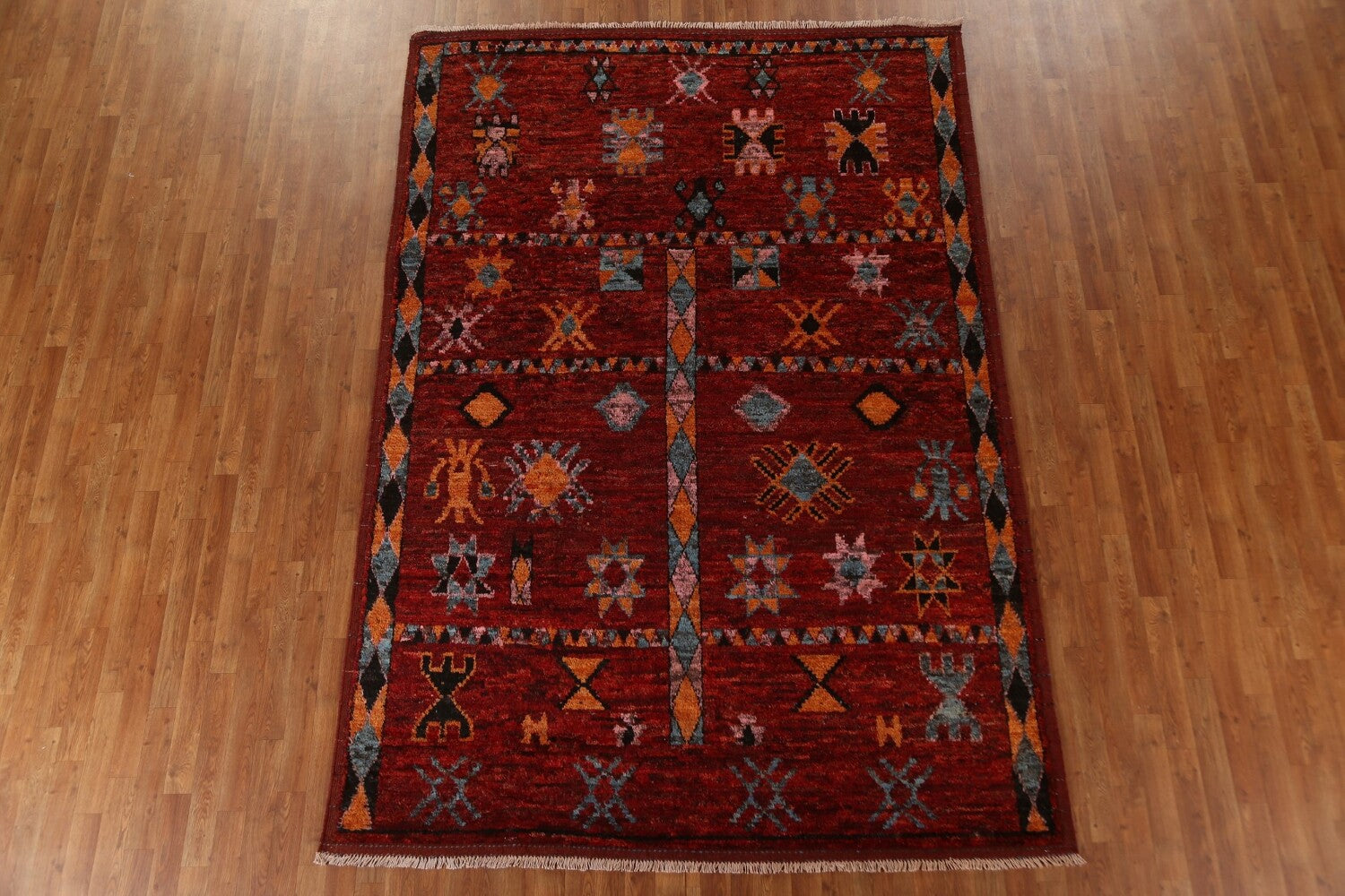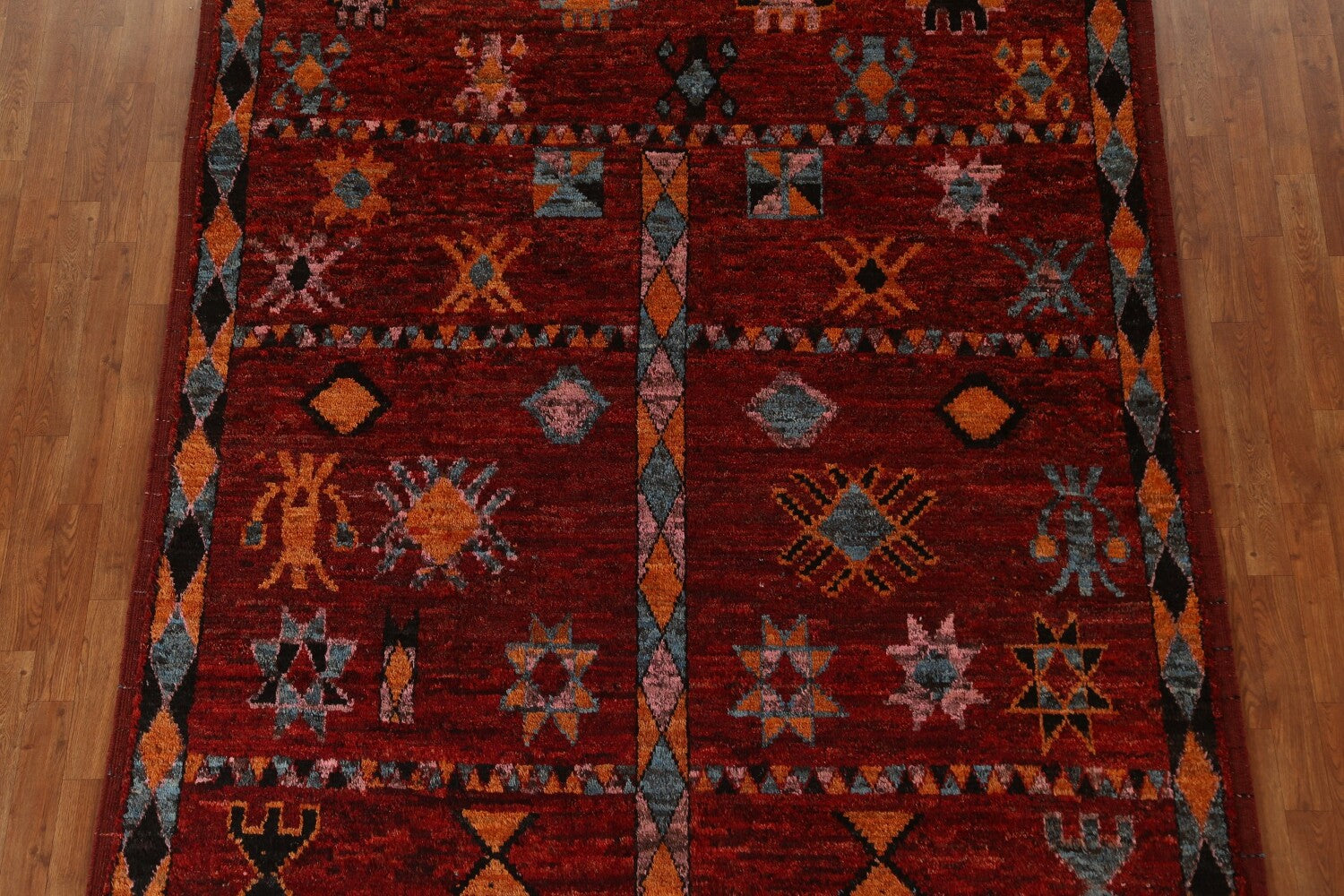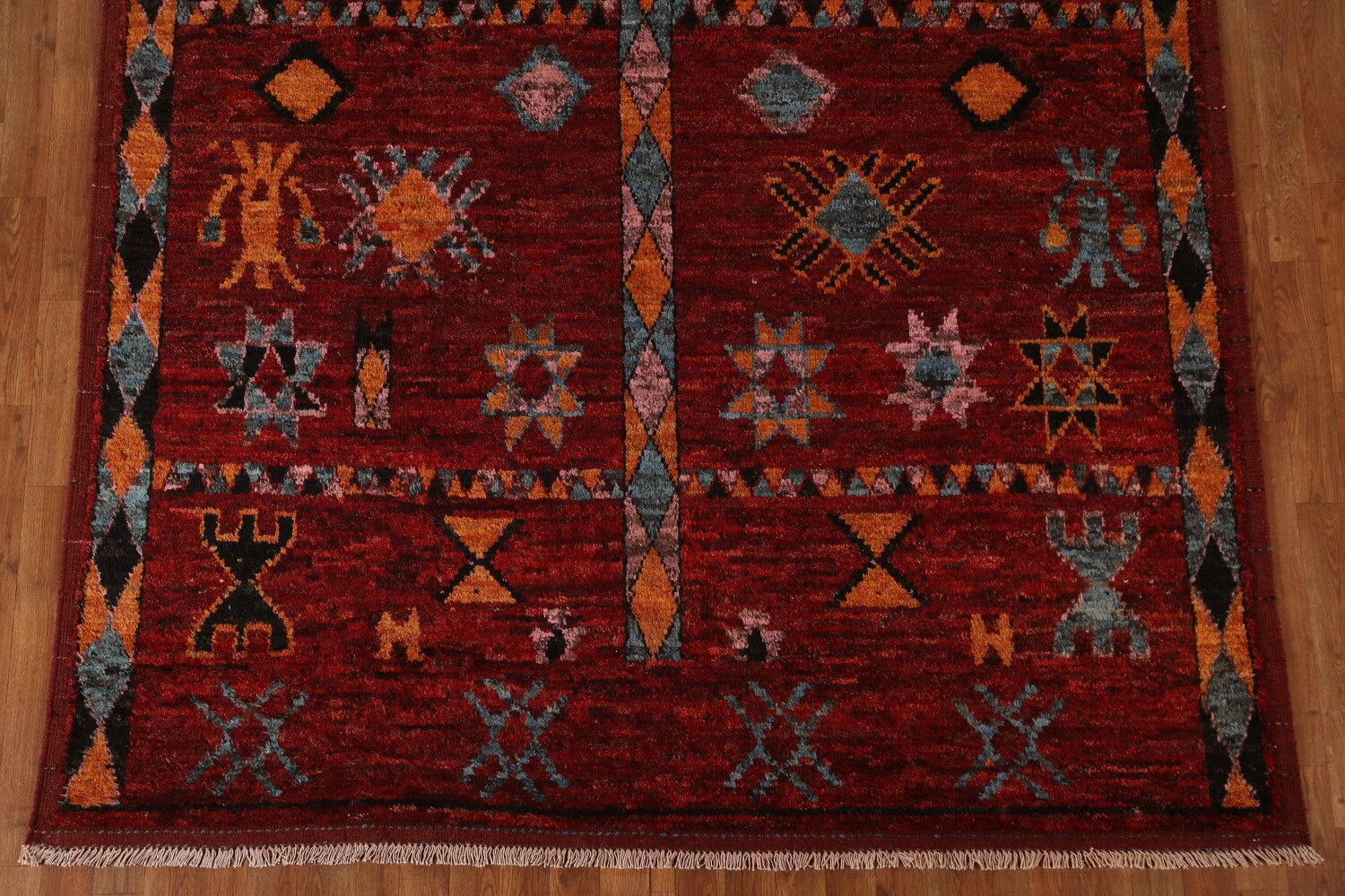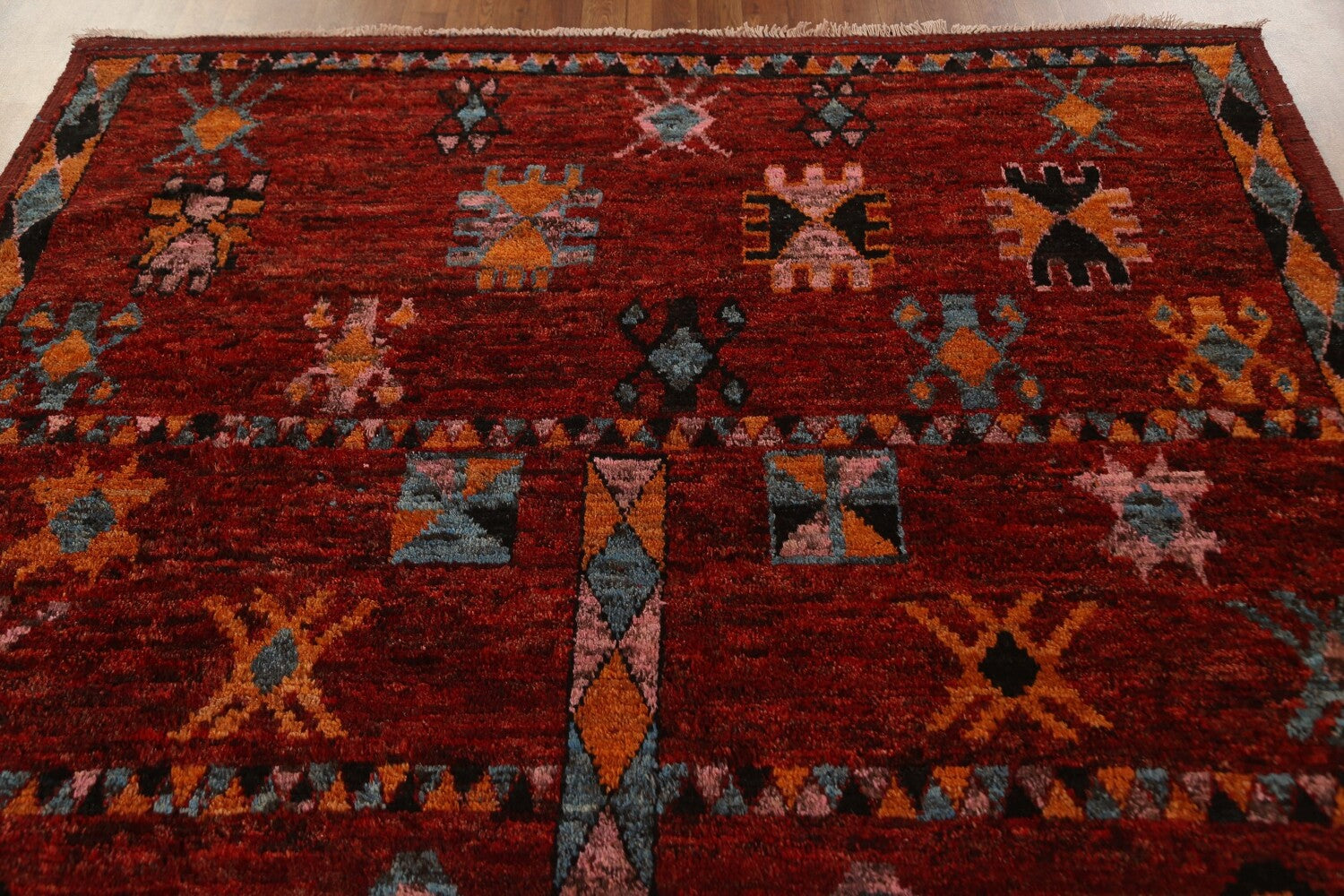 A Beautiful Genuine Pakistan Moroccan rug is Hand Knotted by skillful weavers in Pakistan with 100% Wool Material. This rug is in condition. dimensions are 10' 0'' X 6' 10'' in foot and 305 X 208 in centimeter. the primary color is Red.