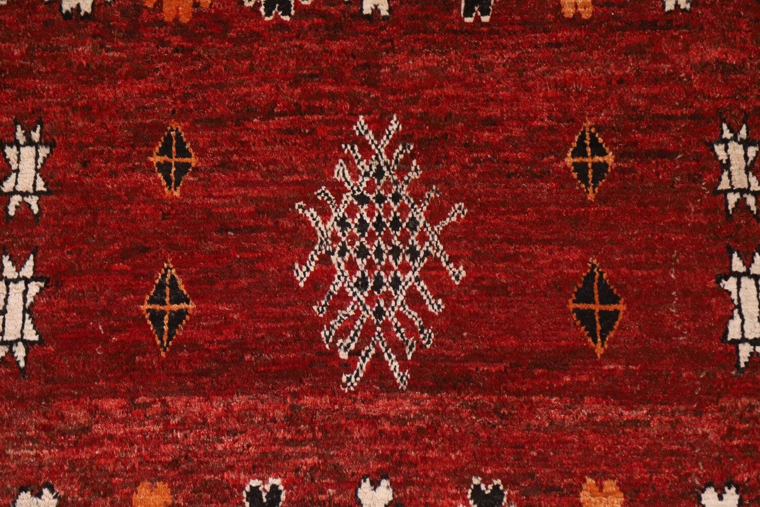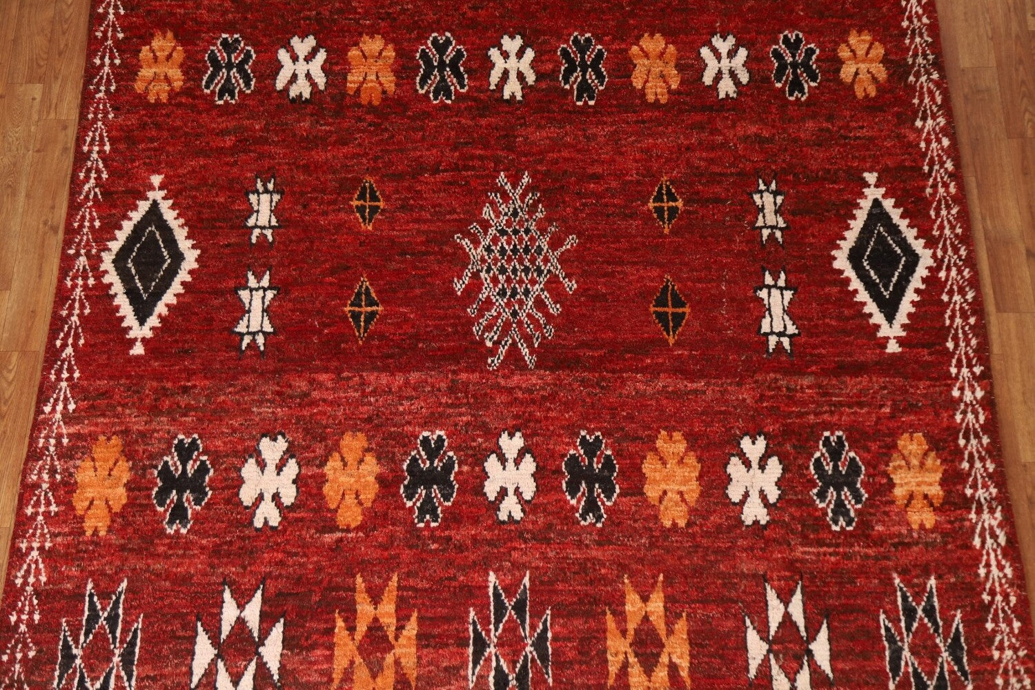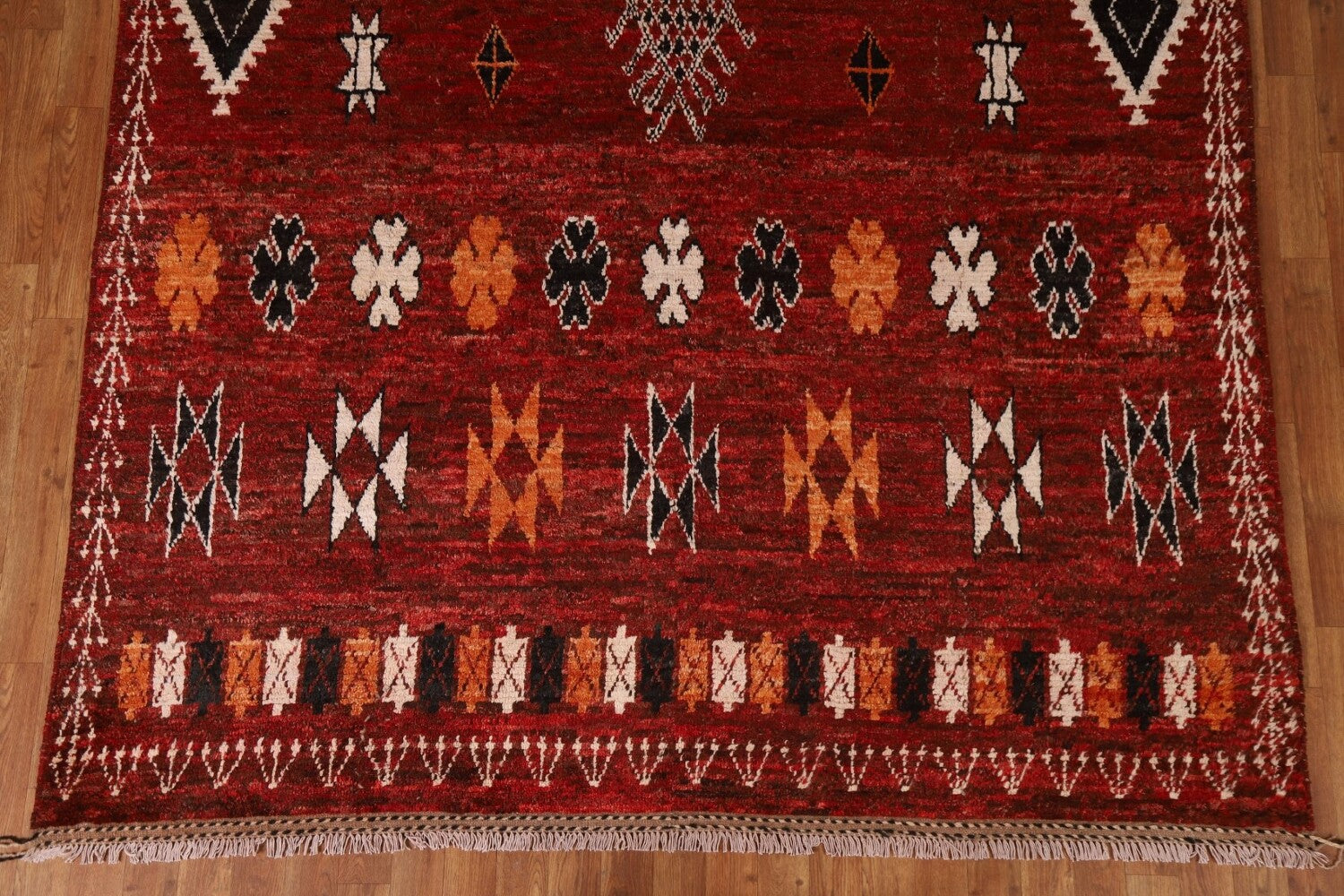 A Beautiful Genuine Pakistan Moroccan rug is Hand Knotted by skillful weavers in Pakistan with 100% Wool Material. This rug is in condition. dimensions are 9' 9'' X 6' 9'' in foot and 297 X 206 in centimeter. the primary color is Red.