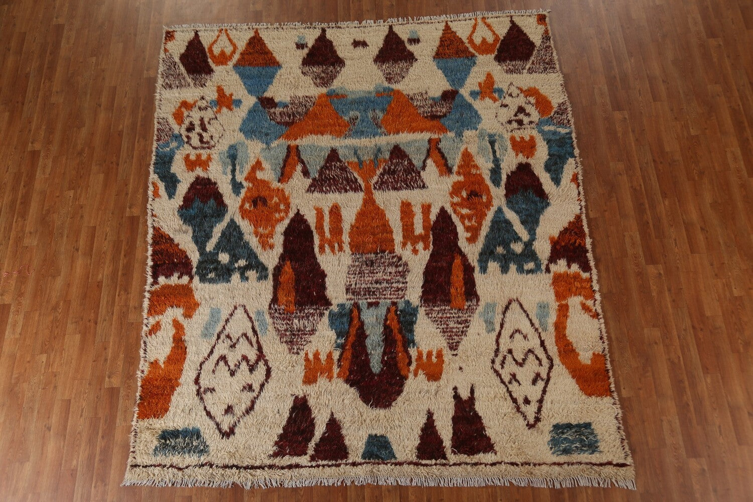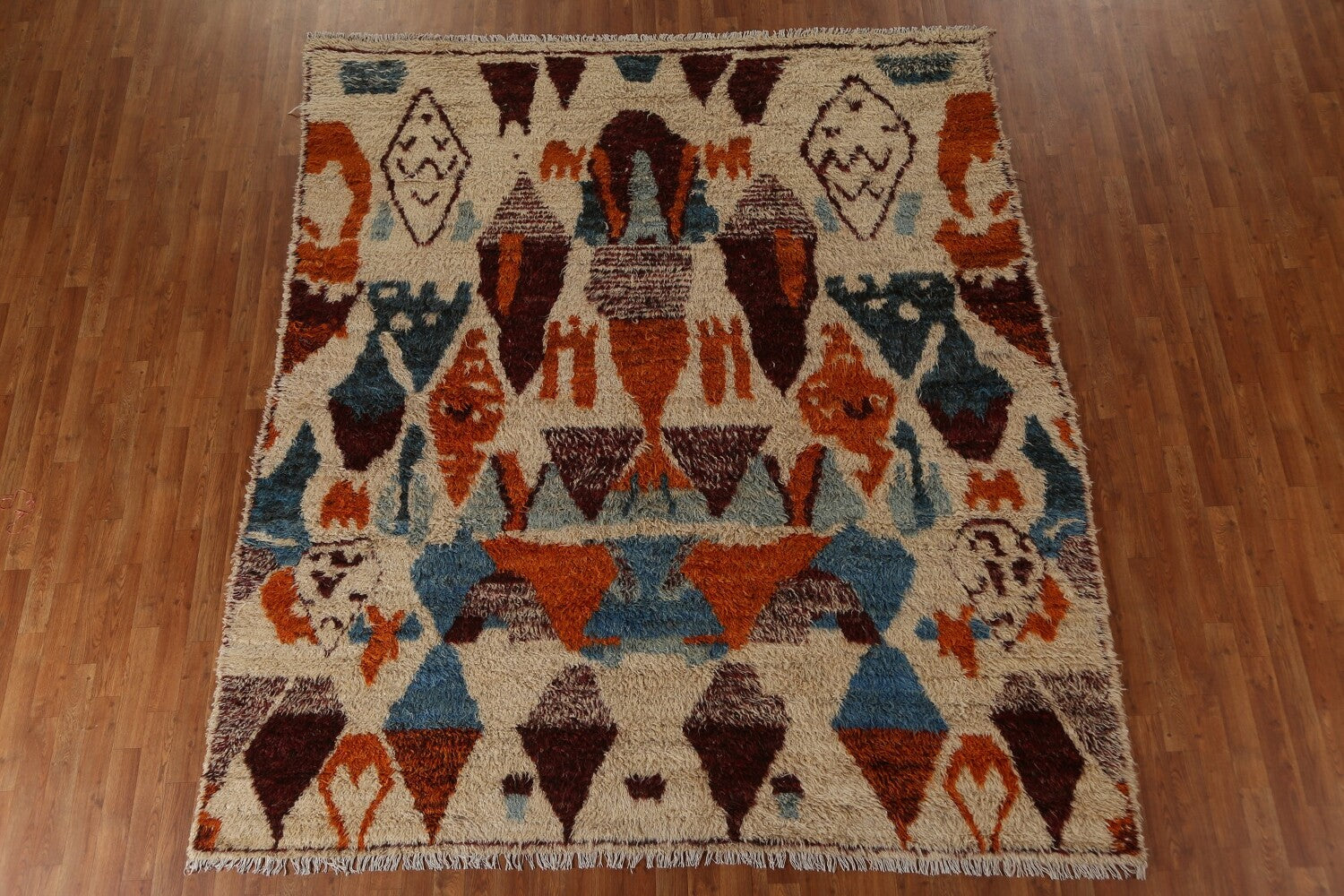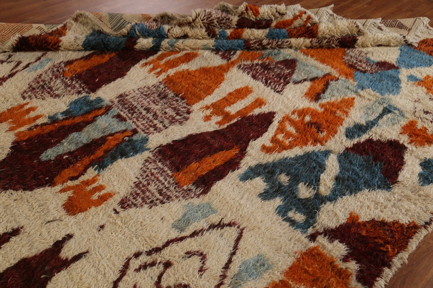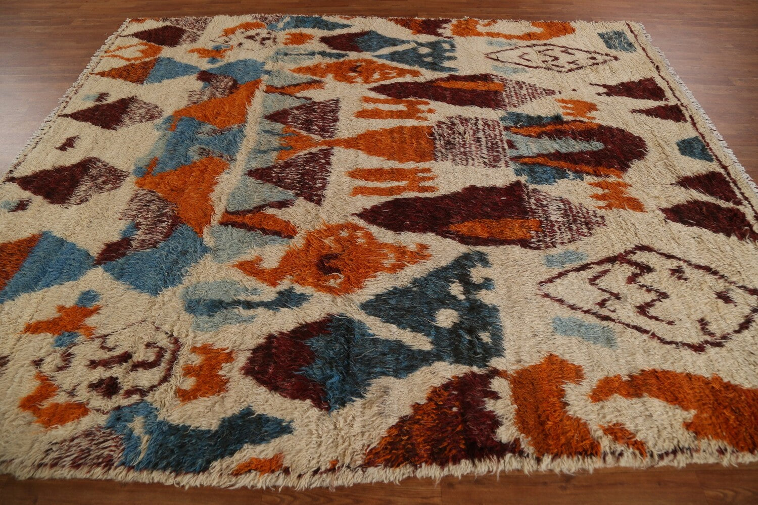 A Beautiful Genuine Pakistan Moroccan rug is Hand Knotted by skillful weavers in Pakistan with 100% Wool Material. This rug is in New, First Quality condition. dimensions are 9' 2'' X 8' 2'' in foot and 279 X 249 in centimeter. the primary color is Beige & Ivories.
