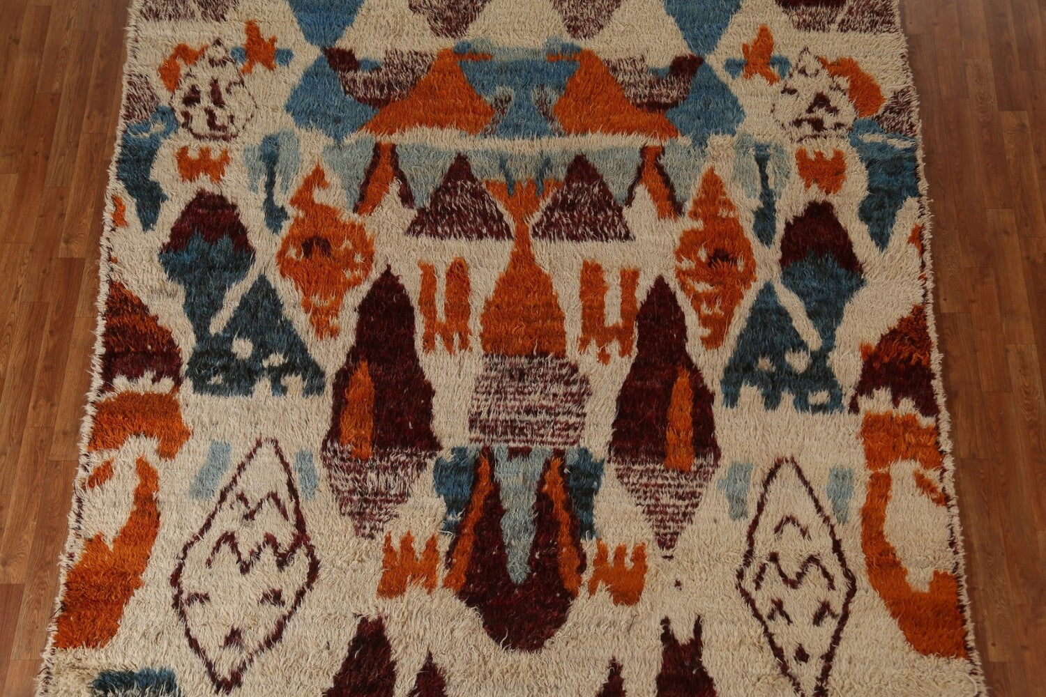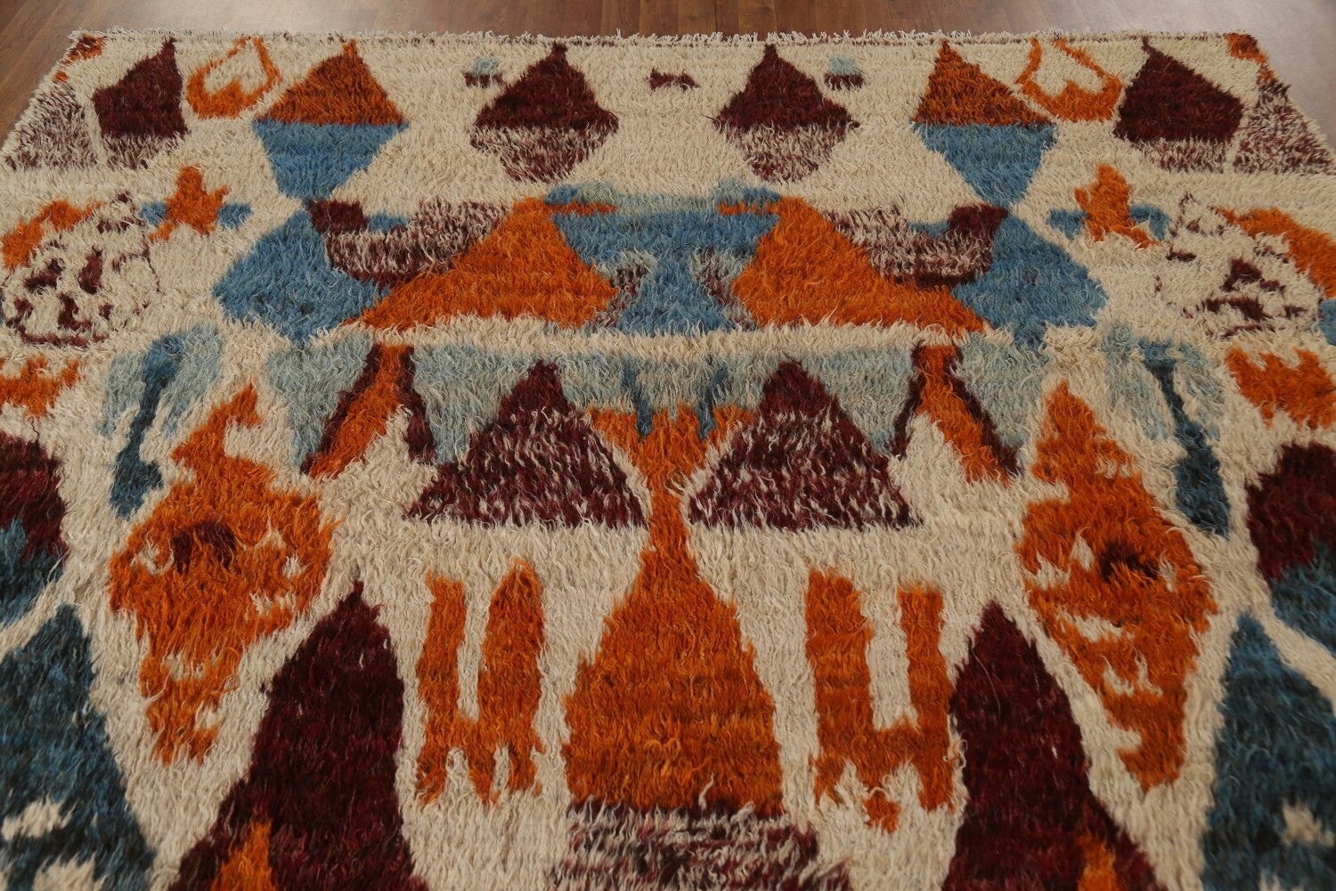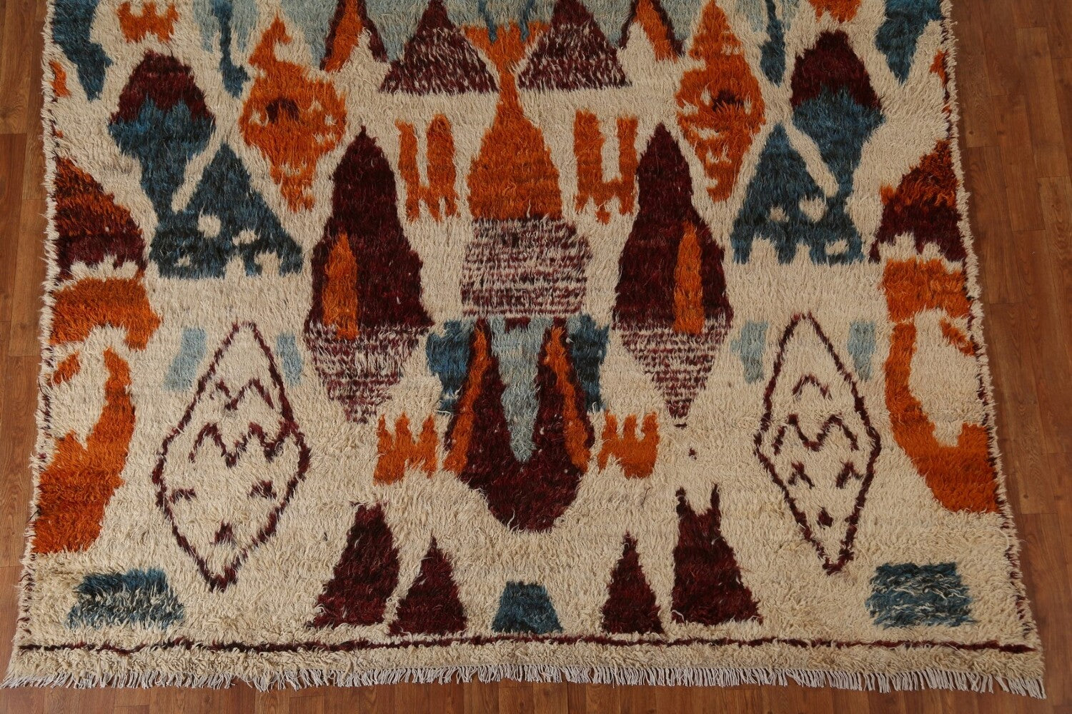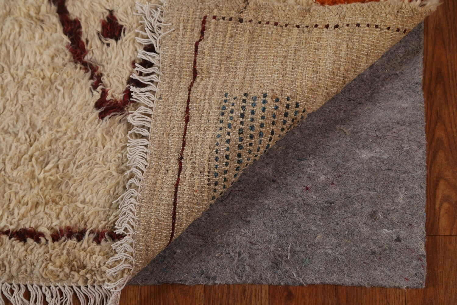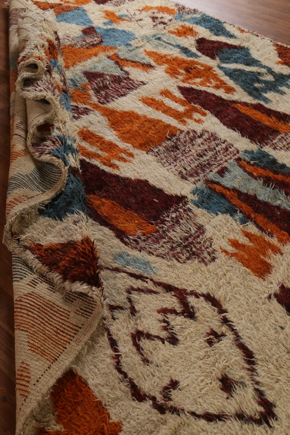 A Beautiful Genuine Pakistan Moroccan rug is Hand Knotted by skillful weavers in Pakistan with 100% Wool Material. This rug is in New, First Quality condition. dimensions are 9' 2'' X 8' 2'' in foot and 279 X 249 in centimeter. the primary color is Beige & Ivories.