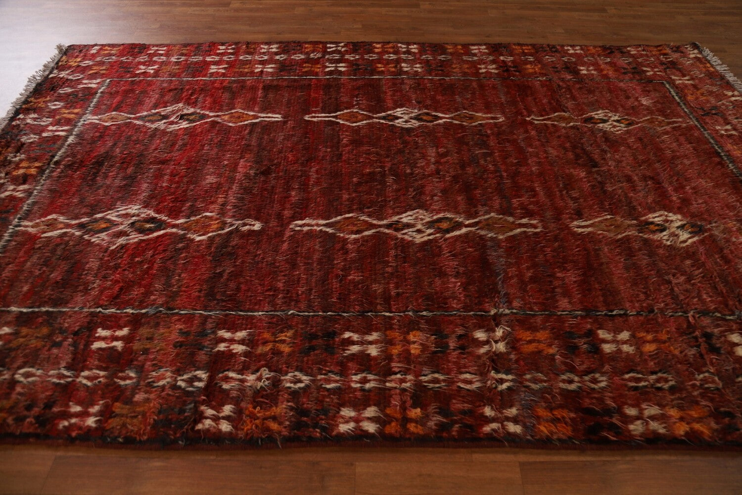 A Beautiful Genuine Pakistan Moroccan rug is Hand Knotted by skillful weavers in Pakistan with 100% Wool Material. This rug is in condition. dimensions are 9' 9'' X 6' 4'' in foot and 297 X 193 in centimeter. the primary color is Red.