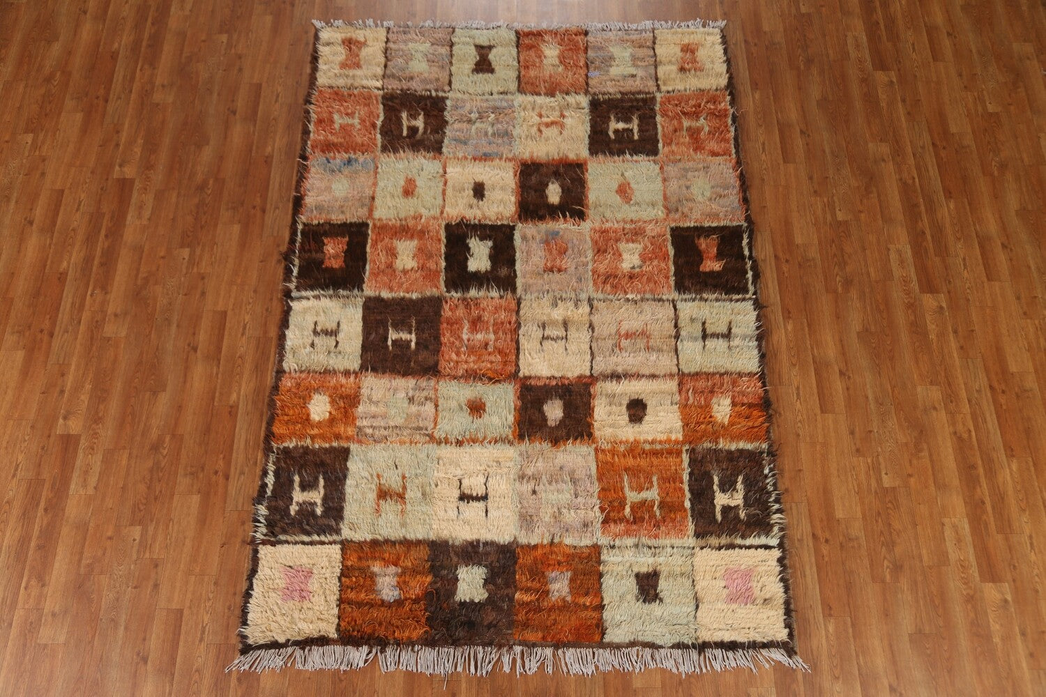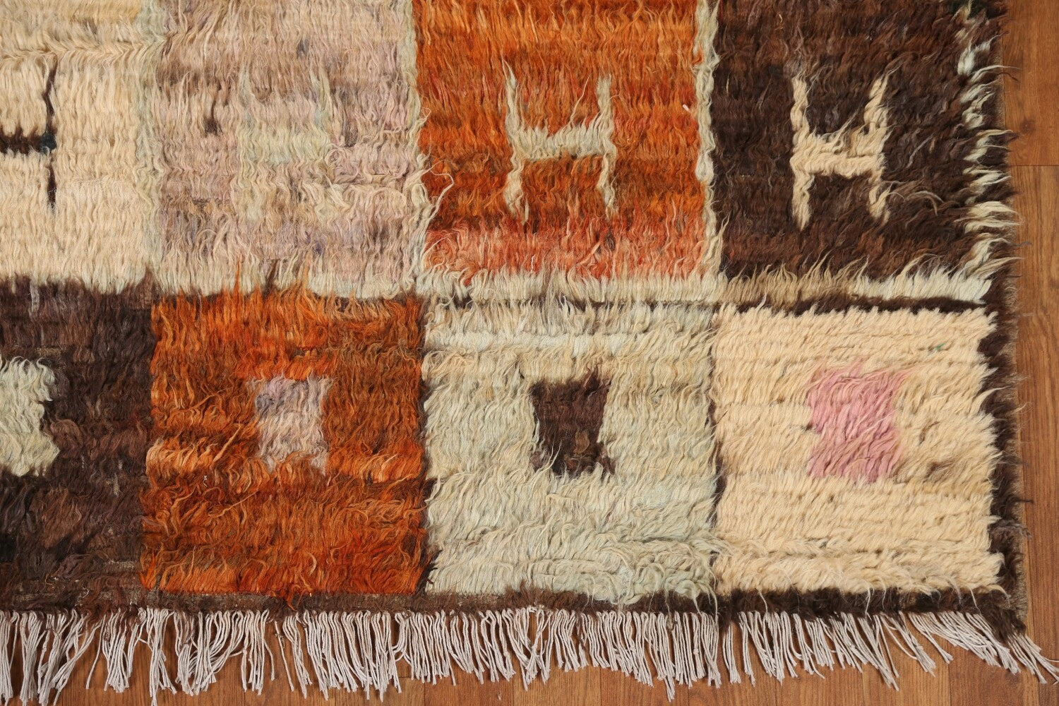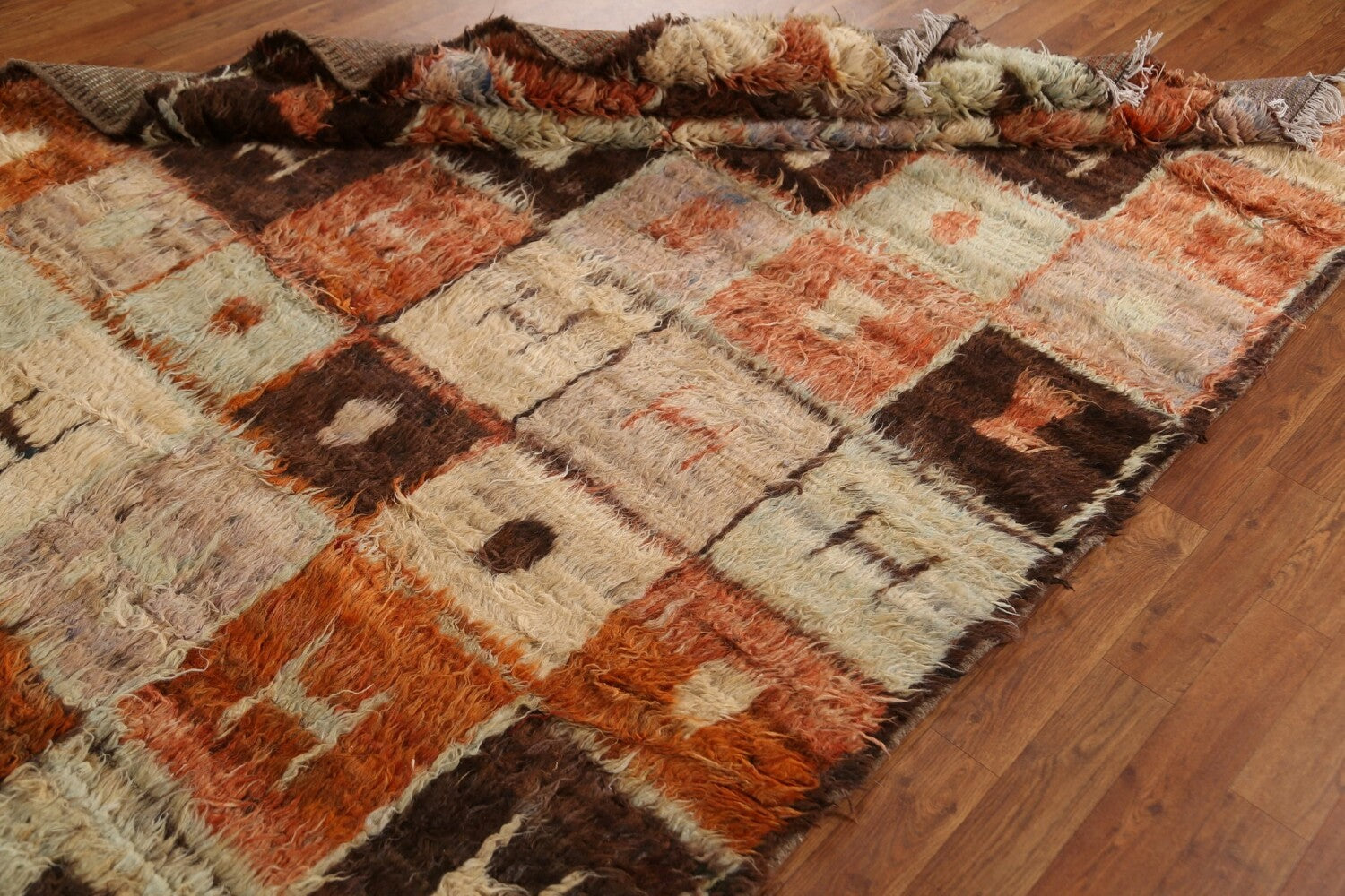 A Beautiful Genuine Pakistan Moroccan rug is Hand Knotted by skillful weavers in Pakistan with 100% Wool Material. This rug is in condition. dimensions are 7' 9'' X 5' 6'' in foot and 236 X 168 in centimeter. the primary color is Multi-Colored.