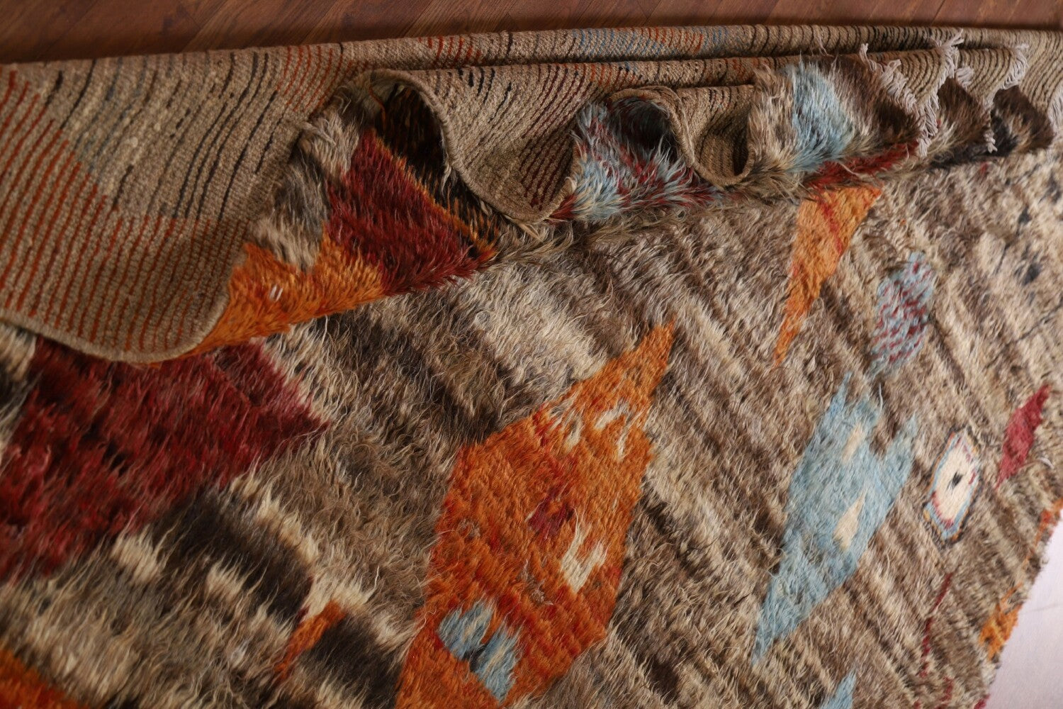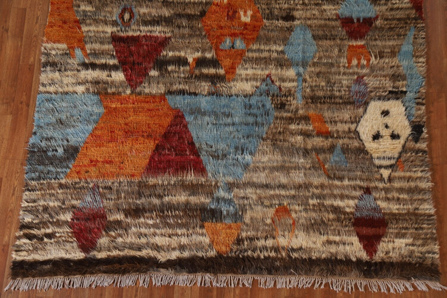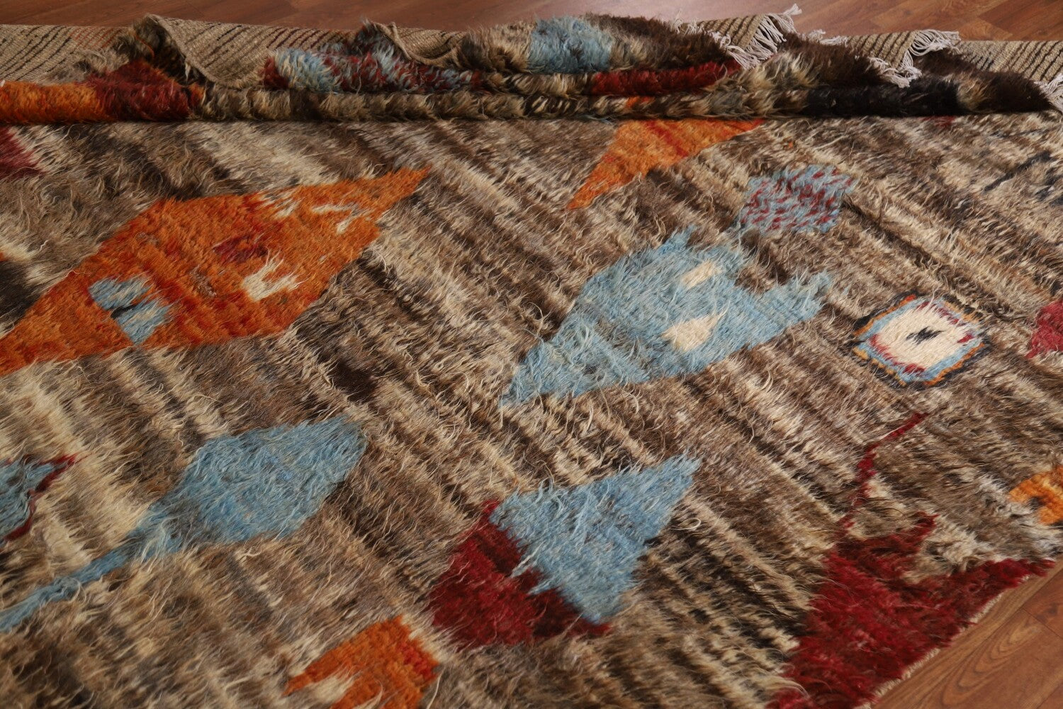 A Beautiful Genuine Pakistan Moroccan rug is Hand Knotted by skillful weavers in Pakistan with 100% Wool Material. This rug is in condition. dimensions are 9' 11'' X 6' 9'' in foot and 302 X 206 in centimeter. the primary color is Brown.
