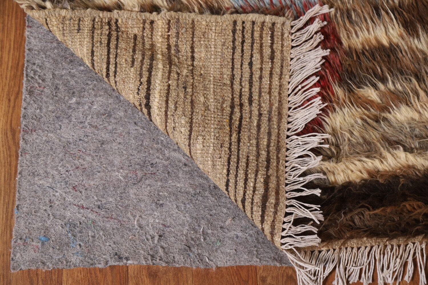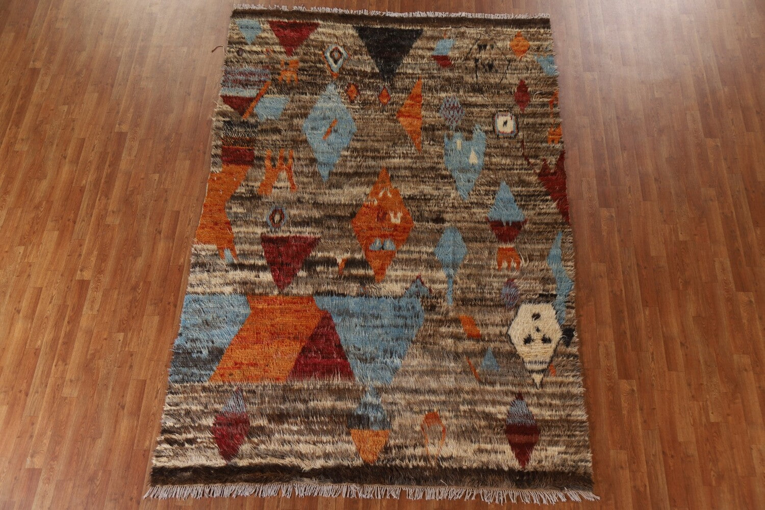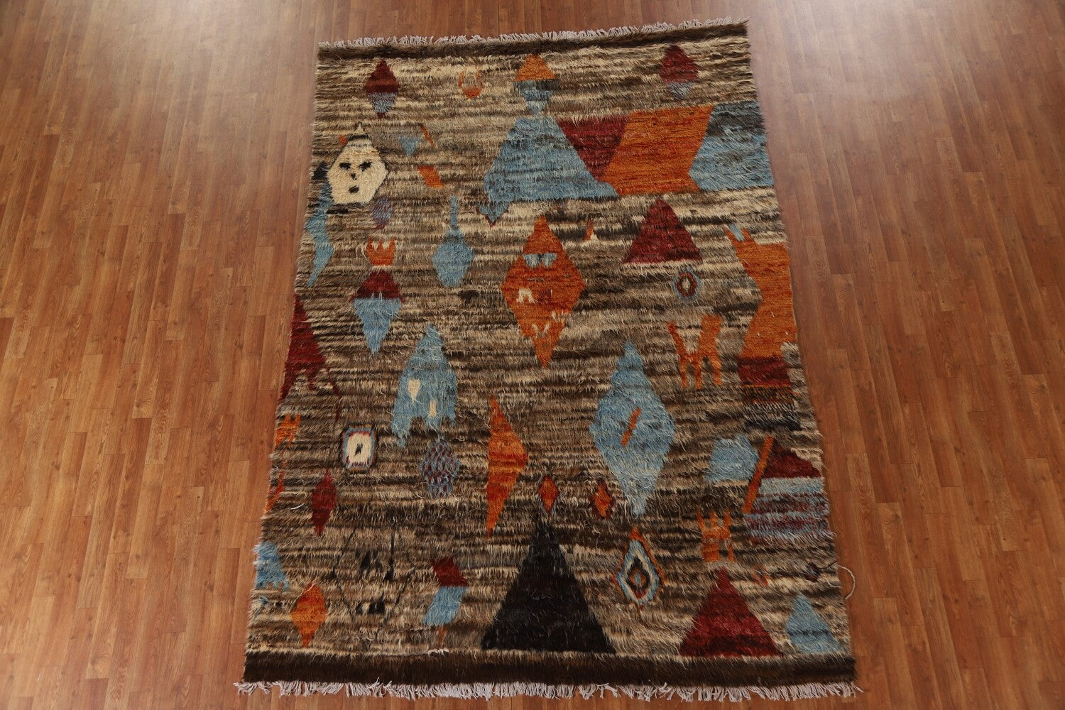 A Beautiful Genuine Pakistan Moroccan rug is Hand Knotted by skillful weavers in Pakistan with 100% Wool Material. This rug is in condition. dimensions are 9' 11'' X 6' 9'' in foot and 302 X 206 in centimeter. the primary color is Brown.