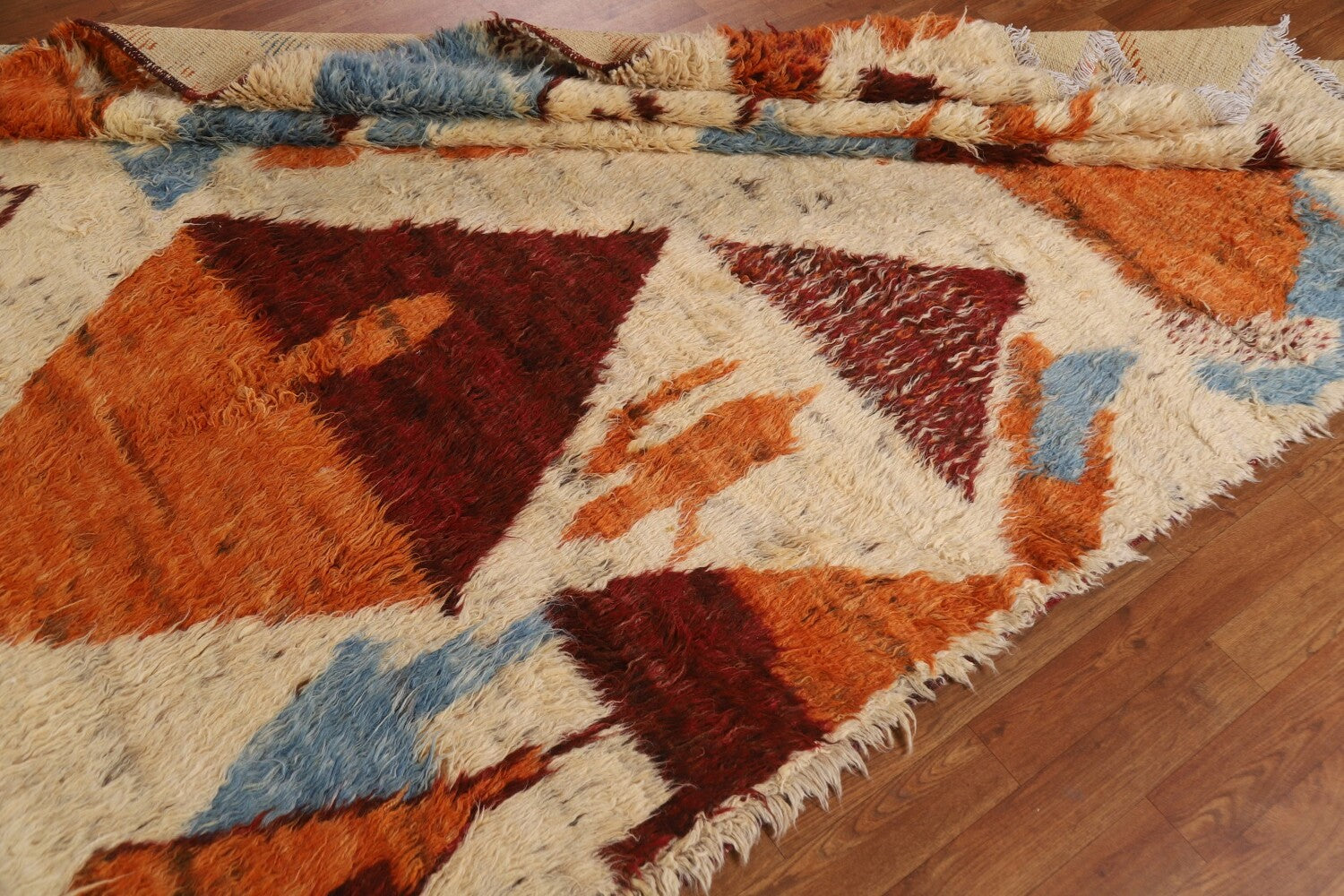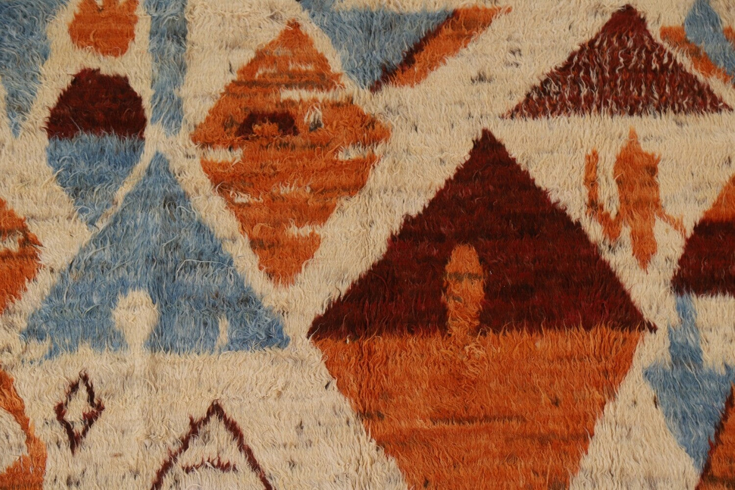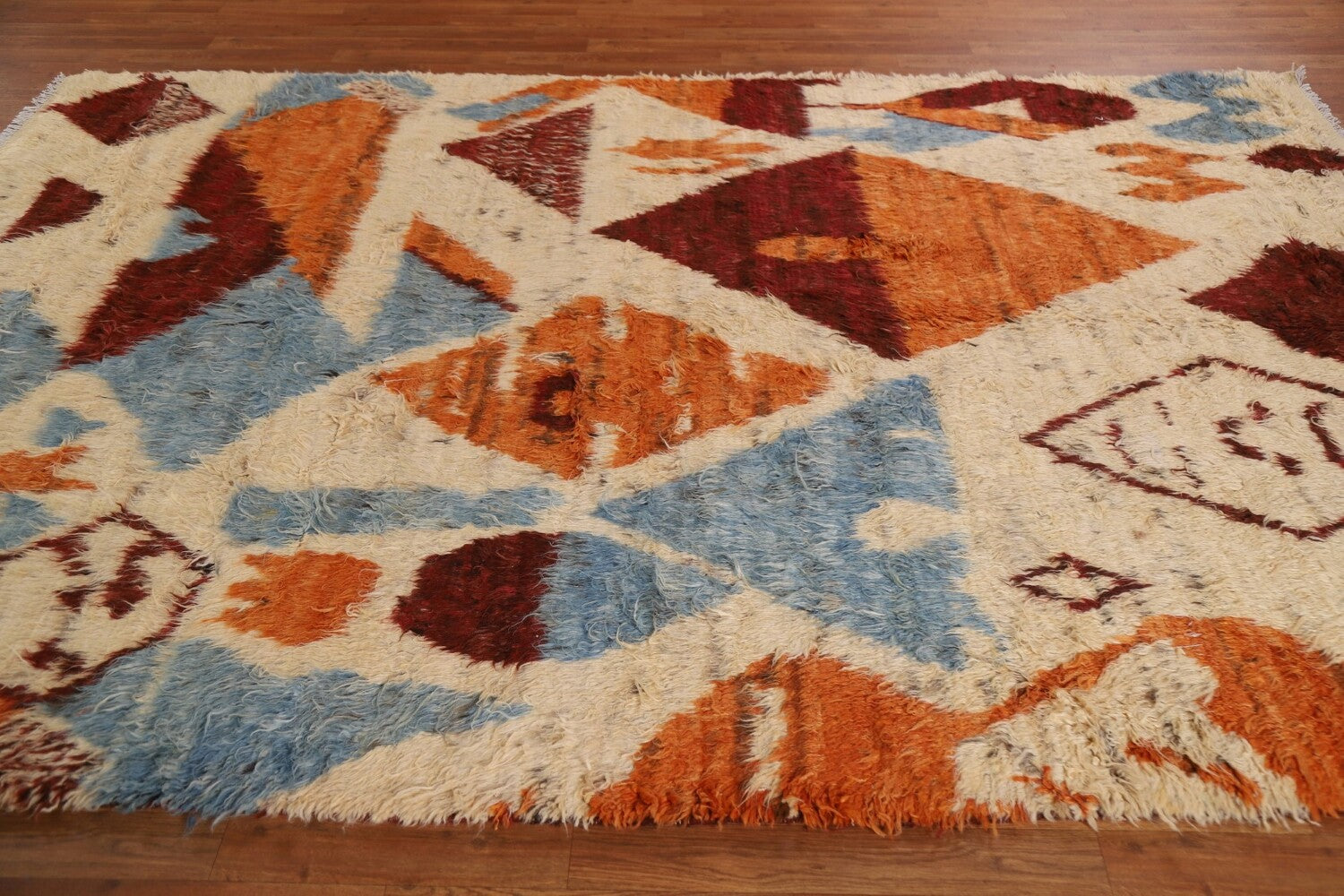 A Beautiful Genuine Pakistan Moroccan rug is Hand Knotted by skillful weavers in Pakistan with 100% Wool Material. This rug is in condition. dimensions are 9' 11'' X 6' 9'' in foot and 302 X 206 in centimeter. the primary color is Beige & Ivories.