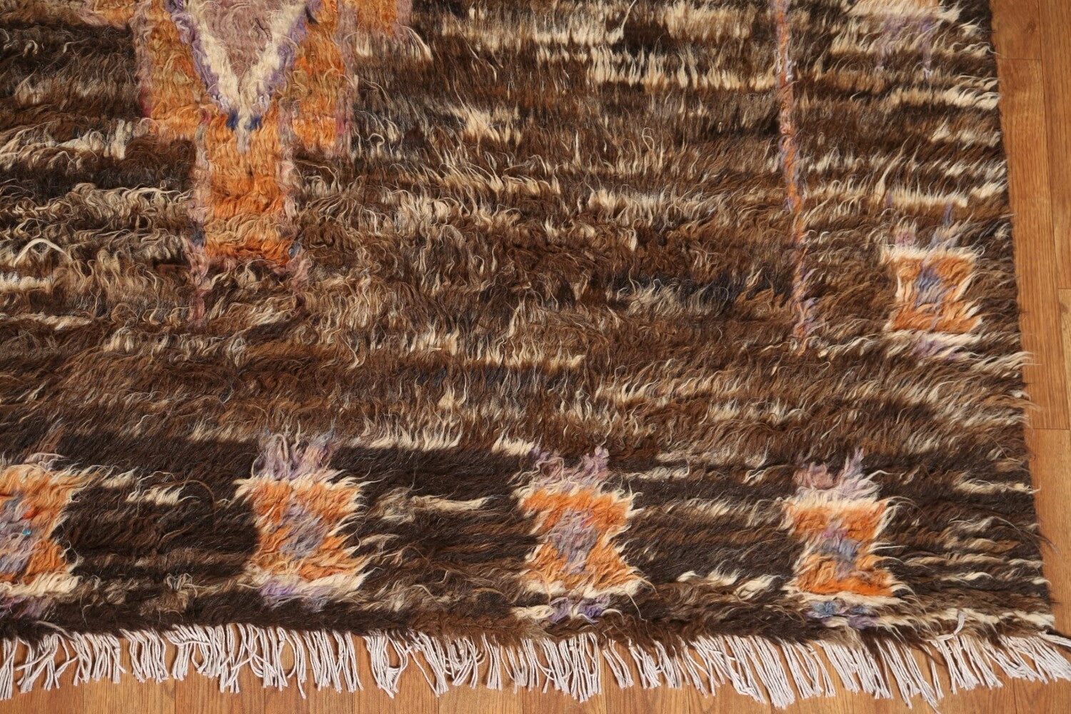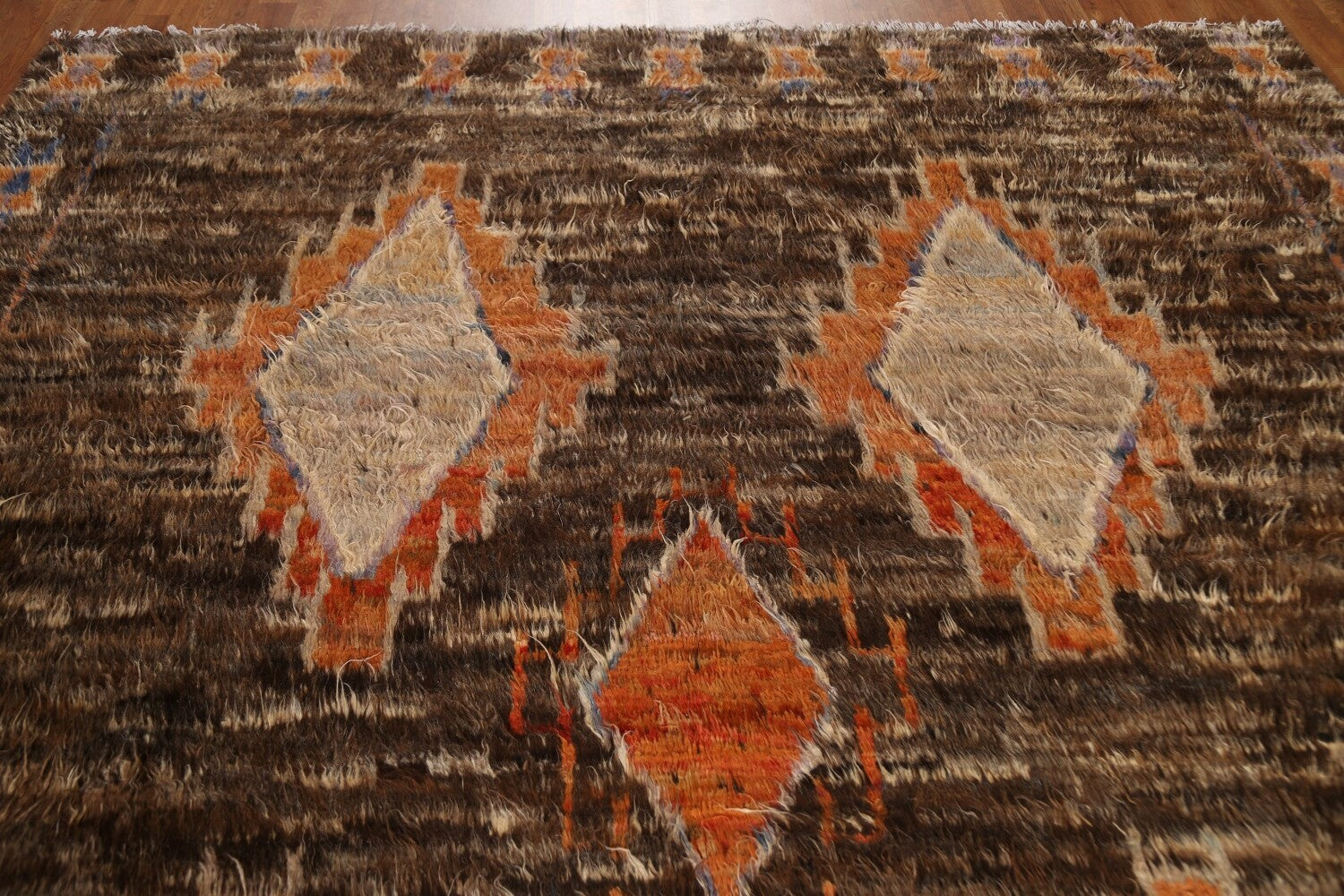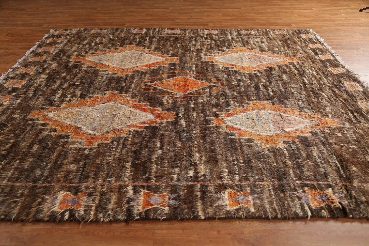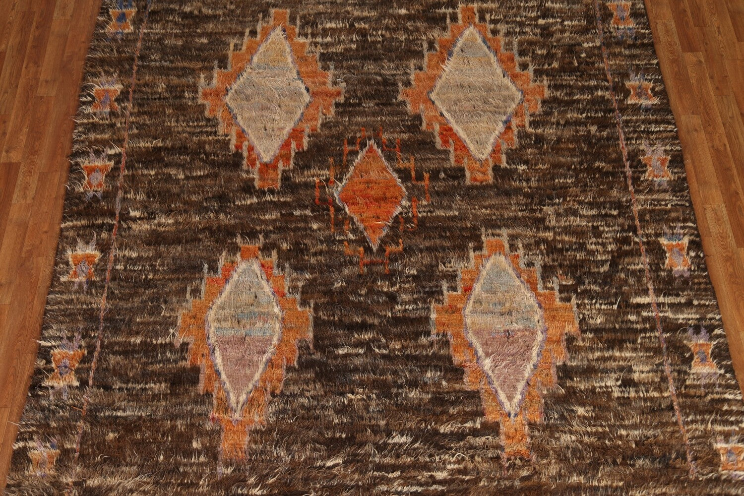 A Beautiful Genuine Pakistan Moroccan rug is Hand Knotted by skillful weavers in Pakistan with 100% Wool Material. This rug is in New, First Quality condition. dimensions are 9' 6'' X 8' 3'' in foot and 290 X 251 in centimeter. the primary color is Brown.
