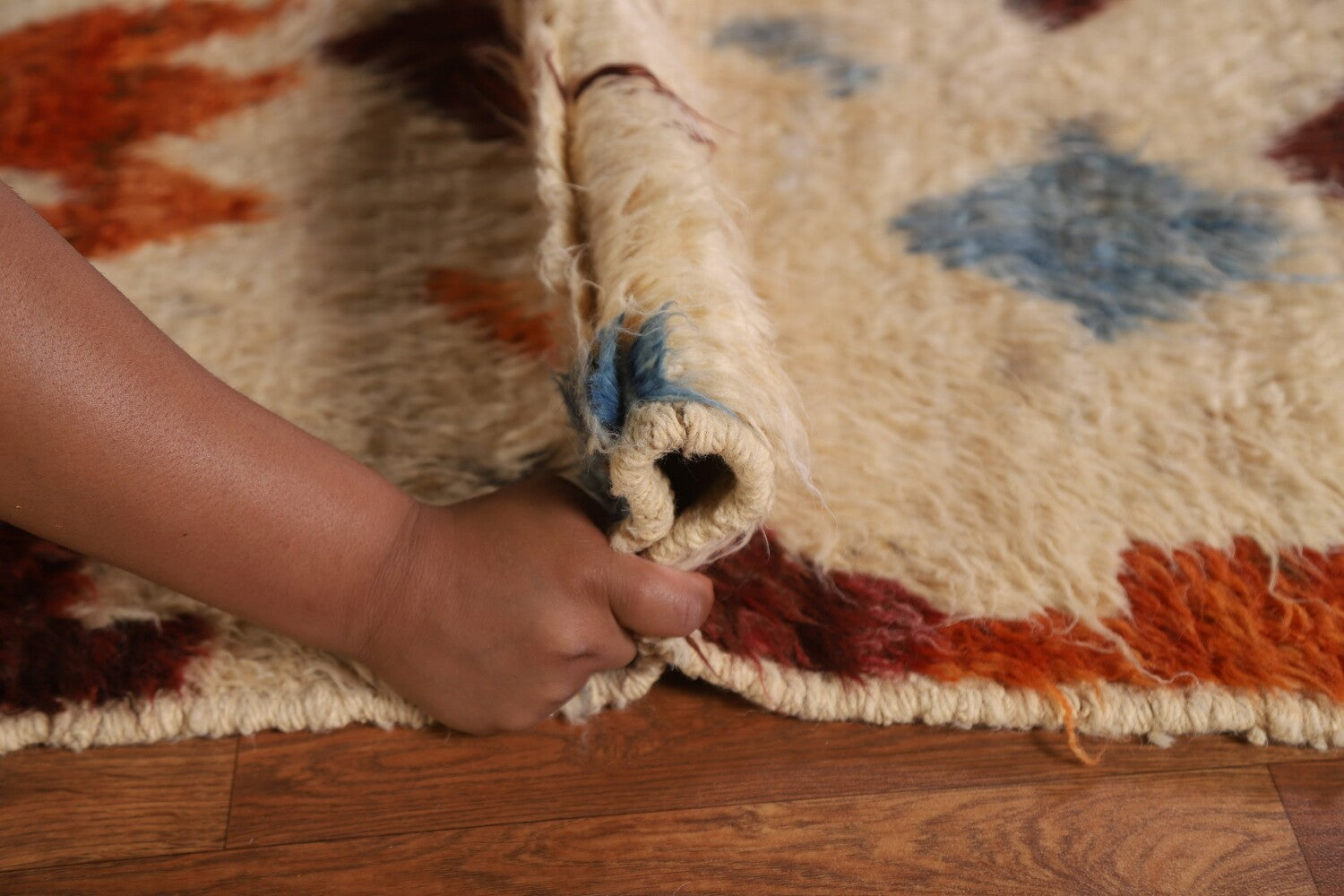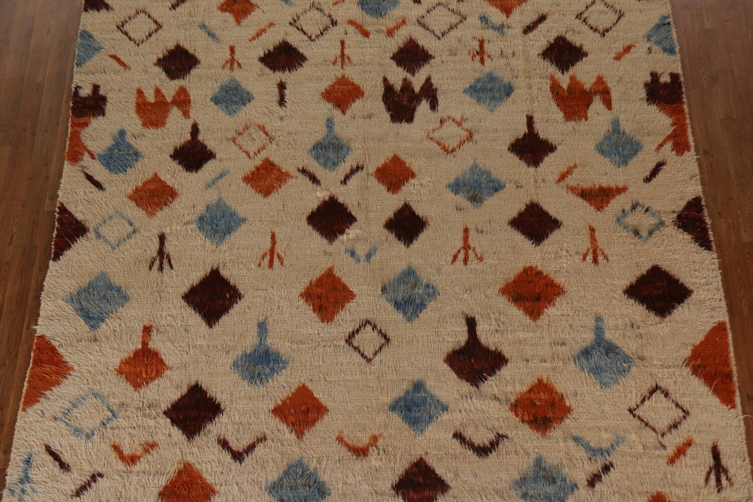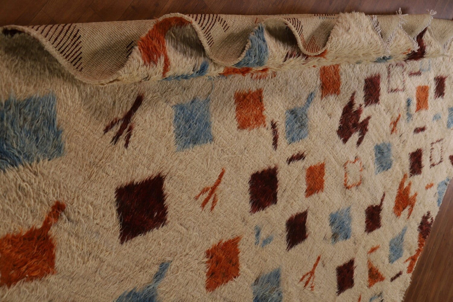 A Beautiful Genuine Pakistan Moroccan rug is Hand Knotted by skillful weavers in Pakistan with 100% Wool Material. This rug is in condition. dimensions are 10' 3'' X 8' 1'' in foot and 312 X 246 in centimeter. the primary color is Beige & Ivories.