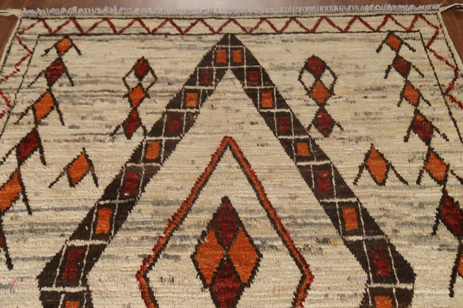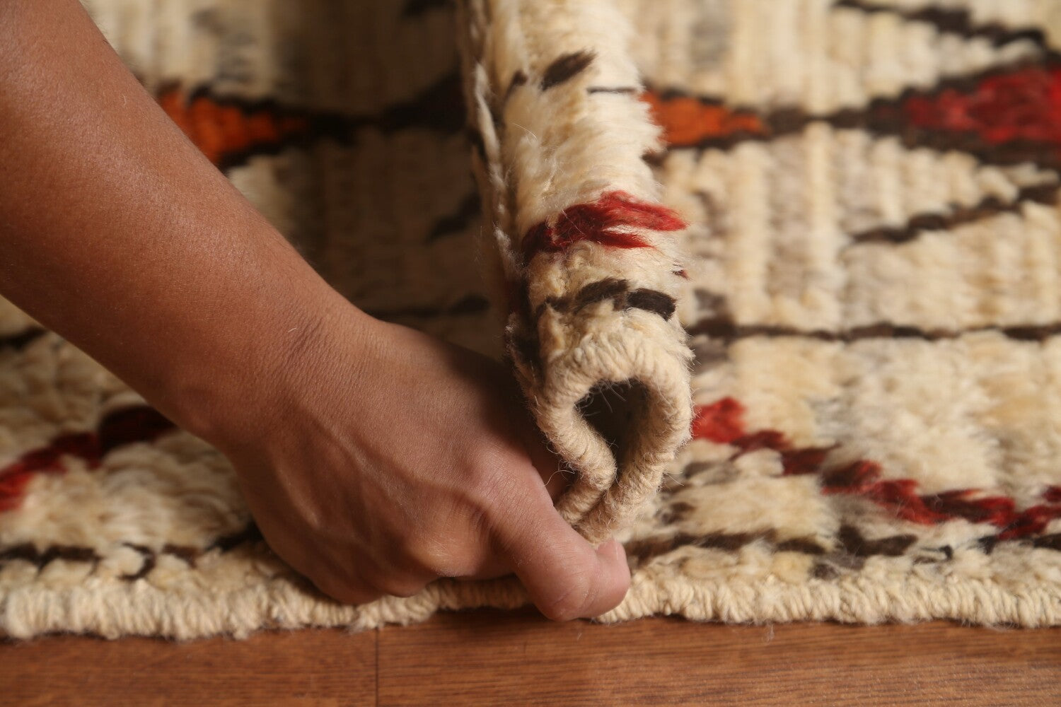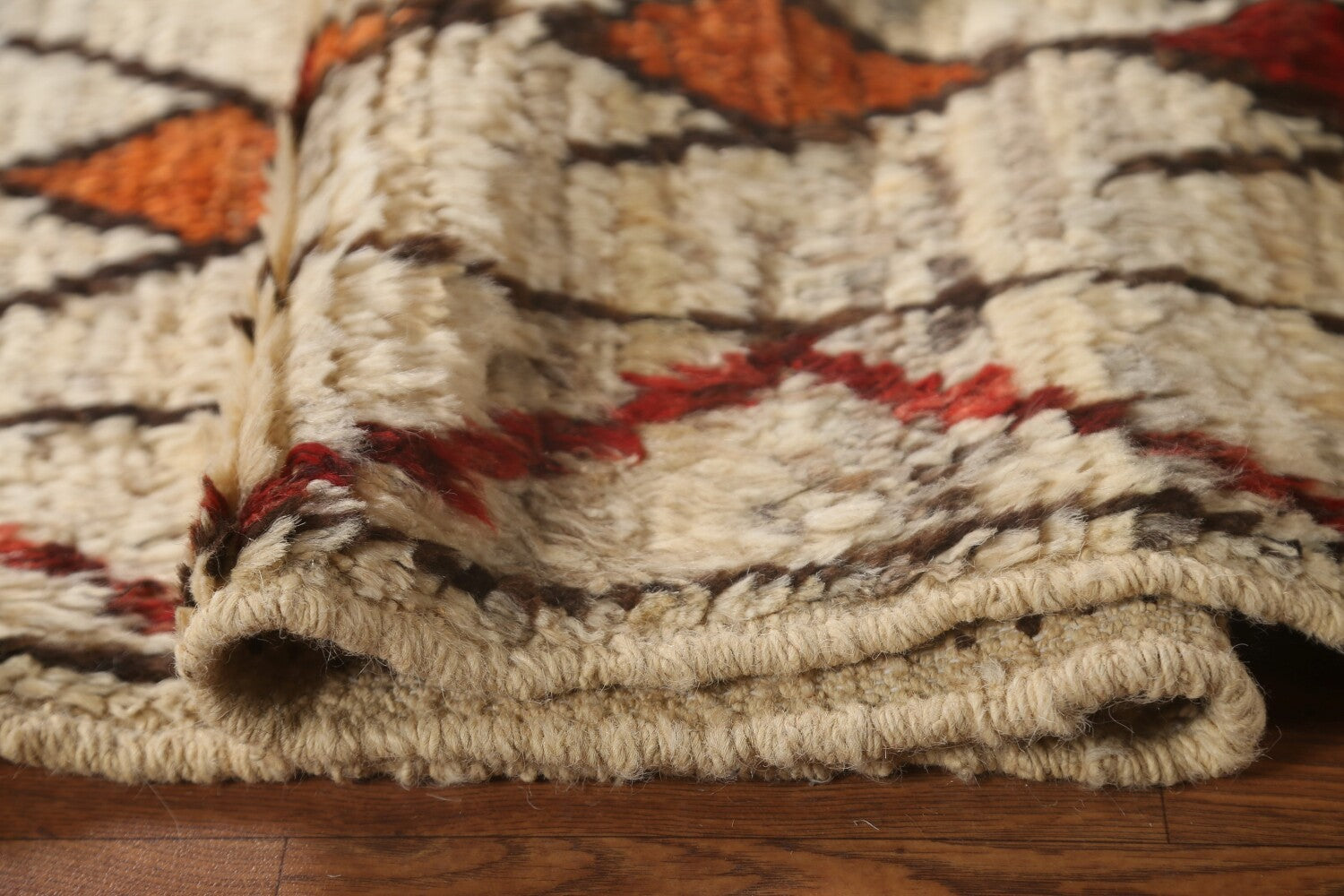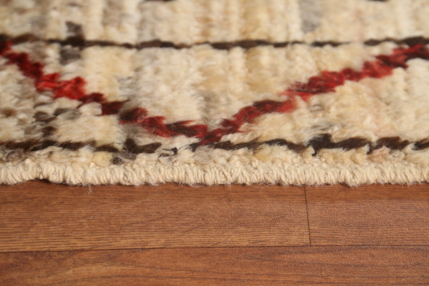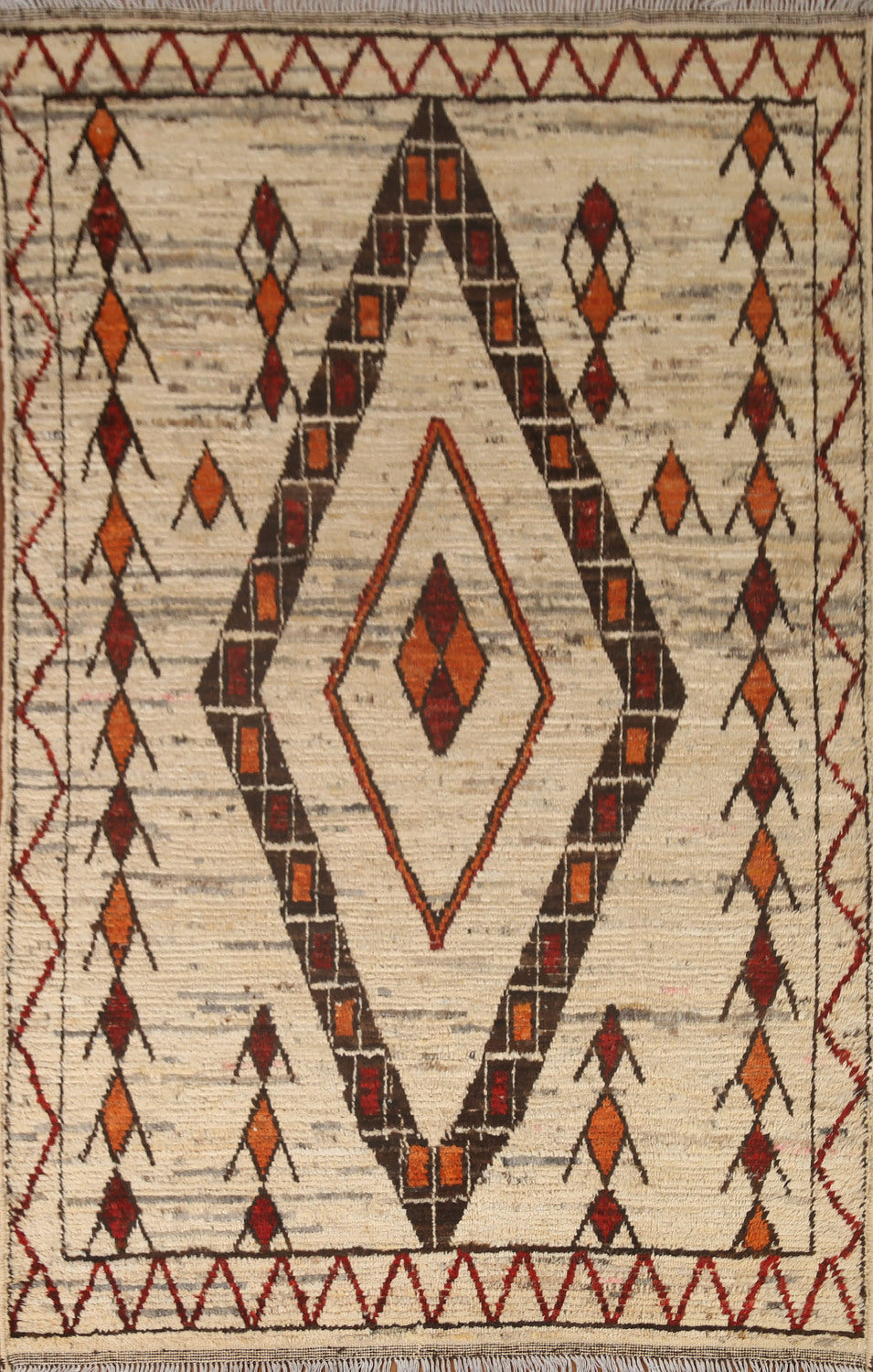 A Beautiful Genuine Pakistan Moroccan rug is Hand Knotted by skillful weavers in Pakistan with 100% Wool Material. This rug is in condition. dimensions are 8' 0'' X 5' 8'' in foot and 244 X 173 in centimeter. the primary color is Beige & Ivories.