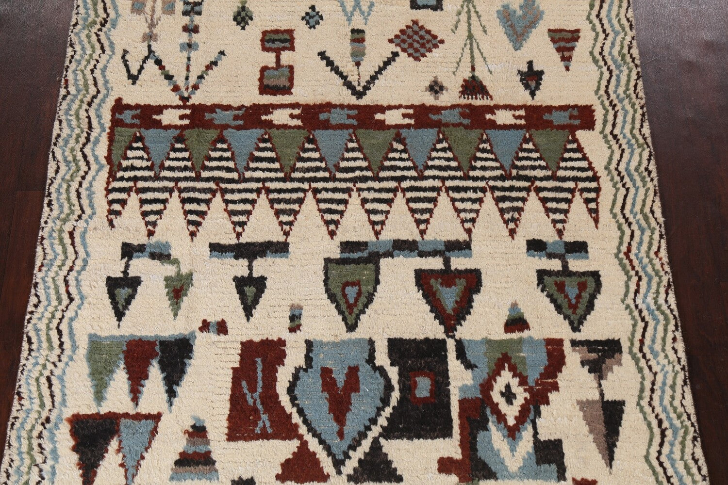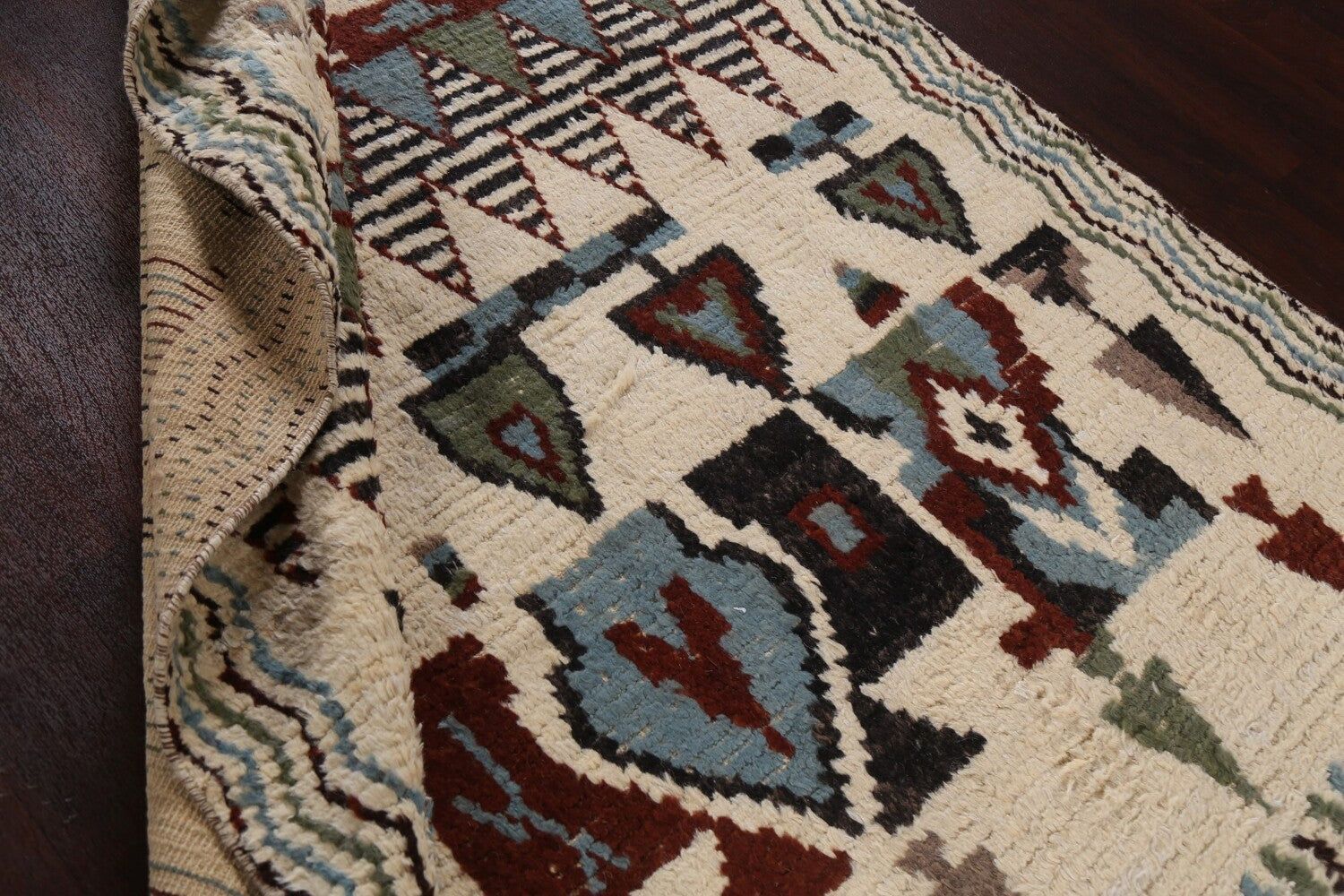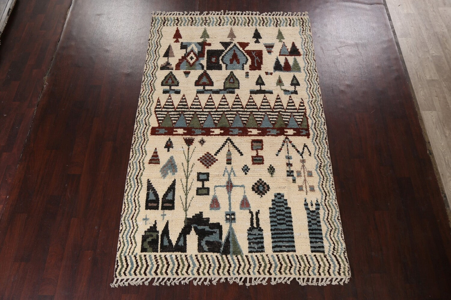A Beautiful Genuine Morocco Moroccan rug is Hand Knotted by skillful weavers in Morocco with 100% Wool Material. This rug is in New, First Quality condition. dimensions are 9' 6'' X 5' 11'' in foot and 290 X 180 in centimeter. the primary color is Beige & Ivories.