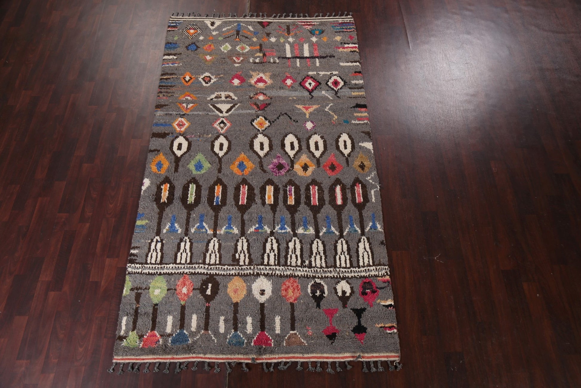 A Beautiful Genuine Morocco Moroccan rug is Hand Knotted by skillful weavers in Morocco with 100% Wool Material. This rug is in New, First Quality condition. dimensions are 10' 3'' X 5' 9'' in foot and 312 X 175 in centimeter. the primary color is Greys & Charcoal.