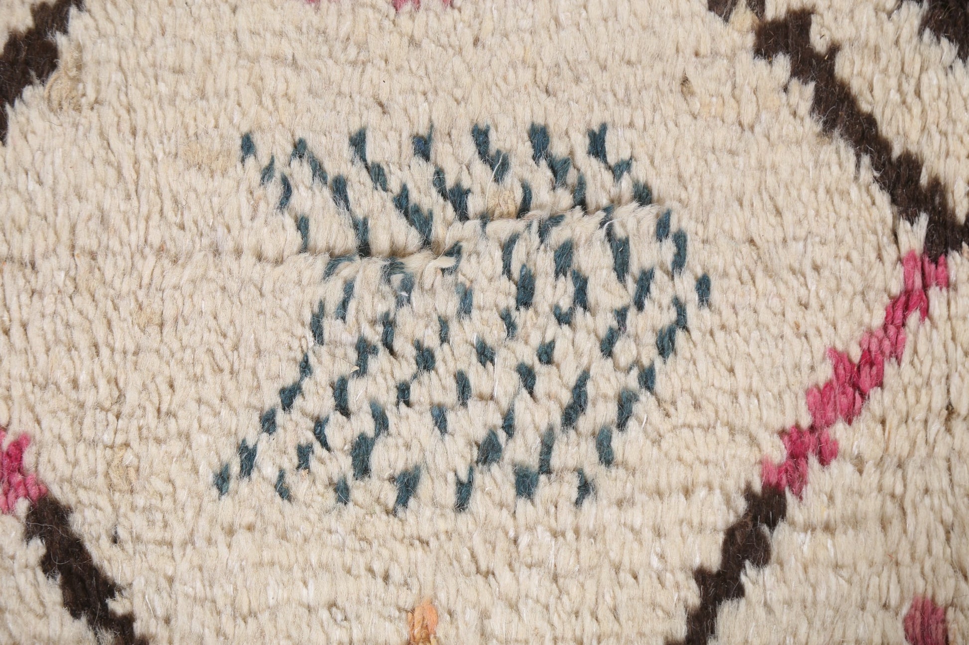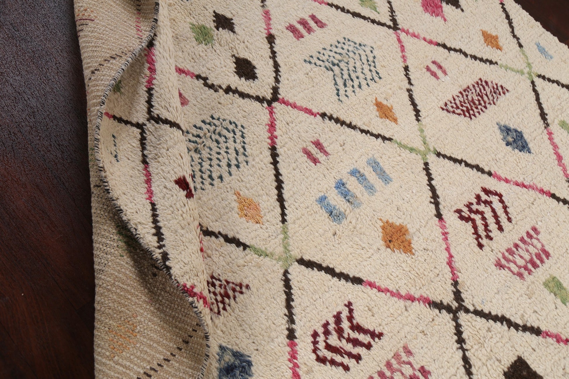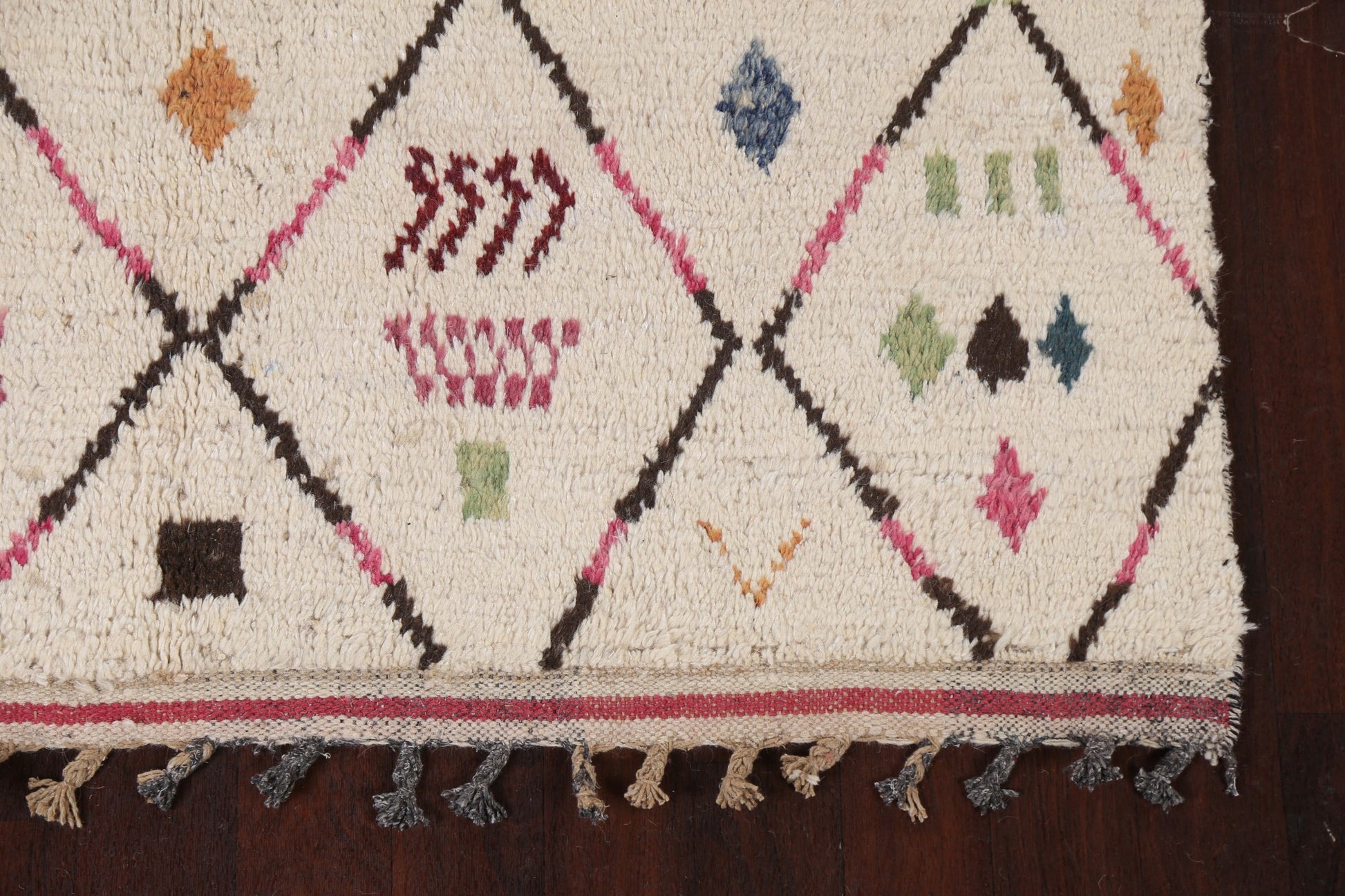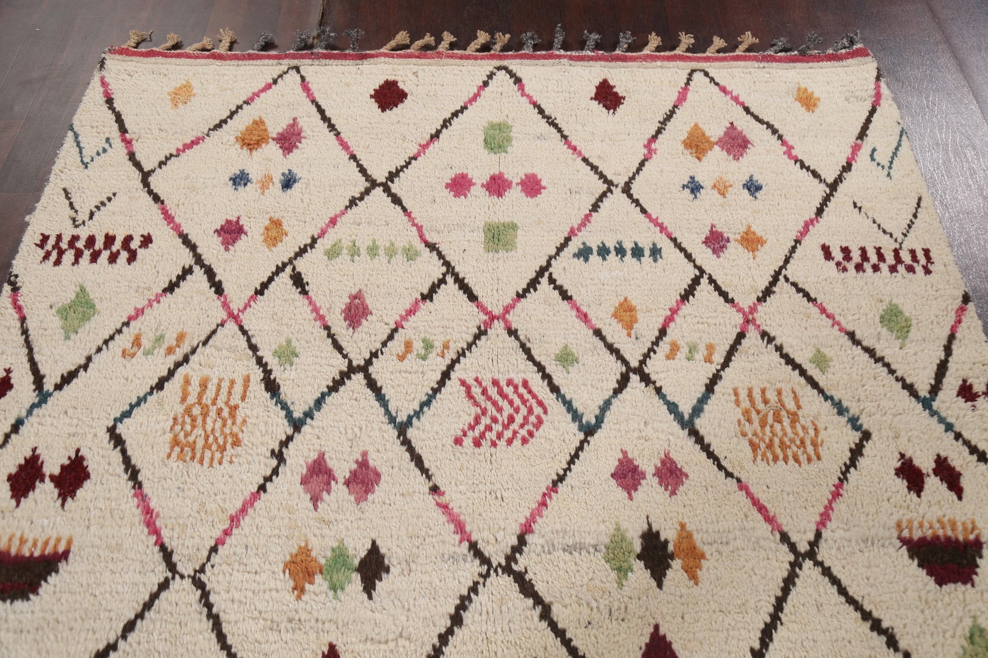 A Beautiful Genuine Morocco Moroccan rug is Hand Knotted by skillful weavers in Morocco with 100% Wool Material. This rug is in New, First Quality condition. dimensions are 9' 8'' X 5' 11'' in foot and 295 X 180 in centimeter. the primary color is Beige & Ivories.