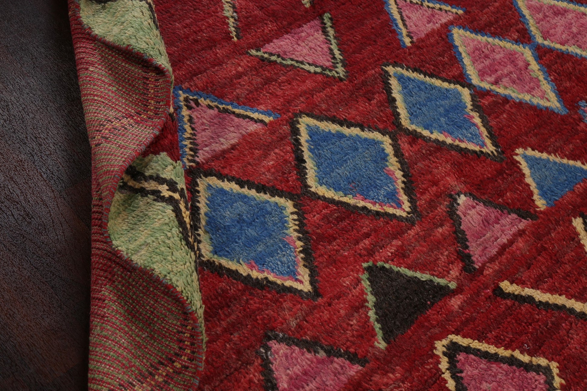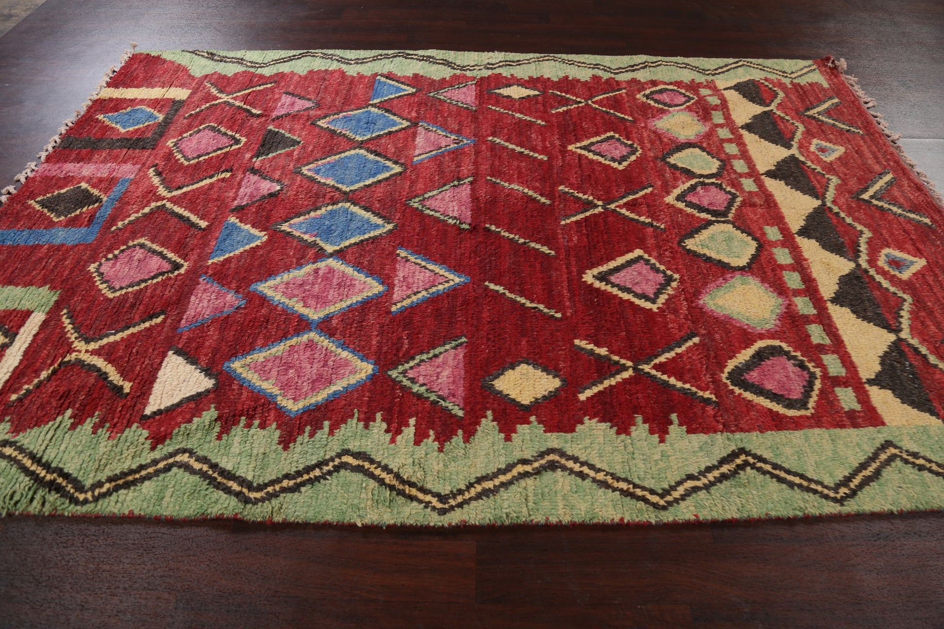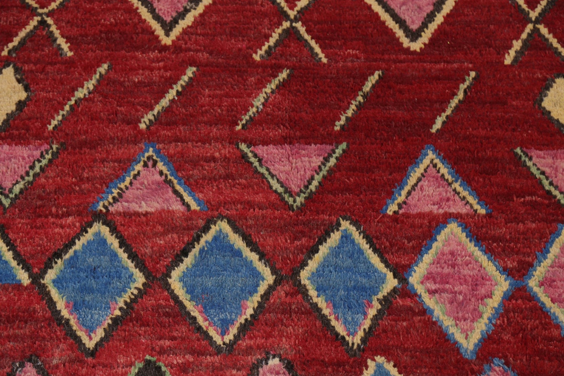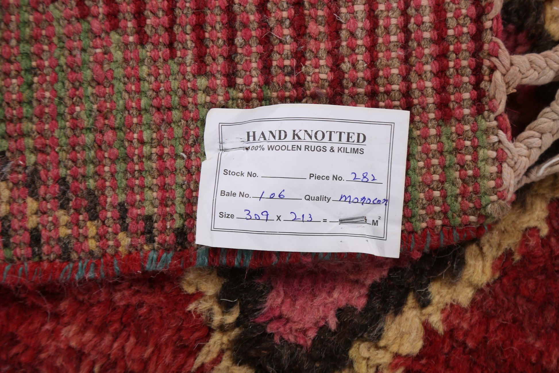 A Beautiful Genuine Morocco Moroccan rug is Hand Knotted by skillful weavers in Morocco with 100% Wool Material. This rug is in New, First Quality condition. dimensions are 10' 2'' X 6' 11'' in foot and 310 X 211 in centimeter. the primary color is Red.