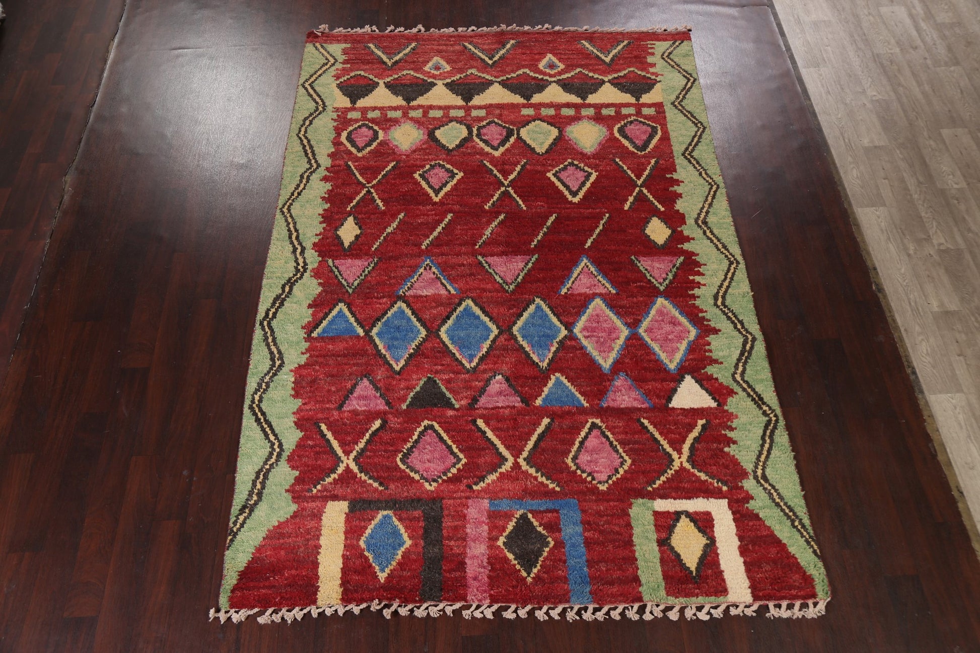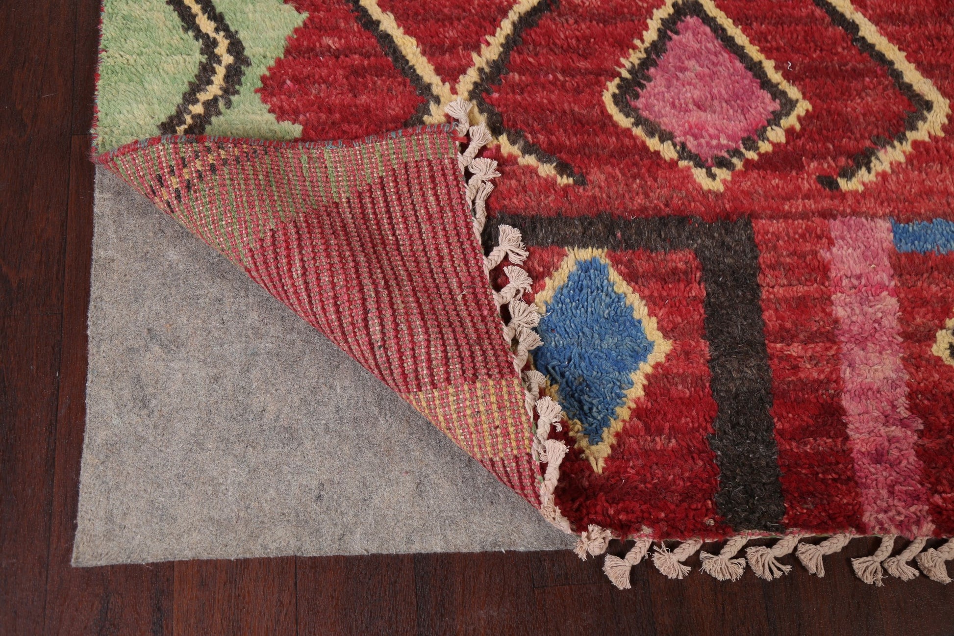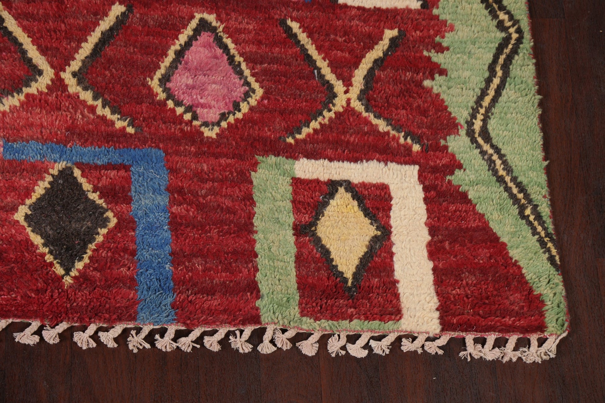A Beautiful Genuine Morocco Moroccan rug is Hand Knotted by skillful weavers in Morocco with 100% Wool Material. This rug is in New, First Quality condition. dimensions are 10' 2'' X 6' 11'' in foot and 310 X 211 in centimeter. the primary color is Red.