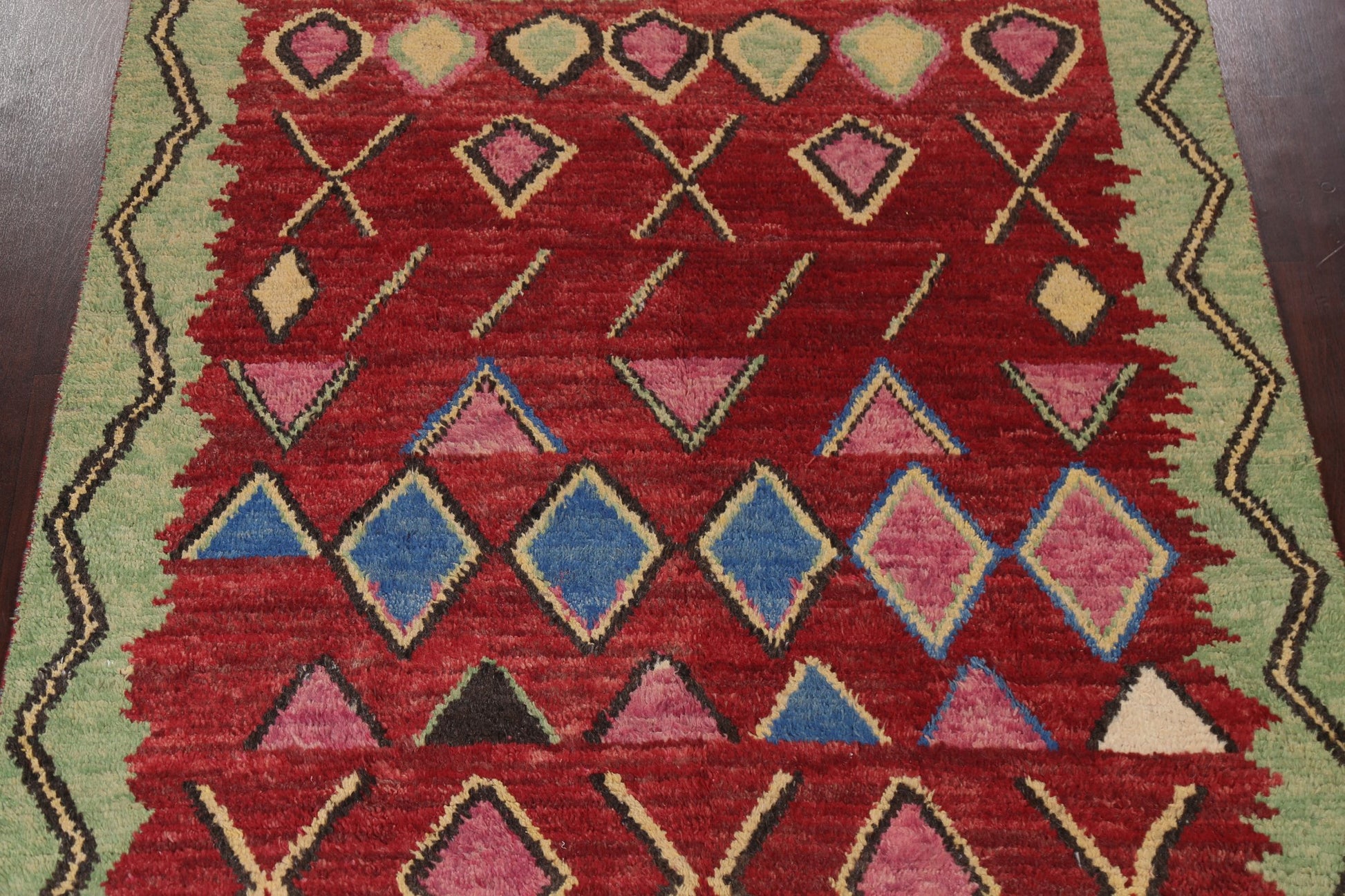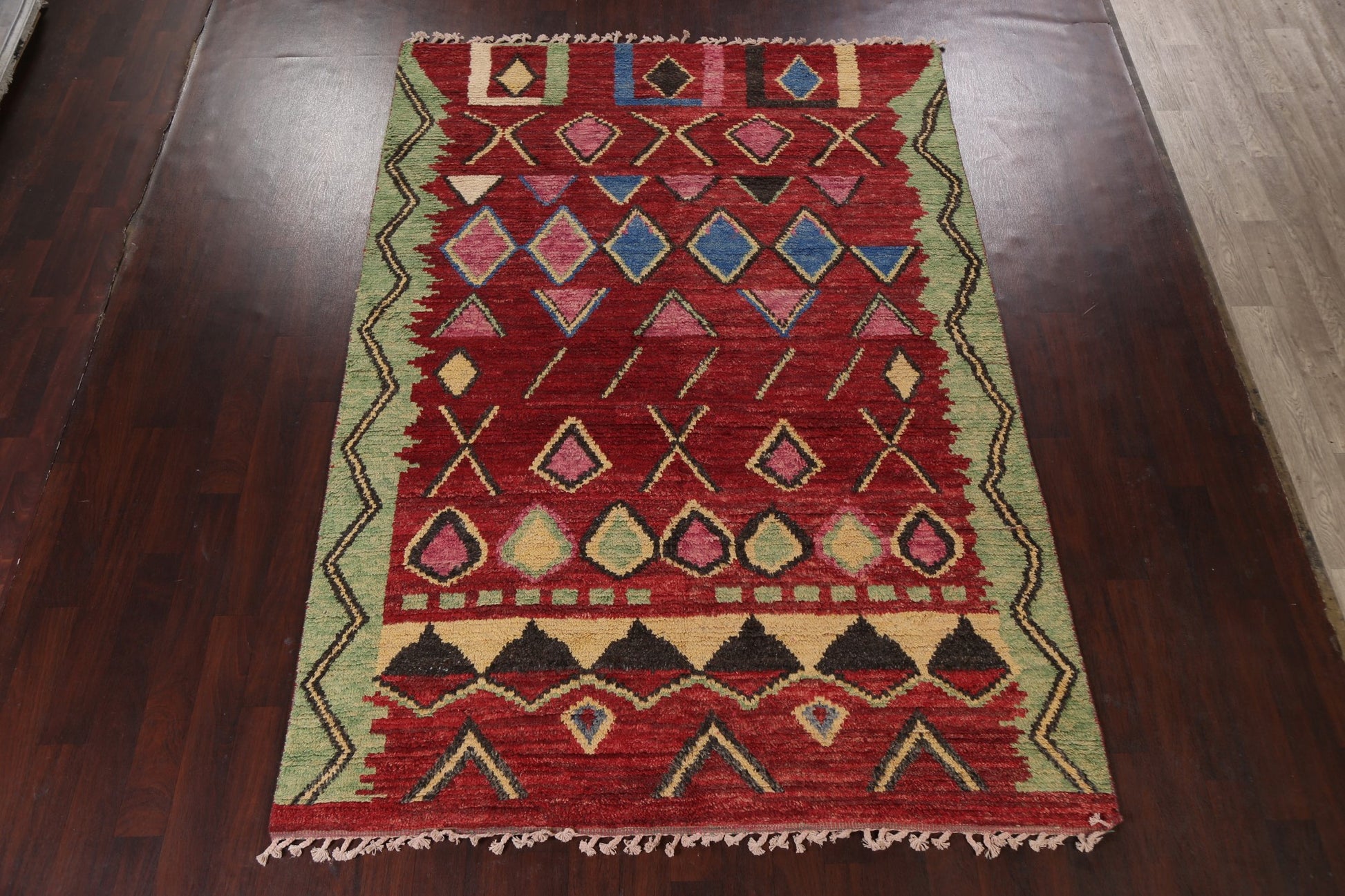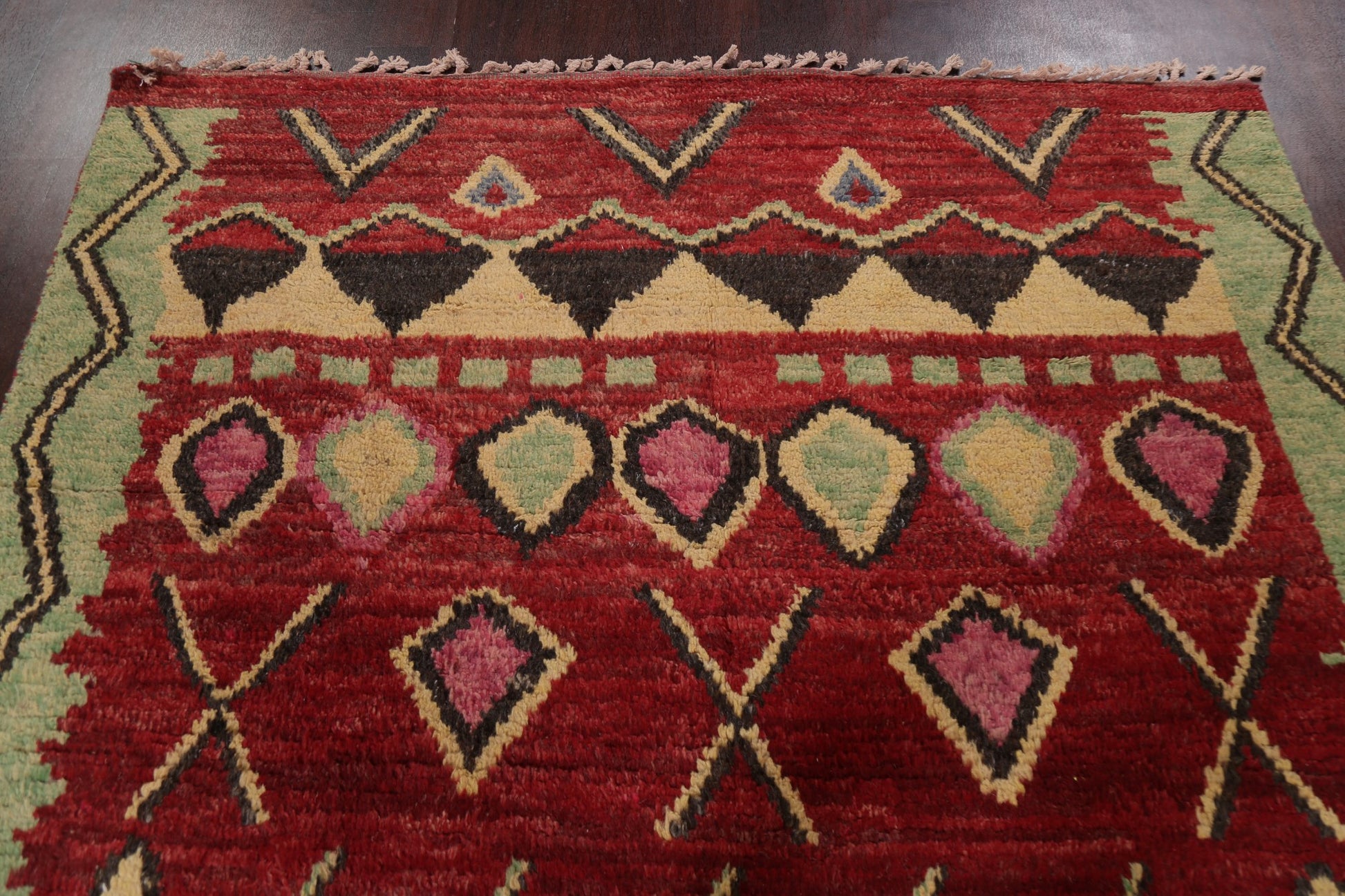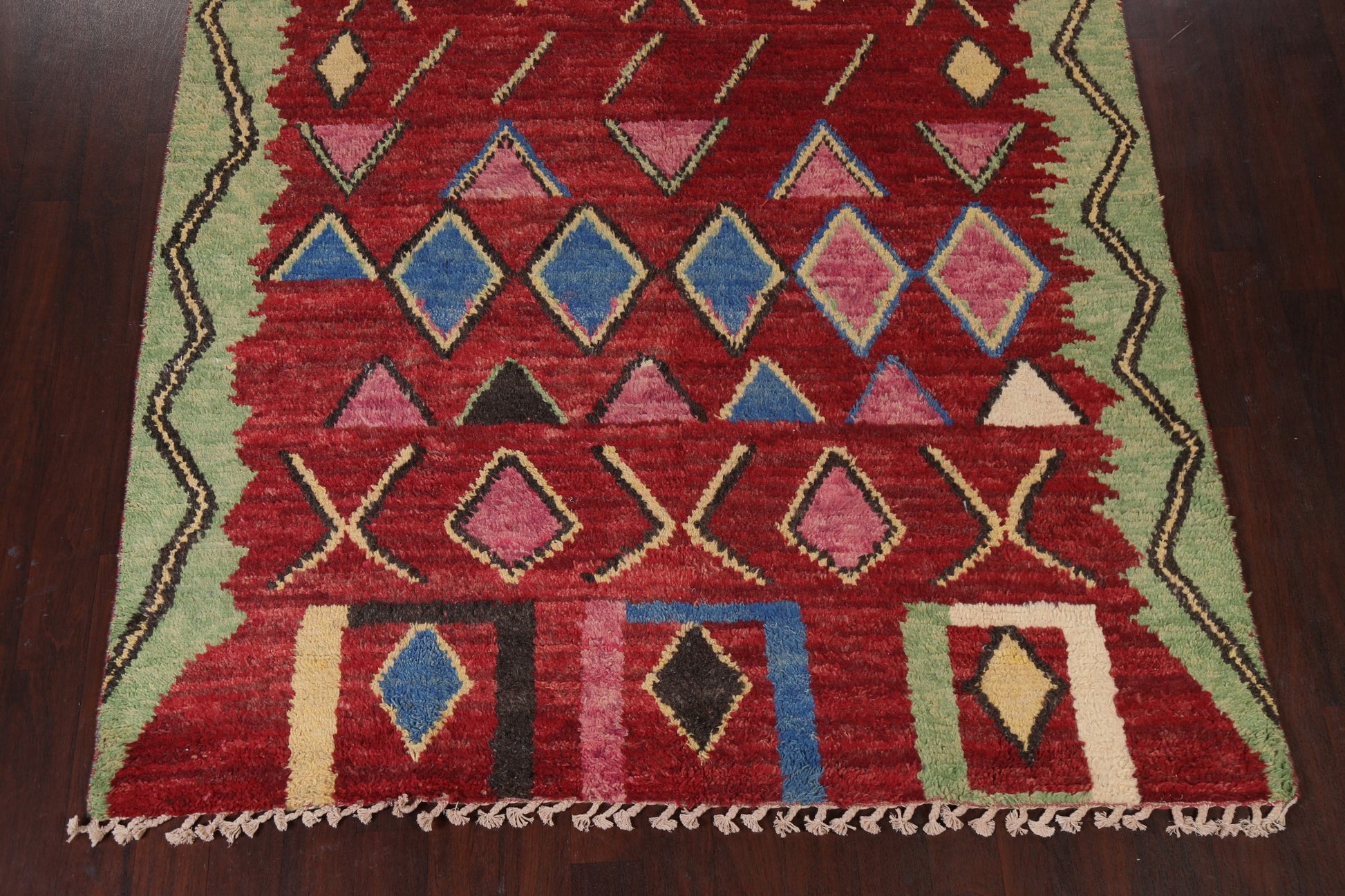 A Beautiful Genuine Morocco Moroccan rug is Hand Knotted by skillful weavers in Morocco with 100% Wool Material. This rug is in New, First Quality condition. dimensions are 10' 2'' X 6' 11'' in foot and 310 X 211 in centimeter. the primary color is Red.