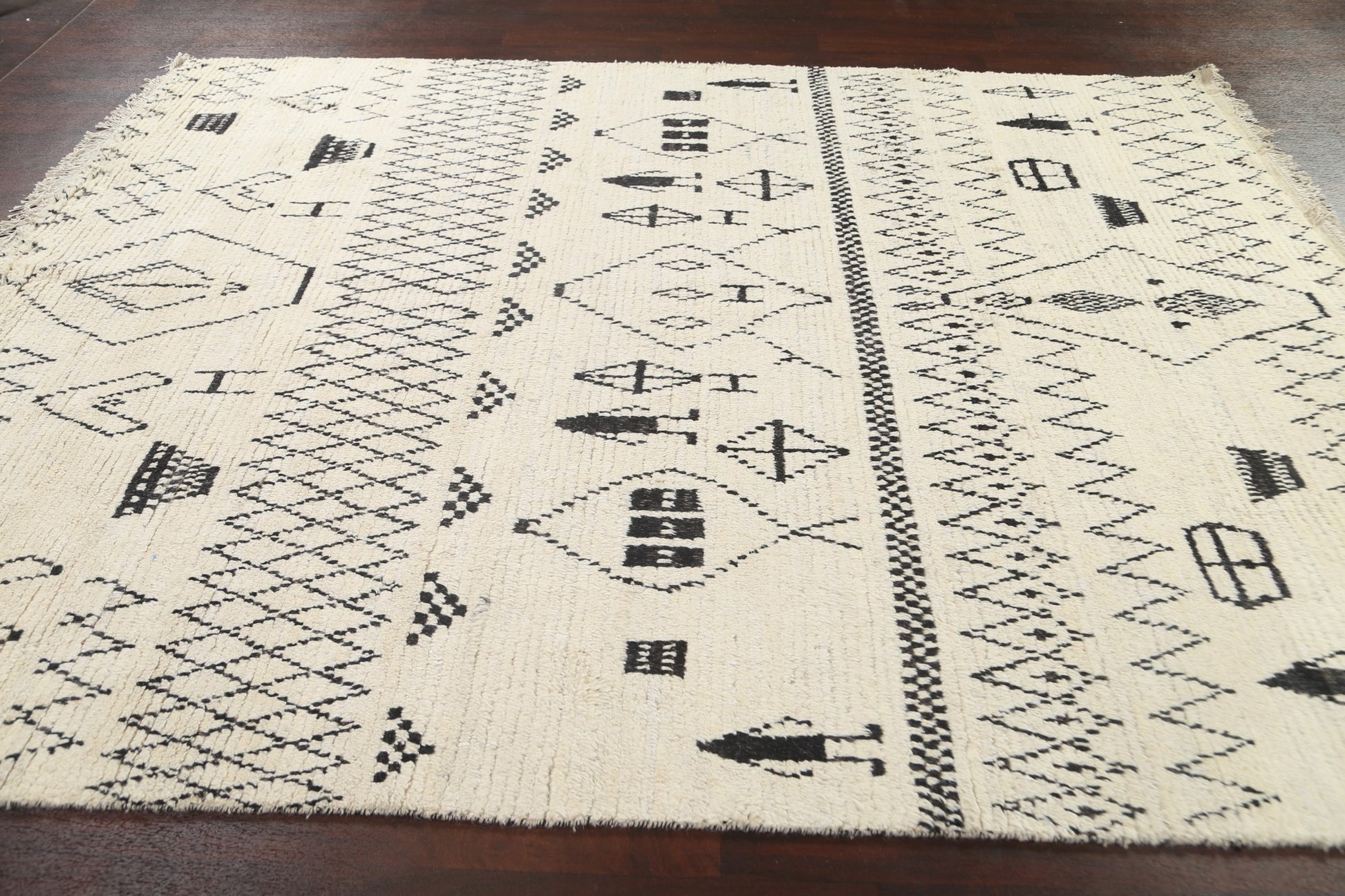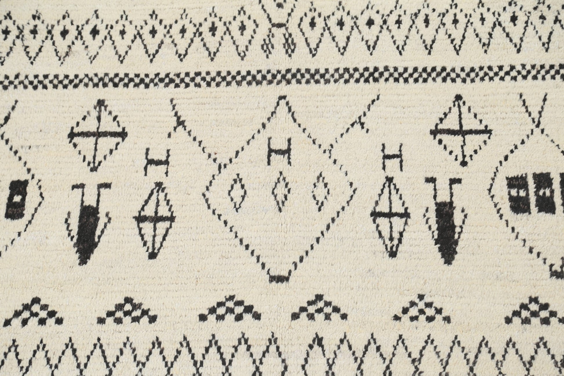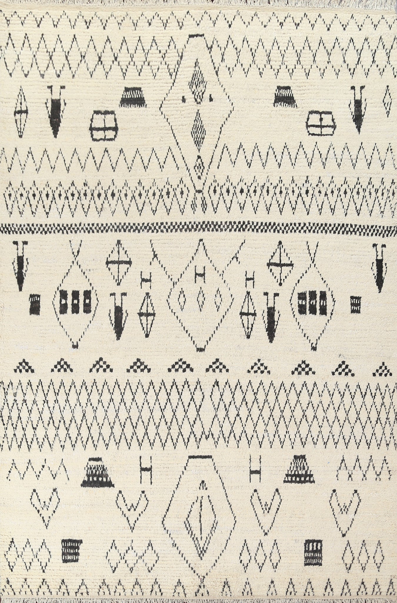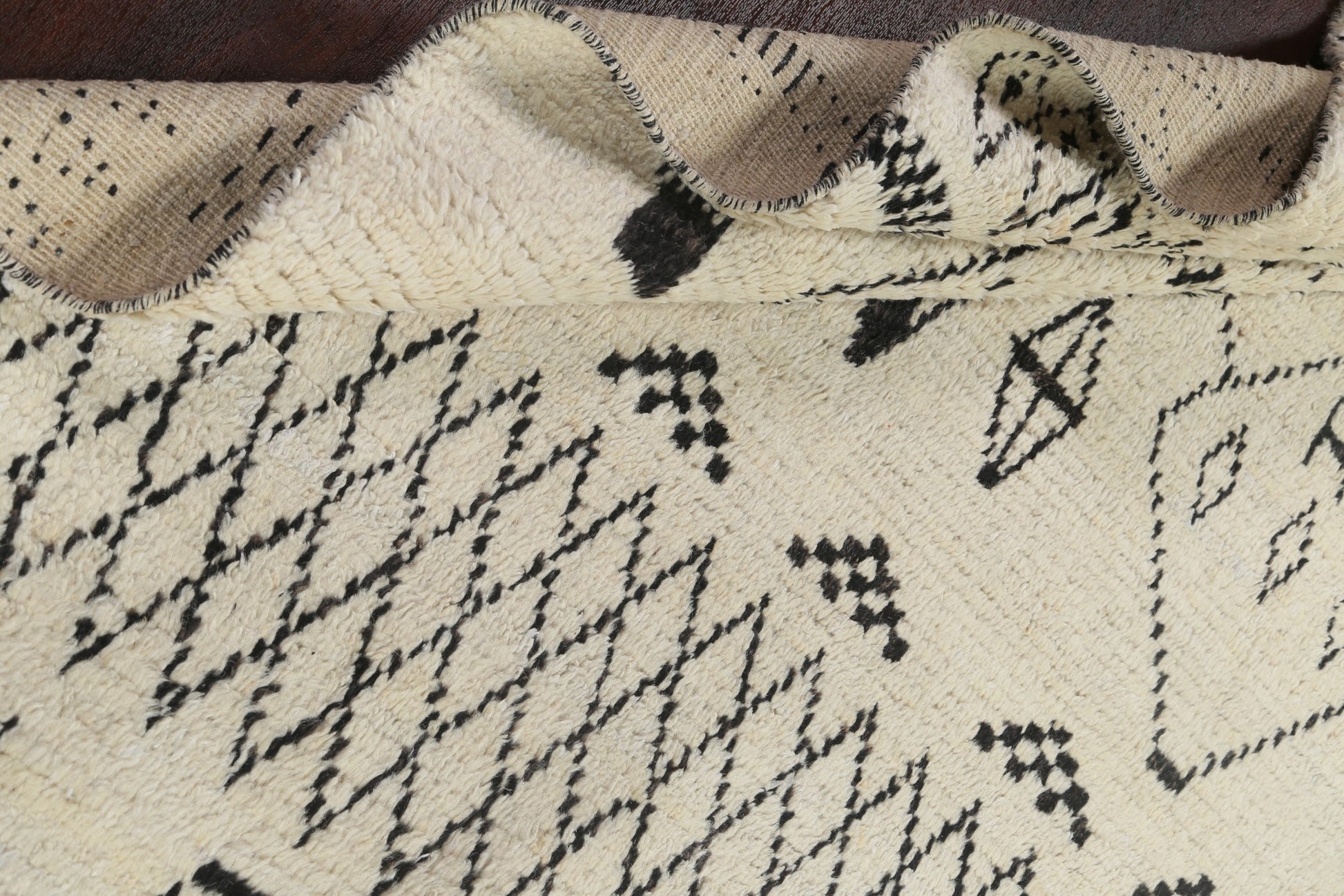 A Beautiful Genuine Morocco Moroccan rug is Hand Knotted by skillful weavers in Morocco with 100% Wool Material. This rug is in New, First Quality condition. dimensions are 10' 3'' X 7' 7'' in foot and 312 X 231 in centimeter. the primary color is Beige & Ivories.