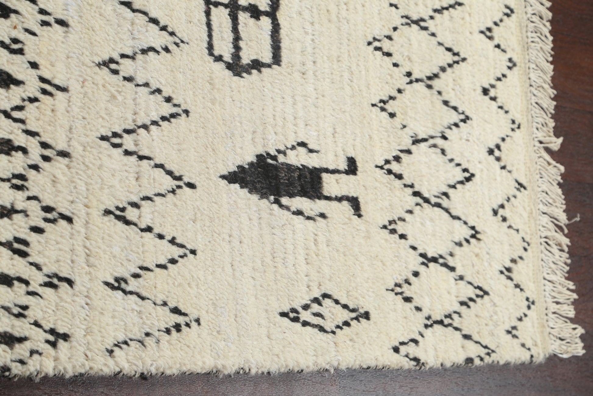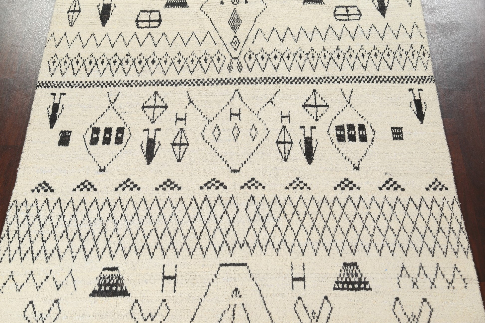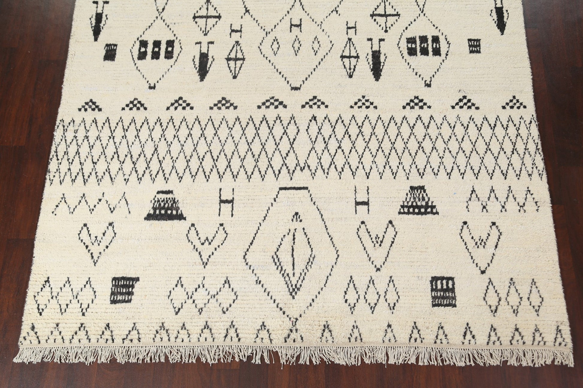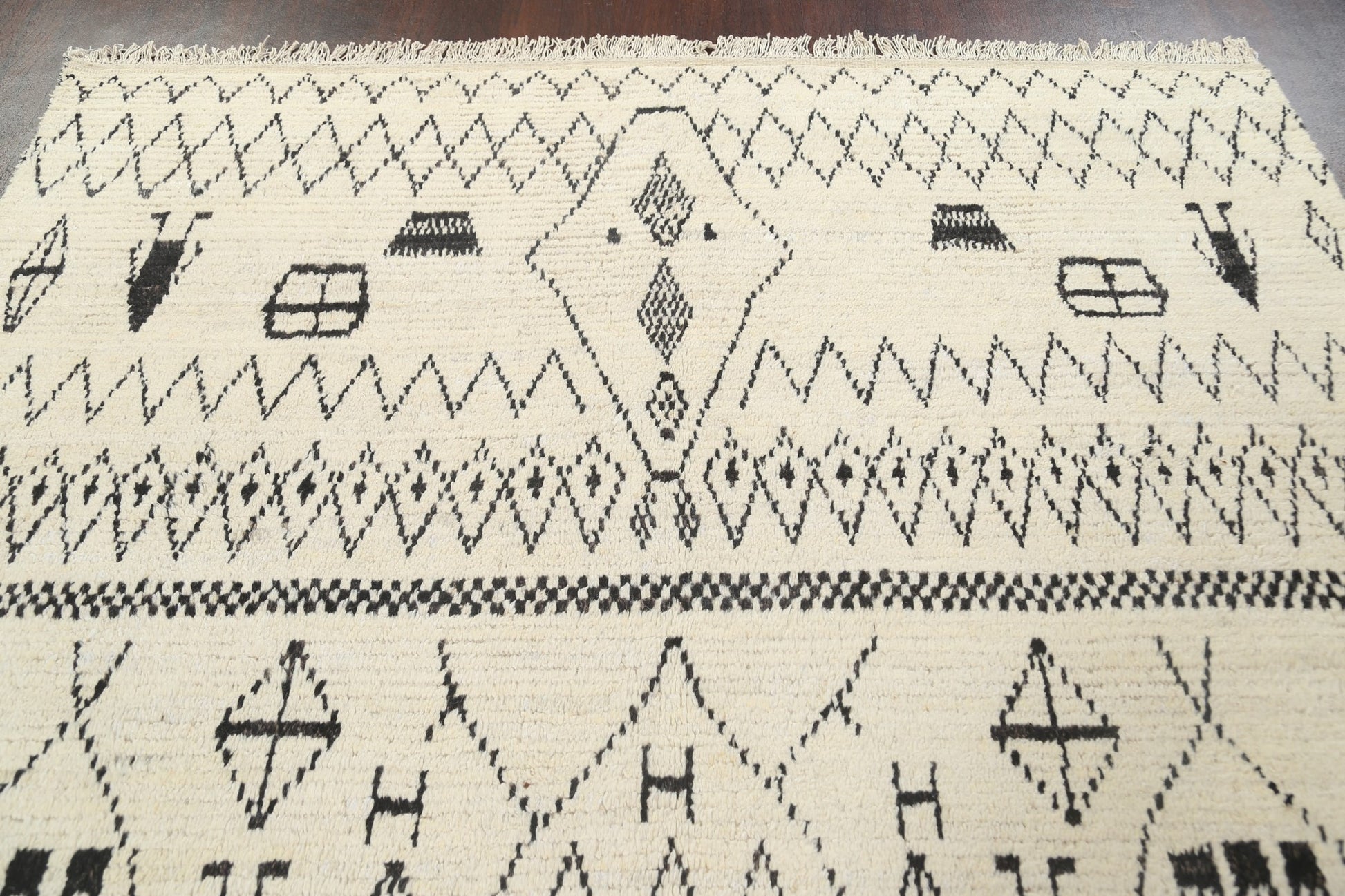 A Beautiful Genuine Morocco Moroccan rug is Hand Knotted by skillful weavers in Morocco with 100% Wool Material. This rug is in New, First Quality condition. dimensions are 10' 3'' X 7' 7'' in foot and 312 X 231 in centimeter. the primary color is Beige & Ivories.