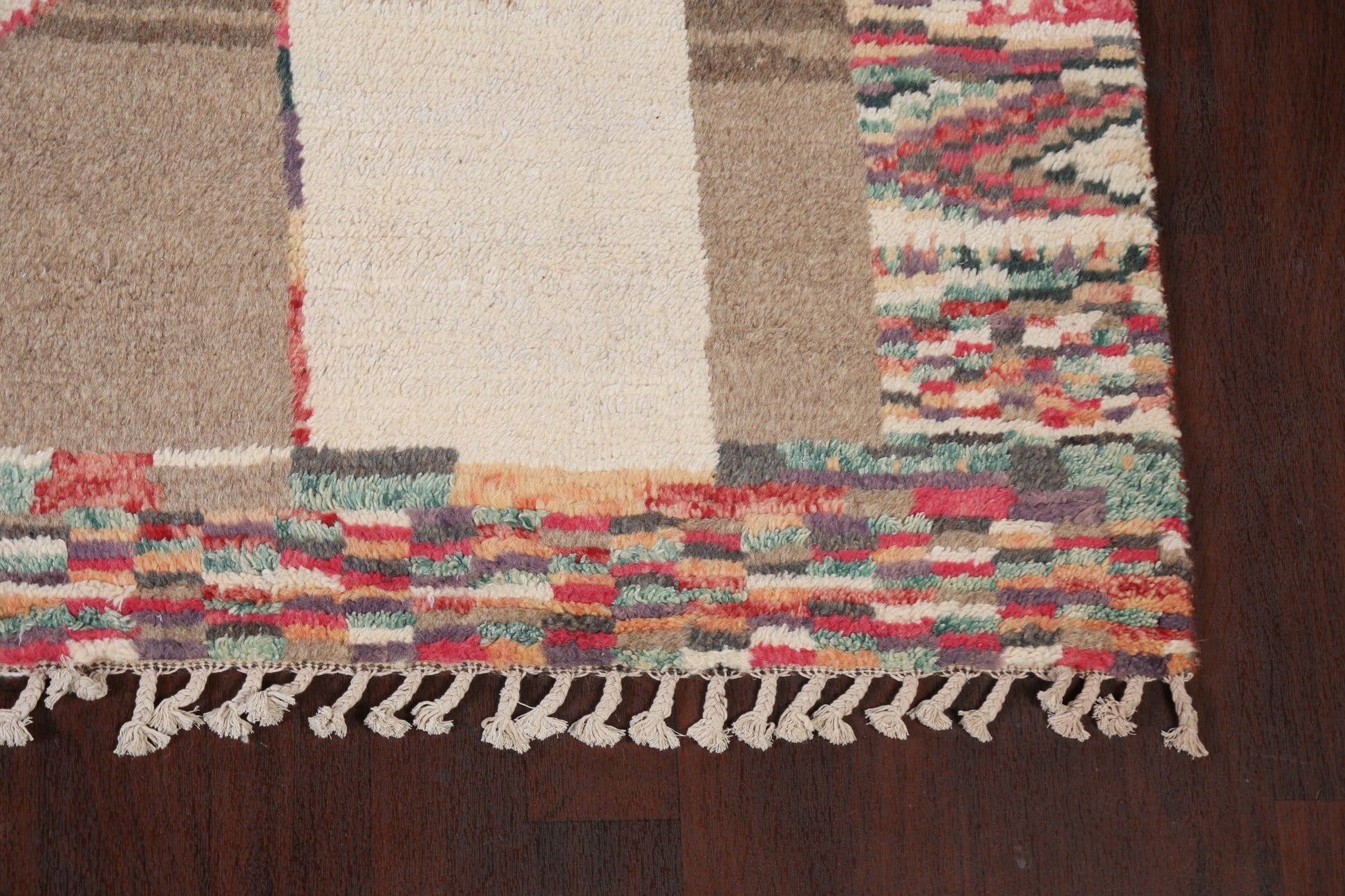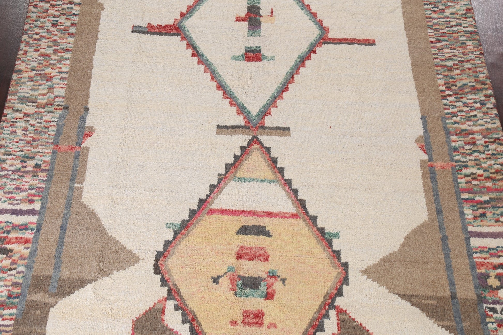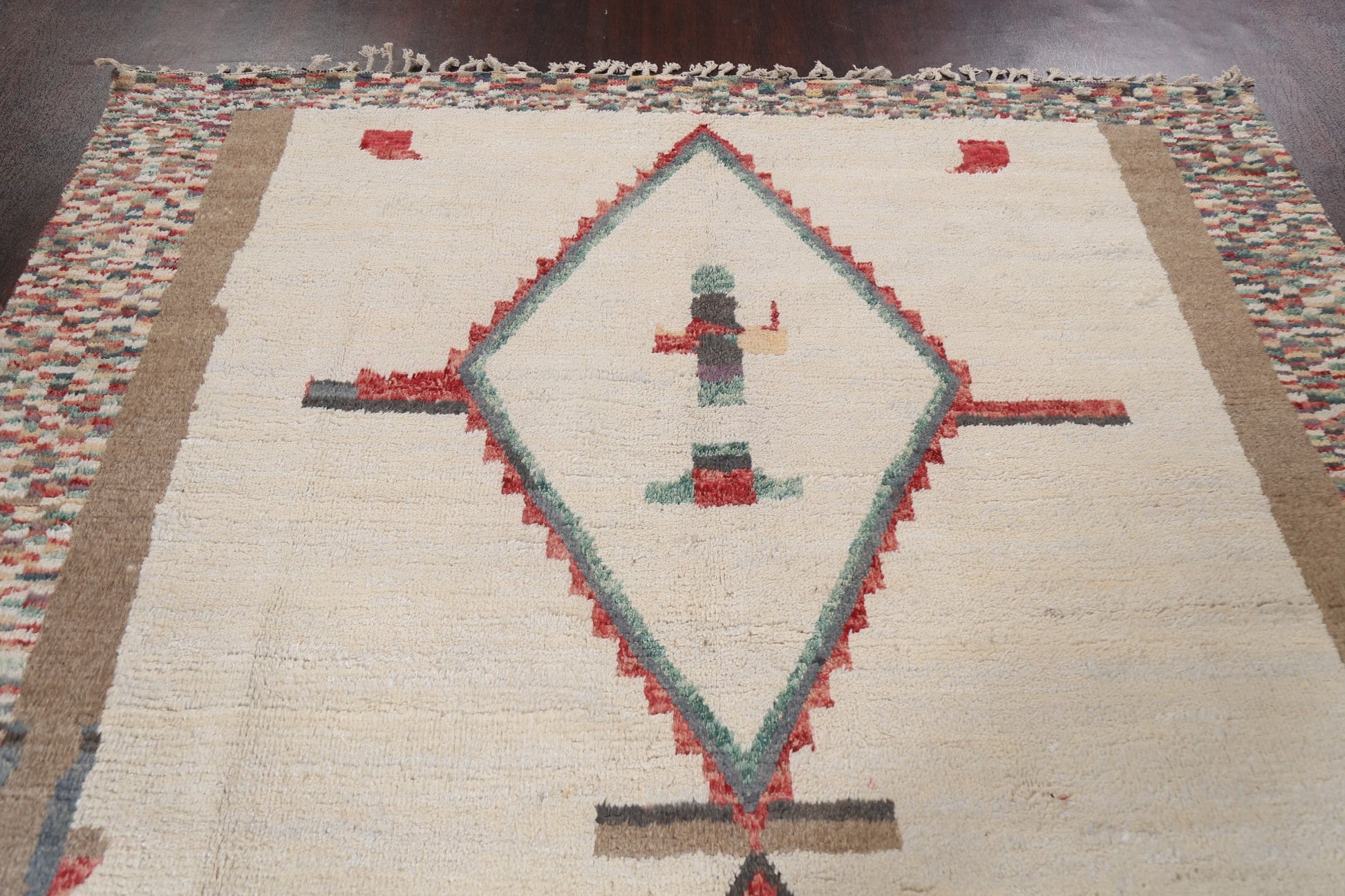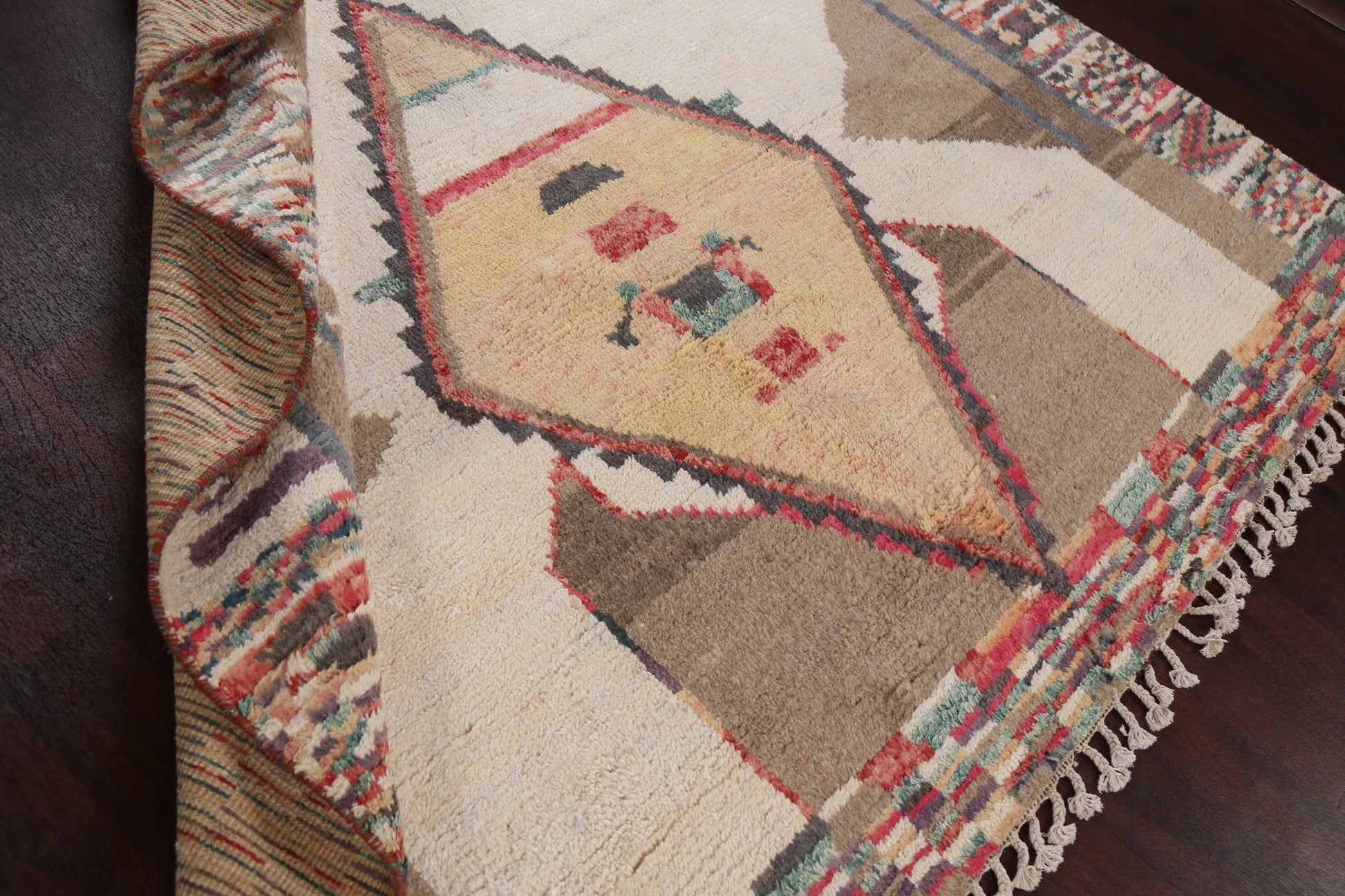A Beautiful Genuine Morocco Moroccan rug is Hand Knotted by skillful weavers in Morocco with 100% Wool Material. This rug is in New, First Quality condition. dimensions are 10' 4'' X 8' 1'' in foot and 315 X 246 in centimeter. the primary color is Beige & Ivories.