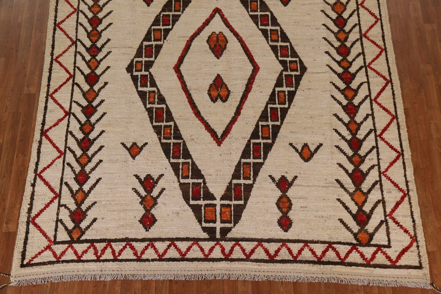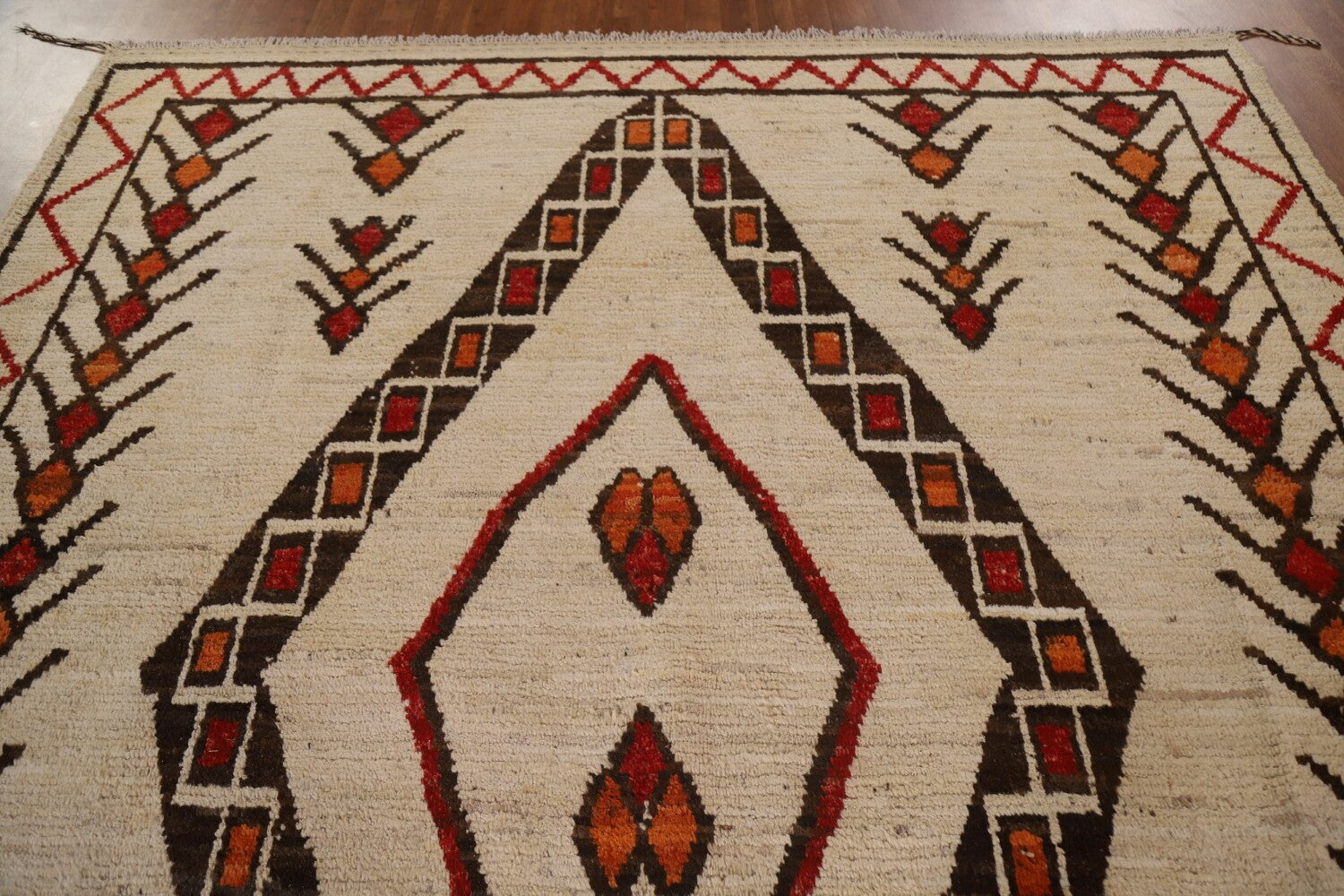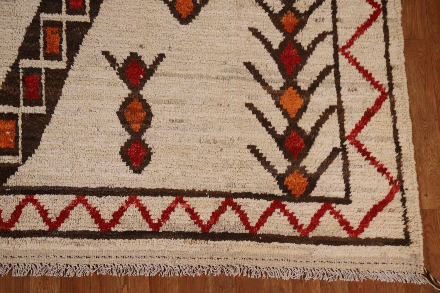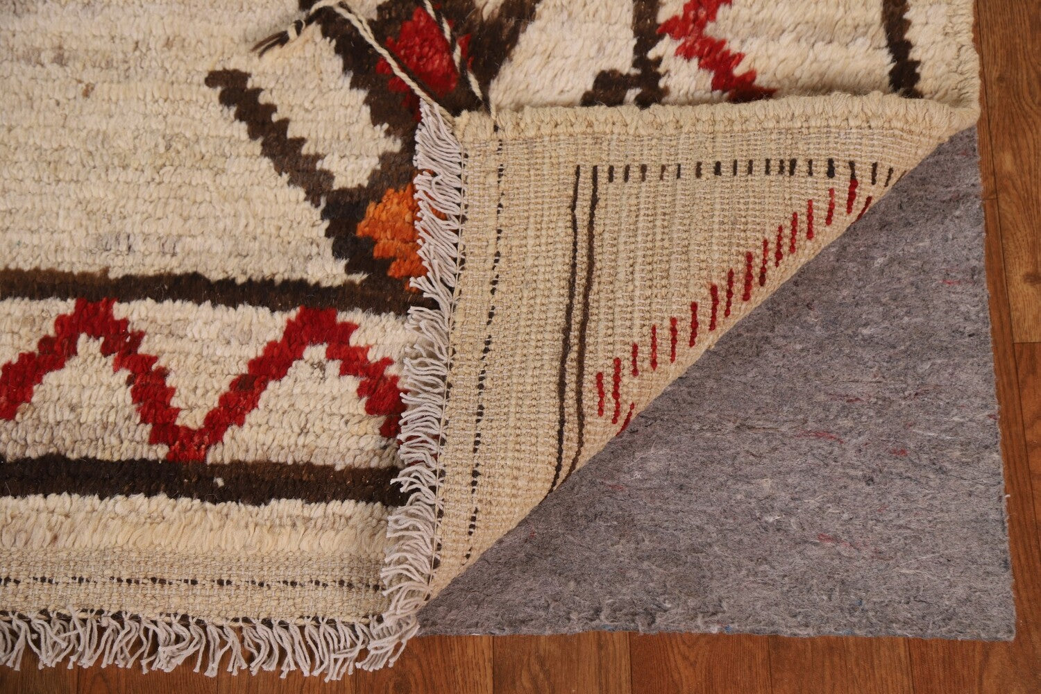 A Beautiful Genuine Pakistan Moroccan rug is Hand Knotted by skillful weavers in Pakistan with 100% Wool Material. This rug is in condition. dimensions are 9' 9'' X 8' 4'' in foot and 297 X 254 in centimeter. the primary color is Beige & Ivories.