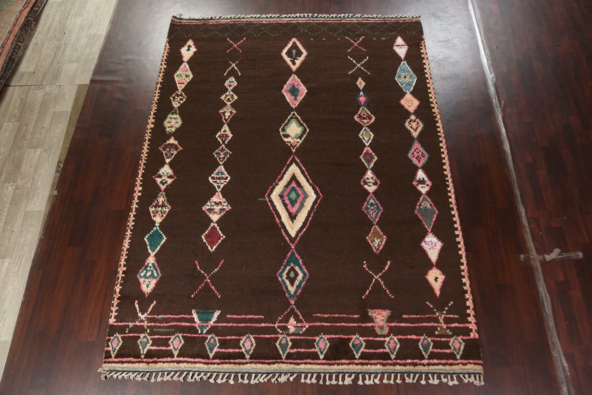 A Beautiful Genuine Morocco Moroccan rug is Hand Knotted by skillful weavers in Morocco with 100% Wool Material. This rug is in New, First Quality condition. dimensions are 11' 0'' X 8' 3'' in foot and 335 X 251 in centimeter. the primary color is Brown.