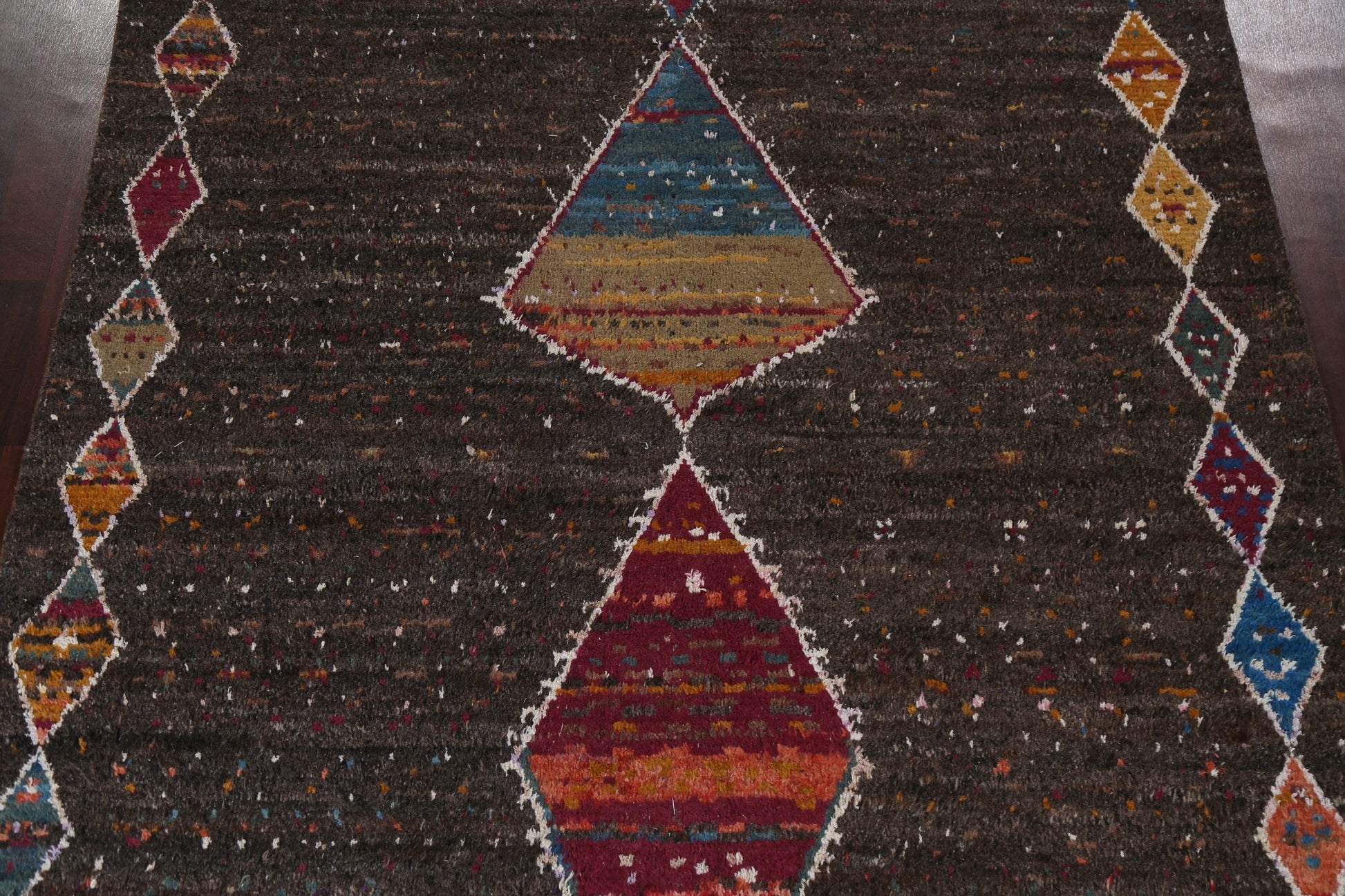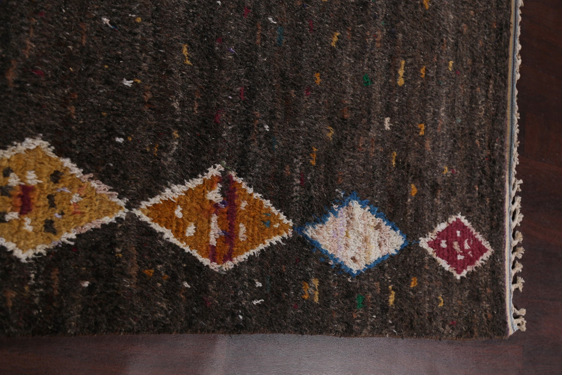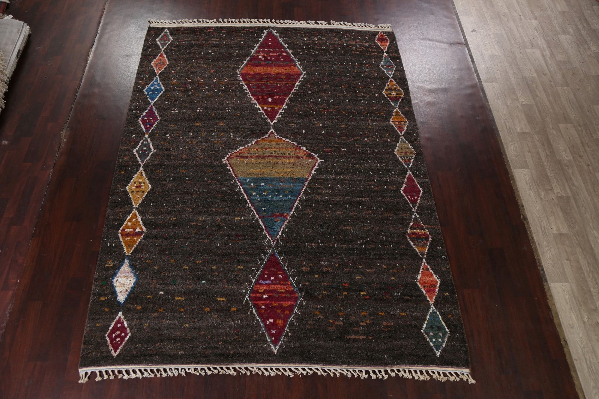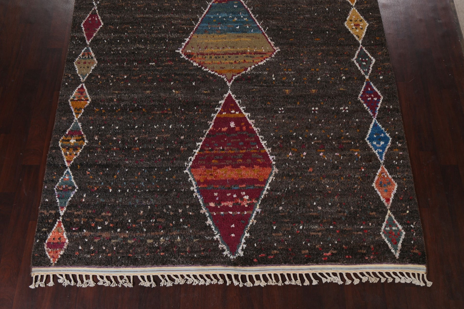 A Beautiful Genuine Morocco Moroccan rug is Hand Knotted by skillful weavers in Morocco with 100% Wool Material. This rug is in New, First Quality condition. dimensions are 10' 11'' X 8' 3'' in foot and 333 X 251 in centimeter. the primary color is Black.