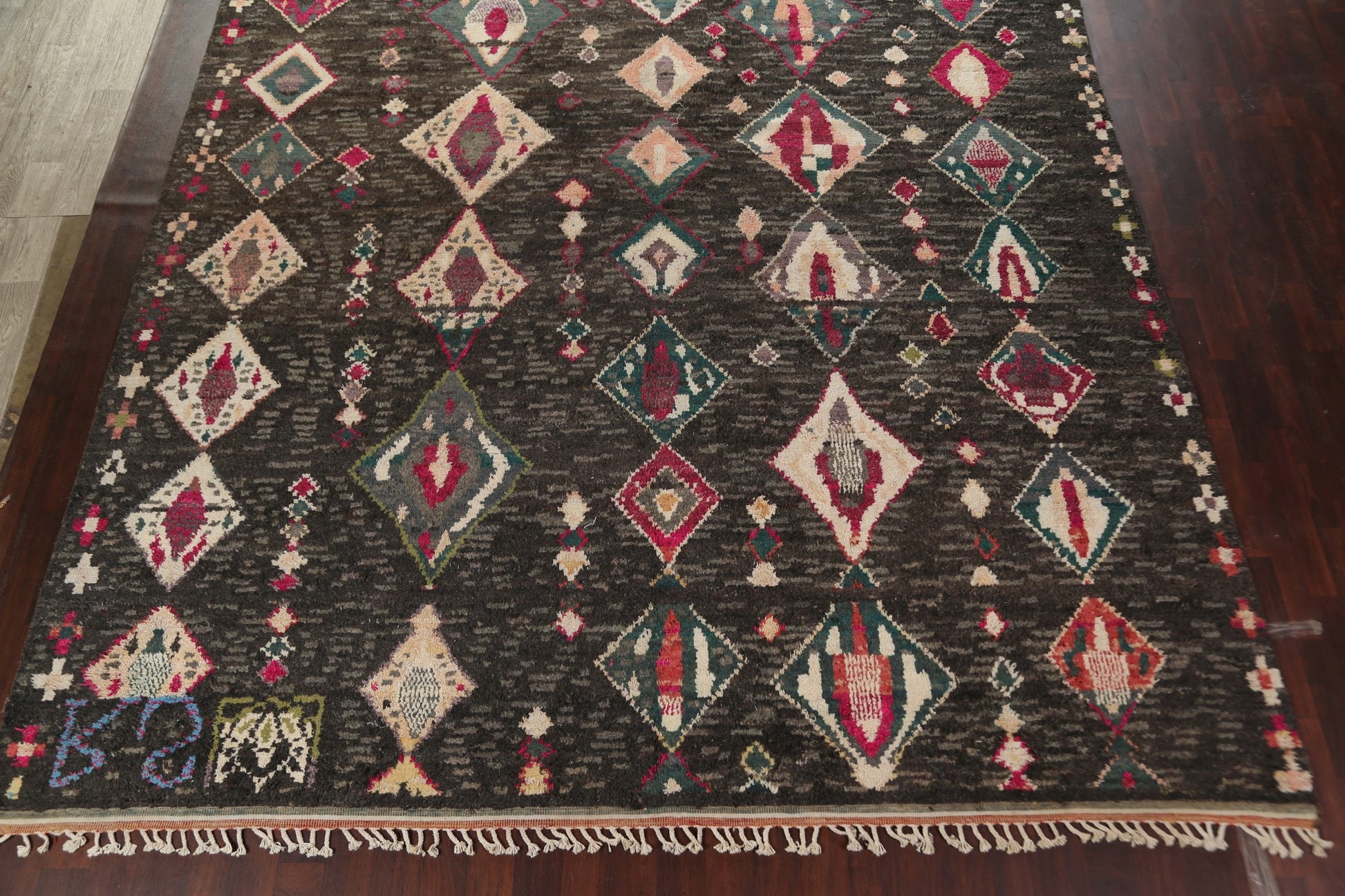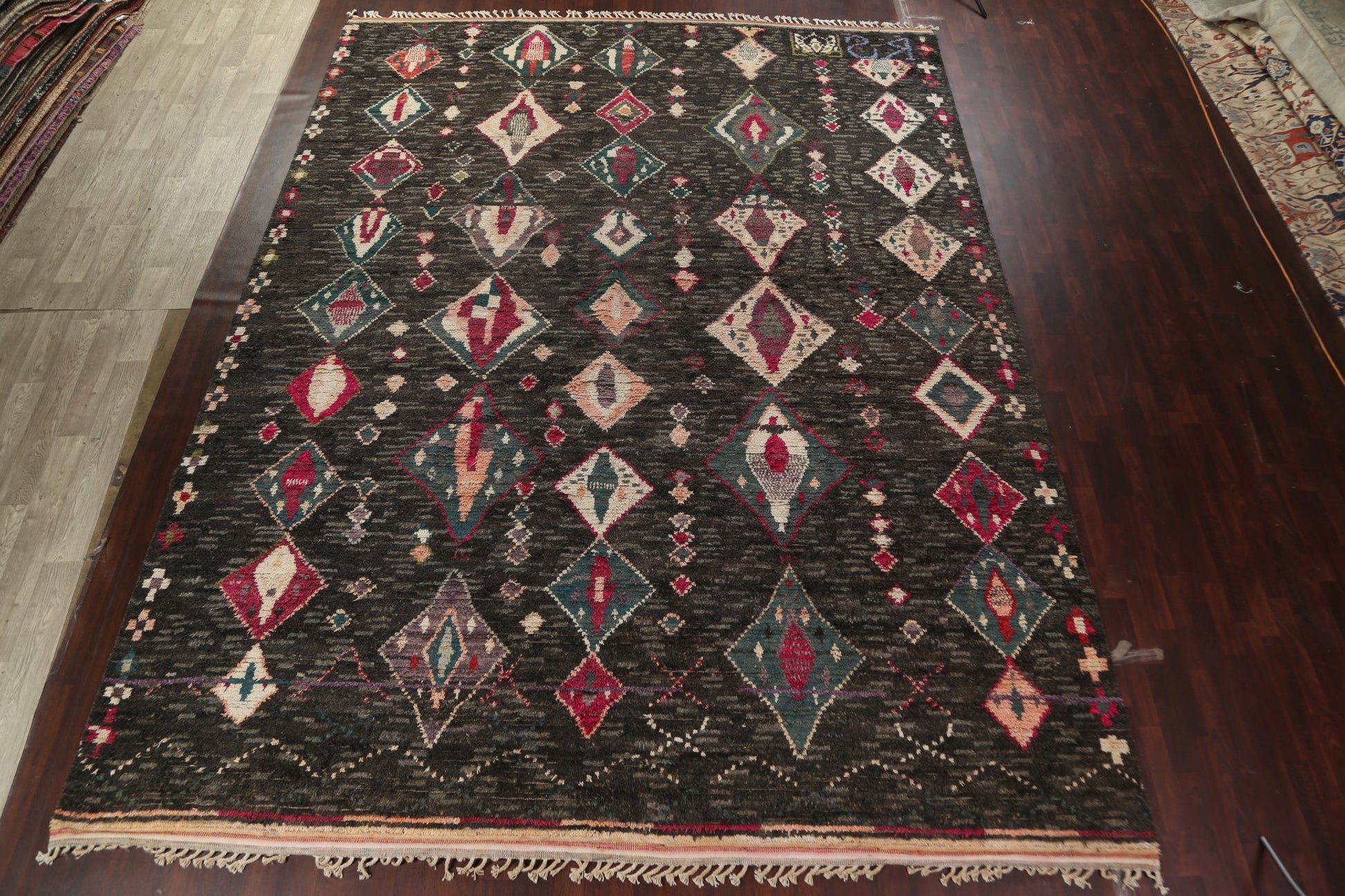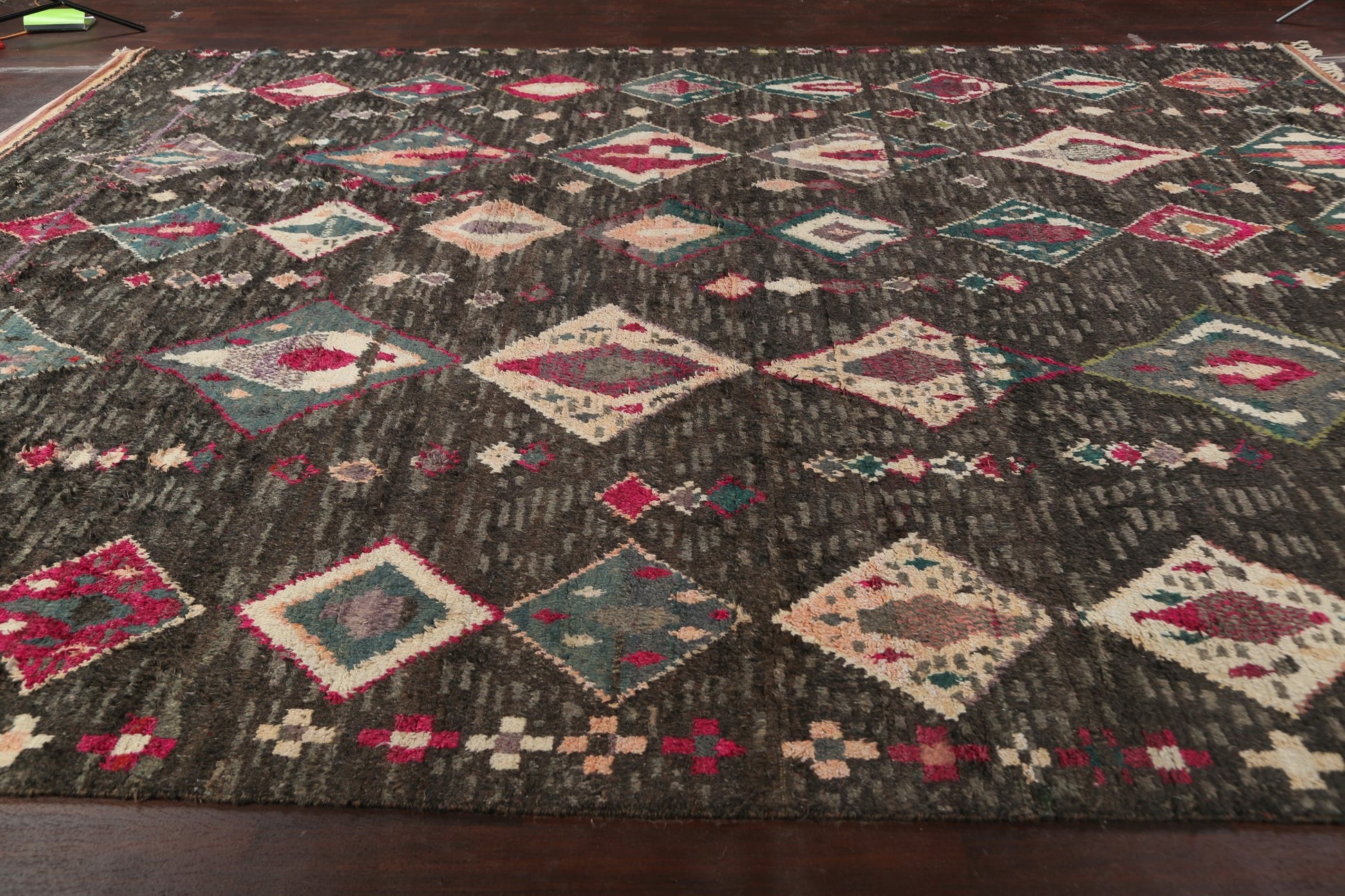 A Beautiful Genuine Morocco Moroccan rug is Hand Knotted by skillful weavers in Morocco with 100% Wool Material. This rug is in New, First Quality condition. dimensions are 15' 9'' X 11' 10'' in foot and 480 X 361 in centimeter. the primary color is Black.