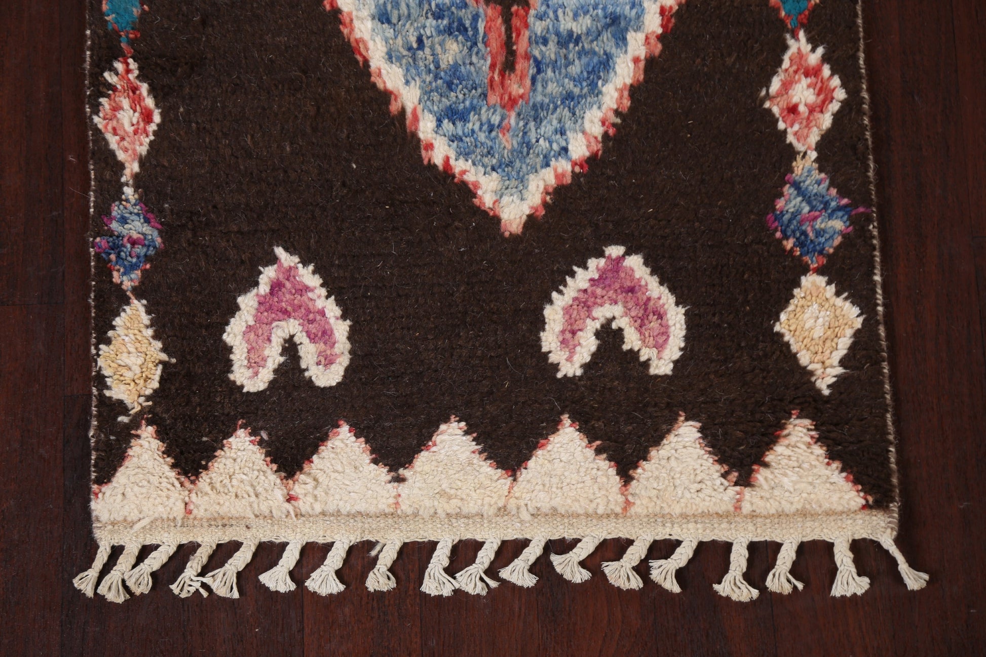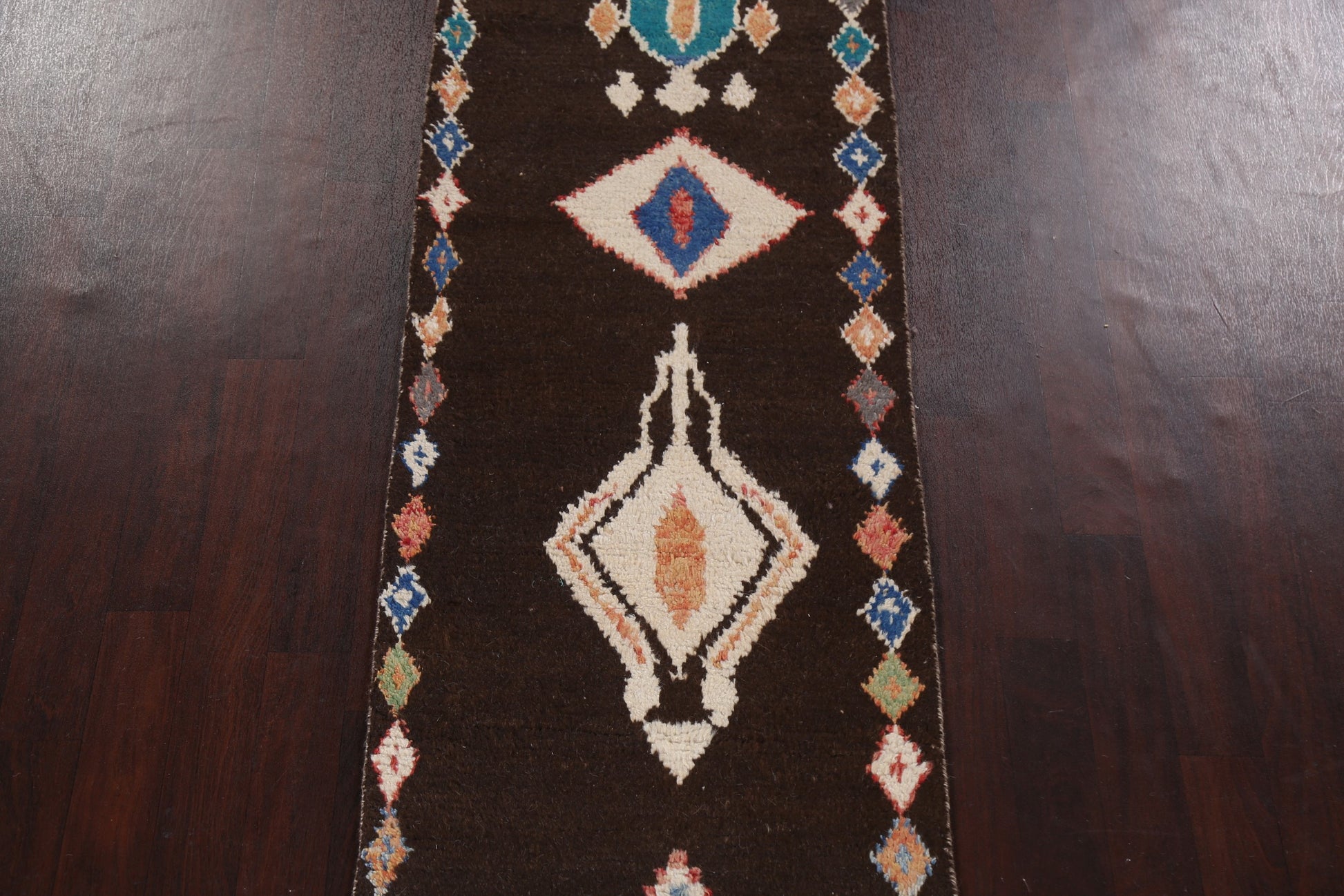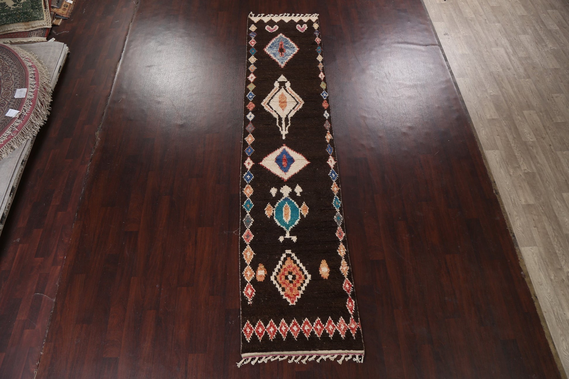 A Beautiful Genuine Morocco Moroccan rug is Hand Knotted by skillful weavers in Morocco with 100% Wool Material. This rug is in New, First Quality condition. dimensions are 12' 9'' X 2' 11'' in foot and 389 X 89 in centimeter. the primary color is Brown.