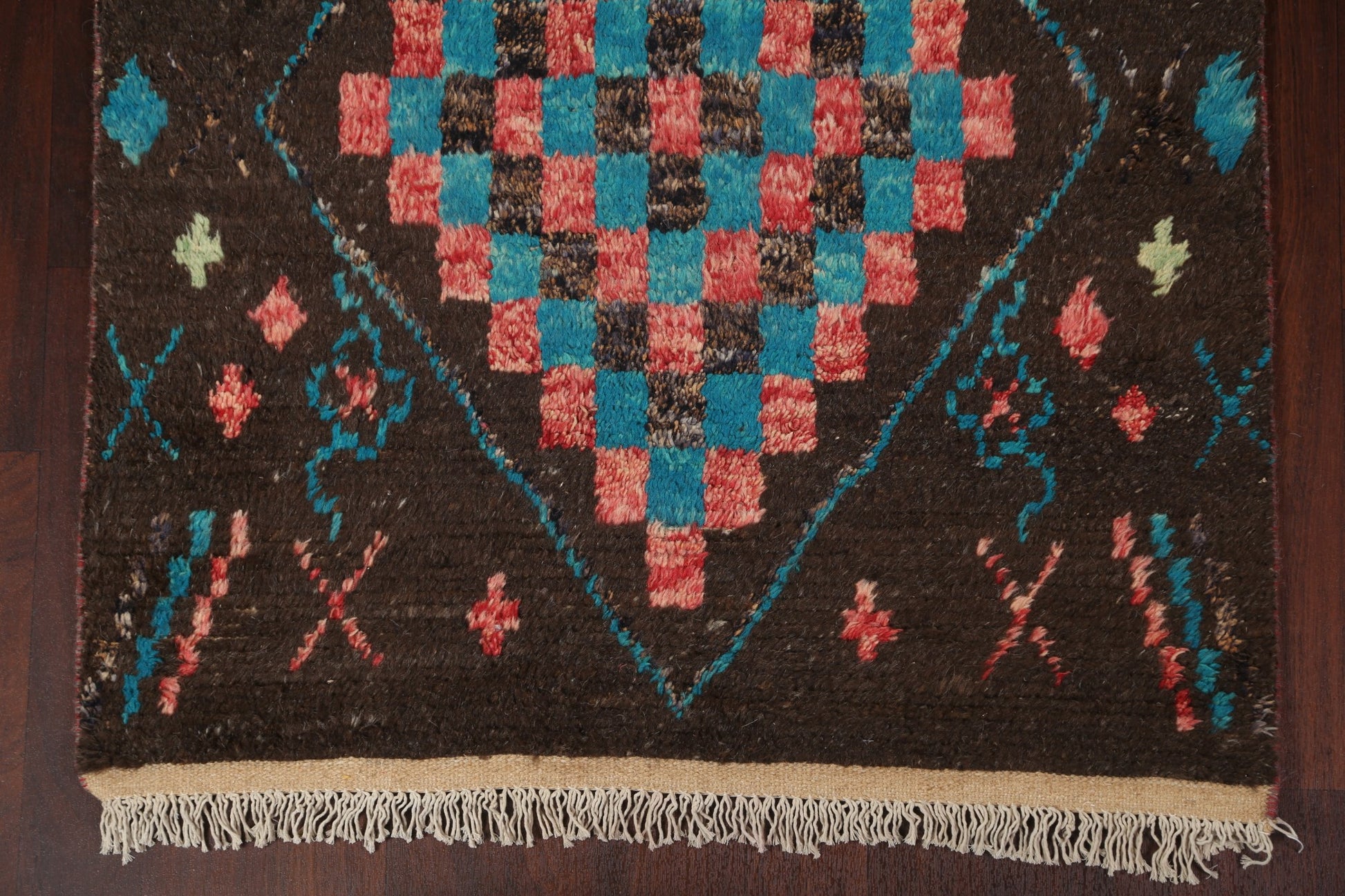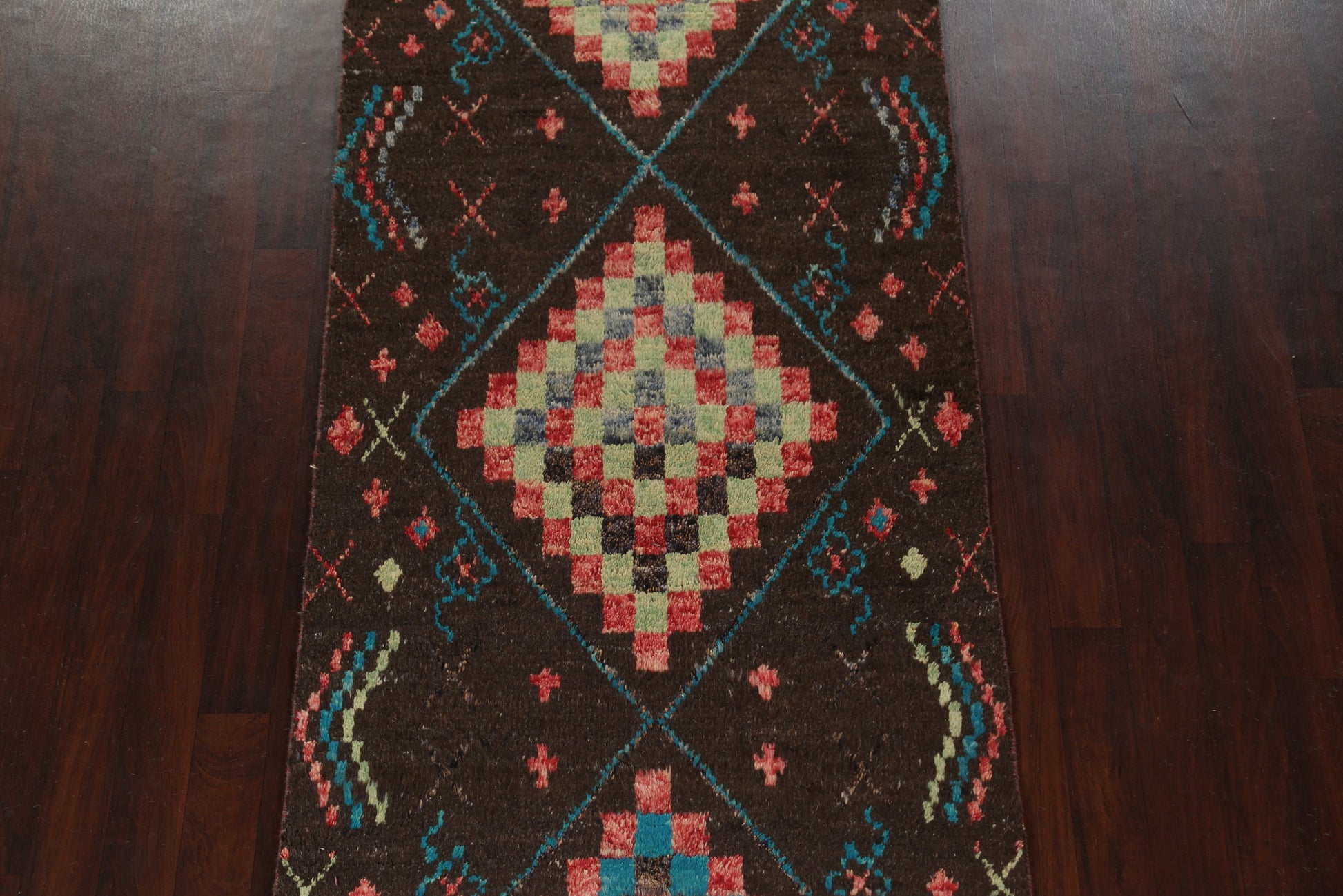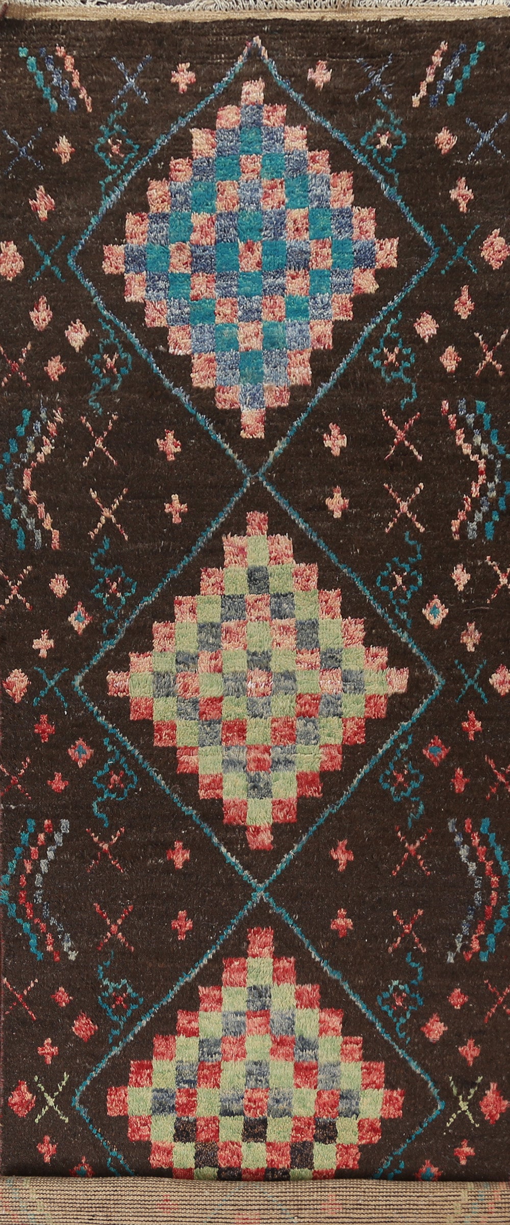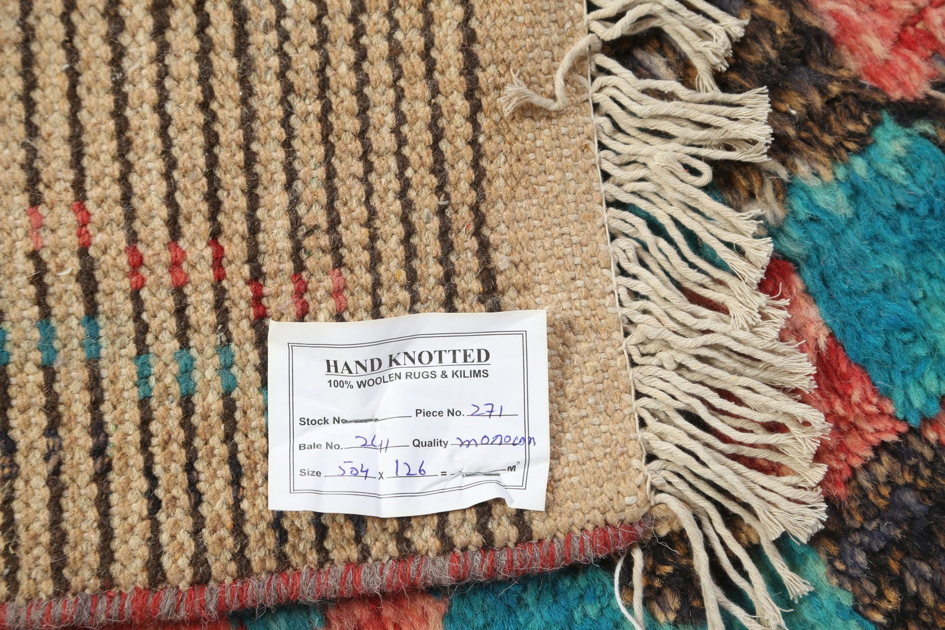 A Beautiful Genuine Morocco Moroccan rug is Hand Knotted by skillful weavers in Morocco with 100% Wool Material. This rug is in New, First Quality condition. dimensions are 16' 8'' X 4' 1'' in foot and 508 X 124 in centimeter. the primary color is Brown.