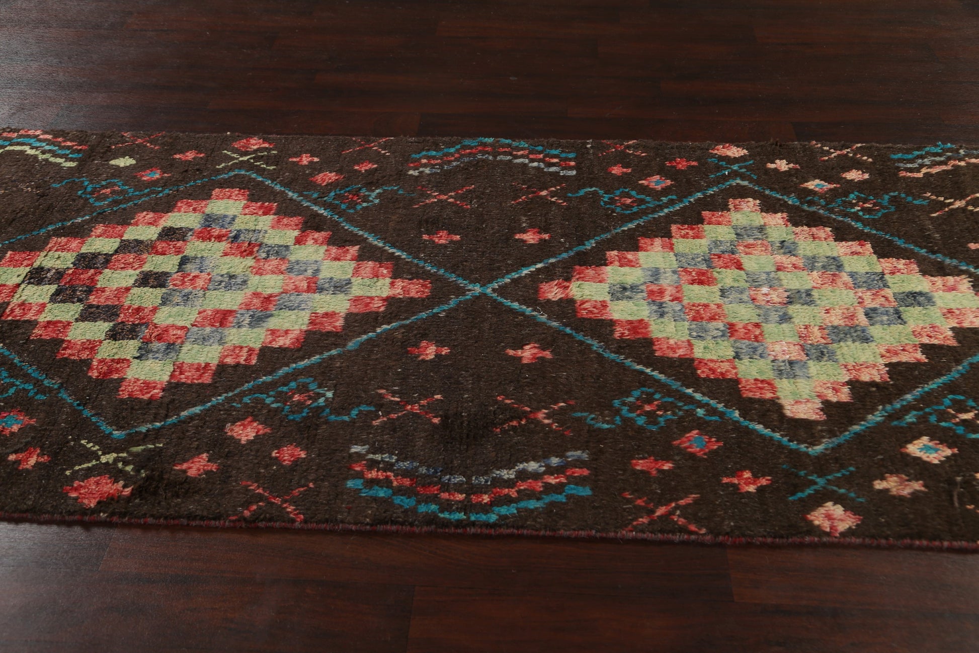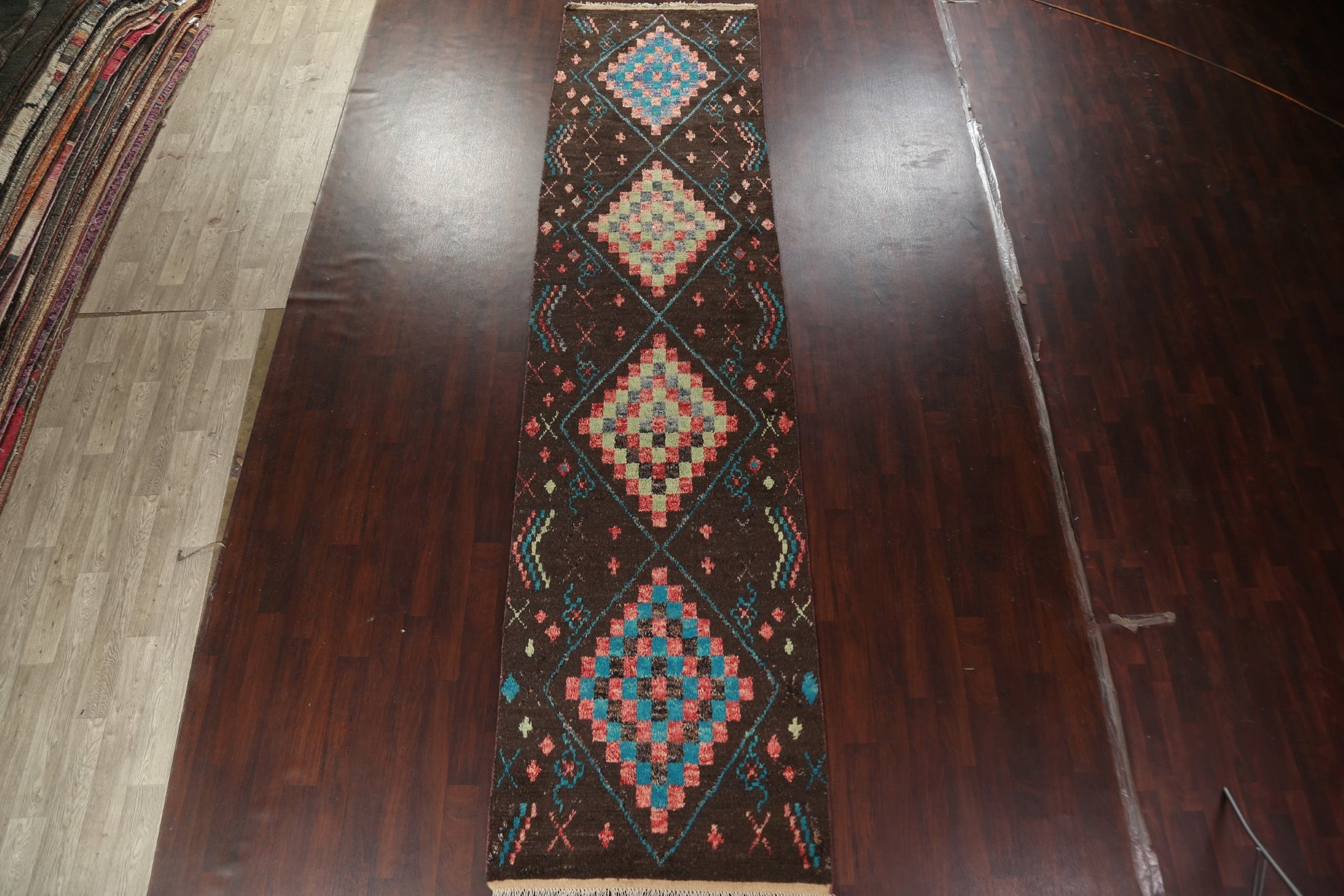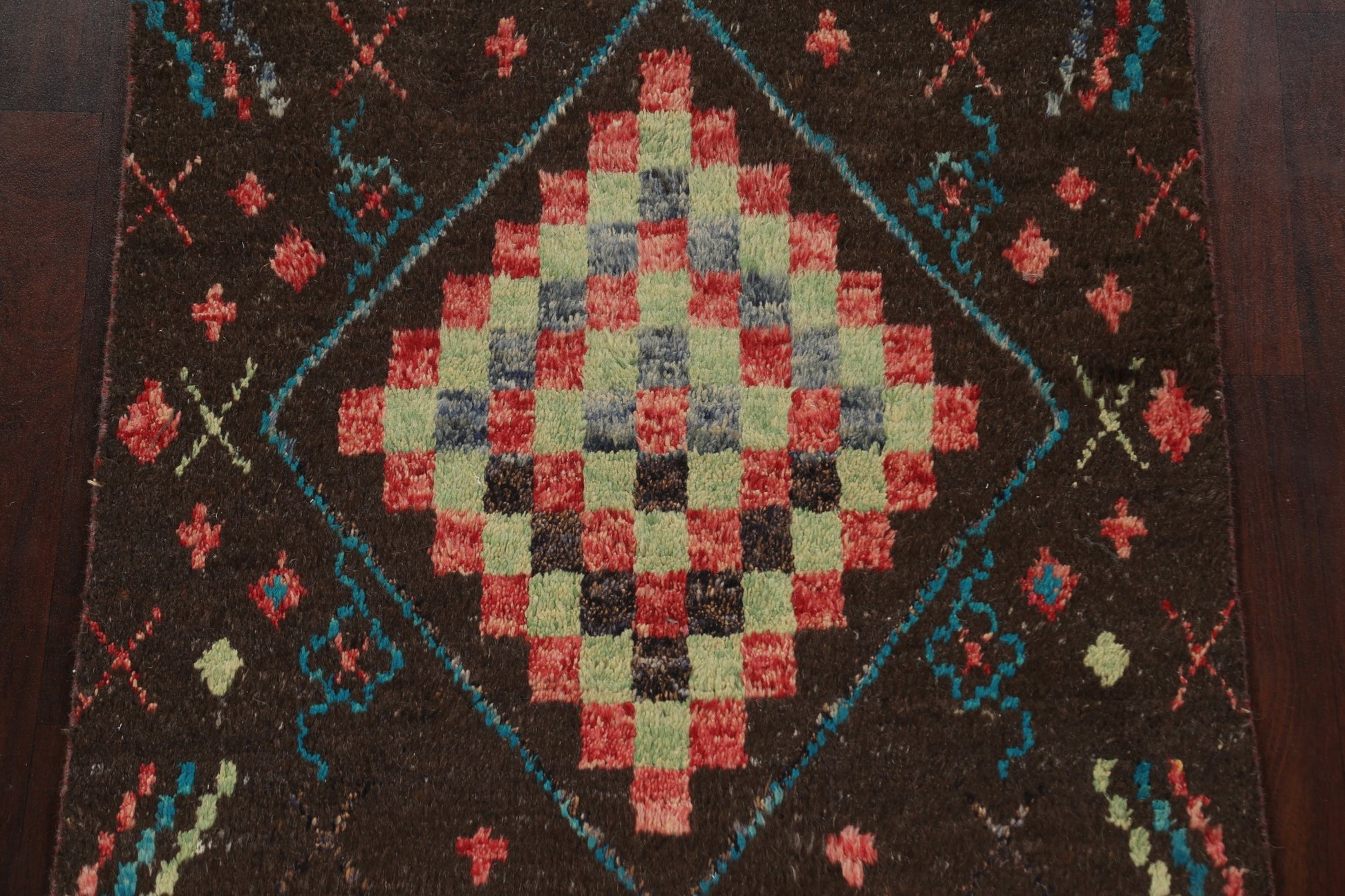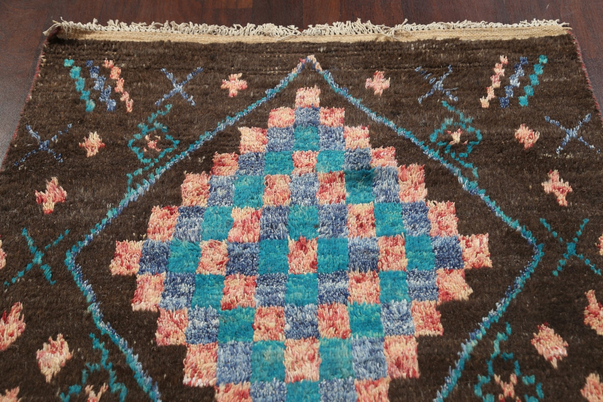 A Beautiful Genuine Morocco Moroccan rug is Hand Knotted by skillful weavers in Morocco with 100% Wool Material. This rug is in New, First Quality condition. dimensions are 16' 8'' X 4' 1'' in foot and 508 X 124 in centimeter. the primary color is Brown.