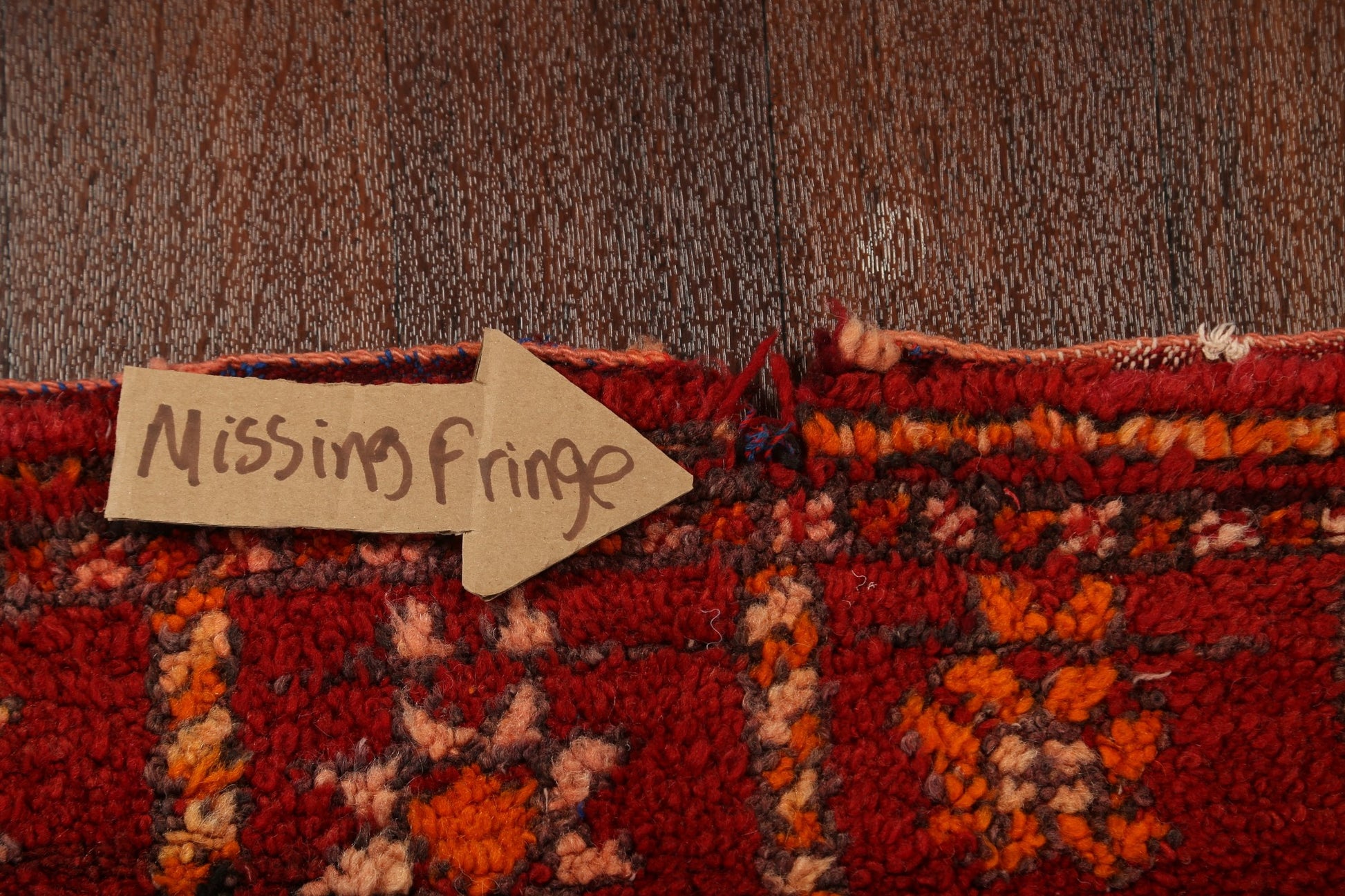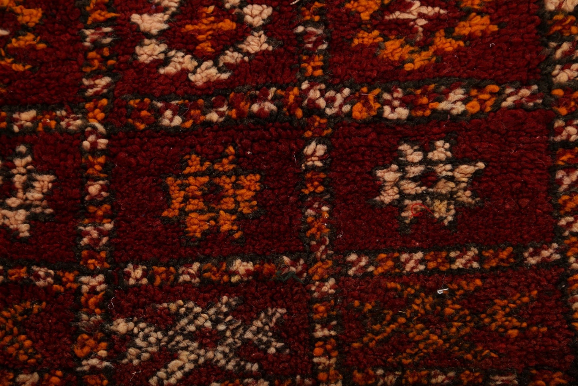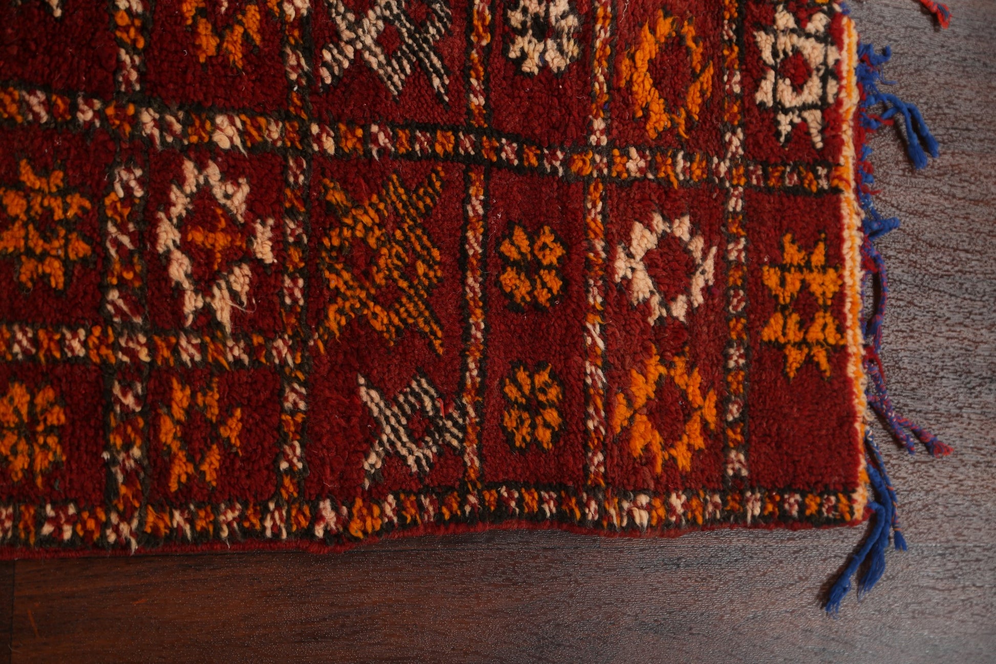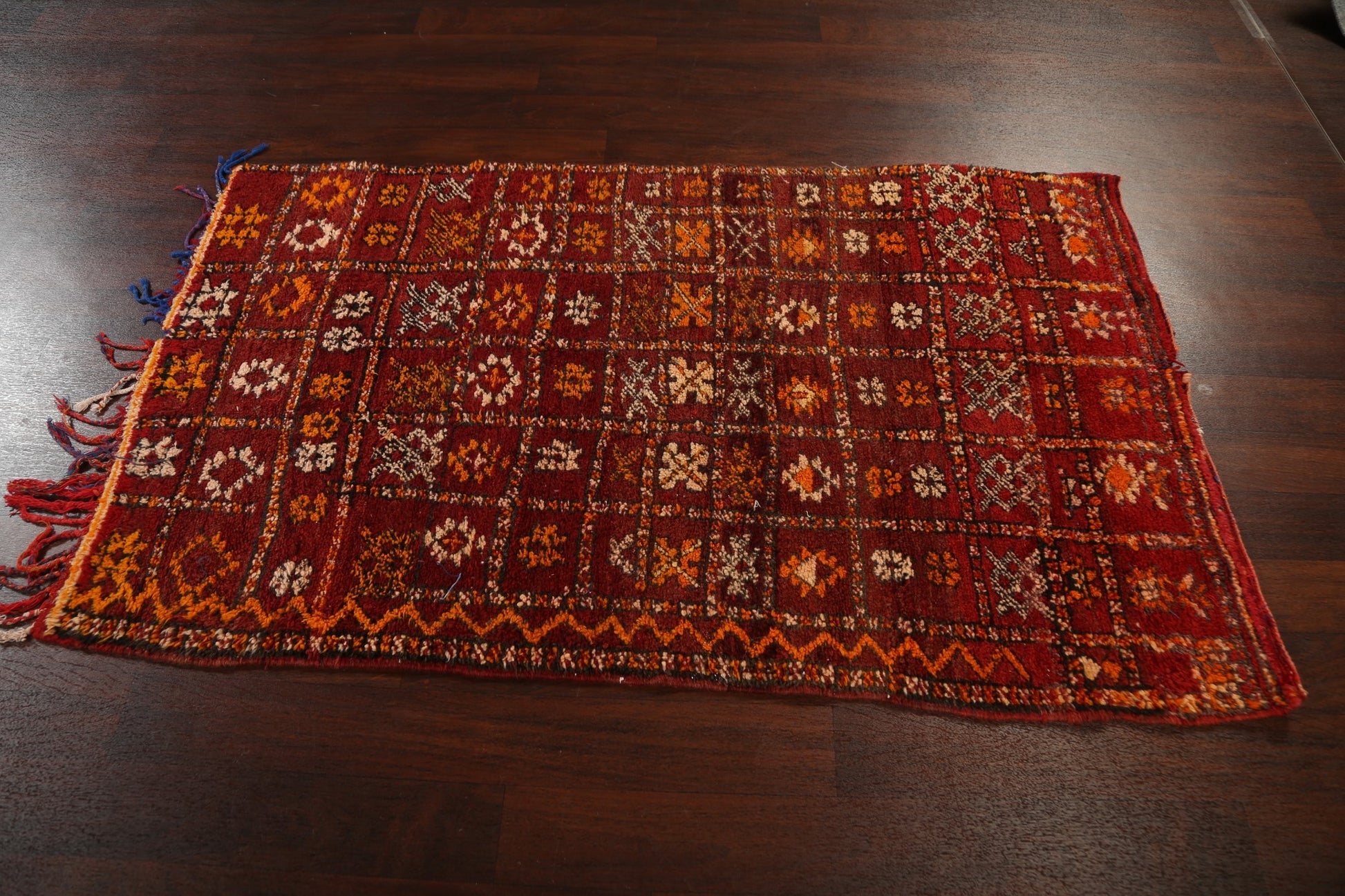 A Beautiful Genuine Morocco Moroccan rug is Hand Knotted by skillful weavers in Morocco with 100% Wool Material. This rug is in Very Good (Missing Fringe) condition. dimensions are 6' 0'' X 3' 7'' in foot and 183 X 109 in centimeter. the primary color is Red.