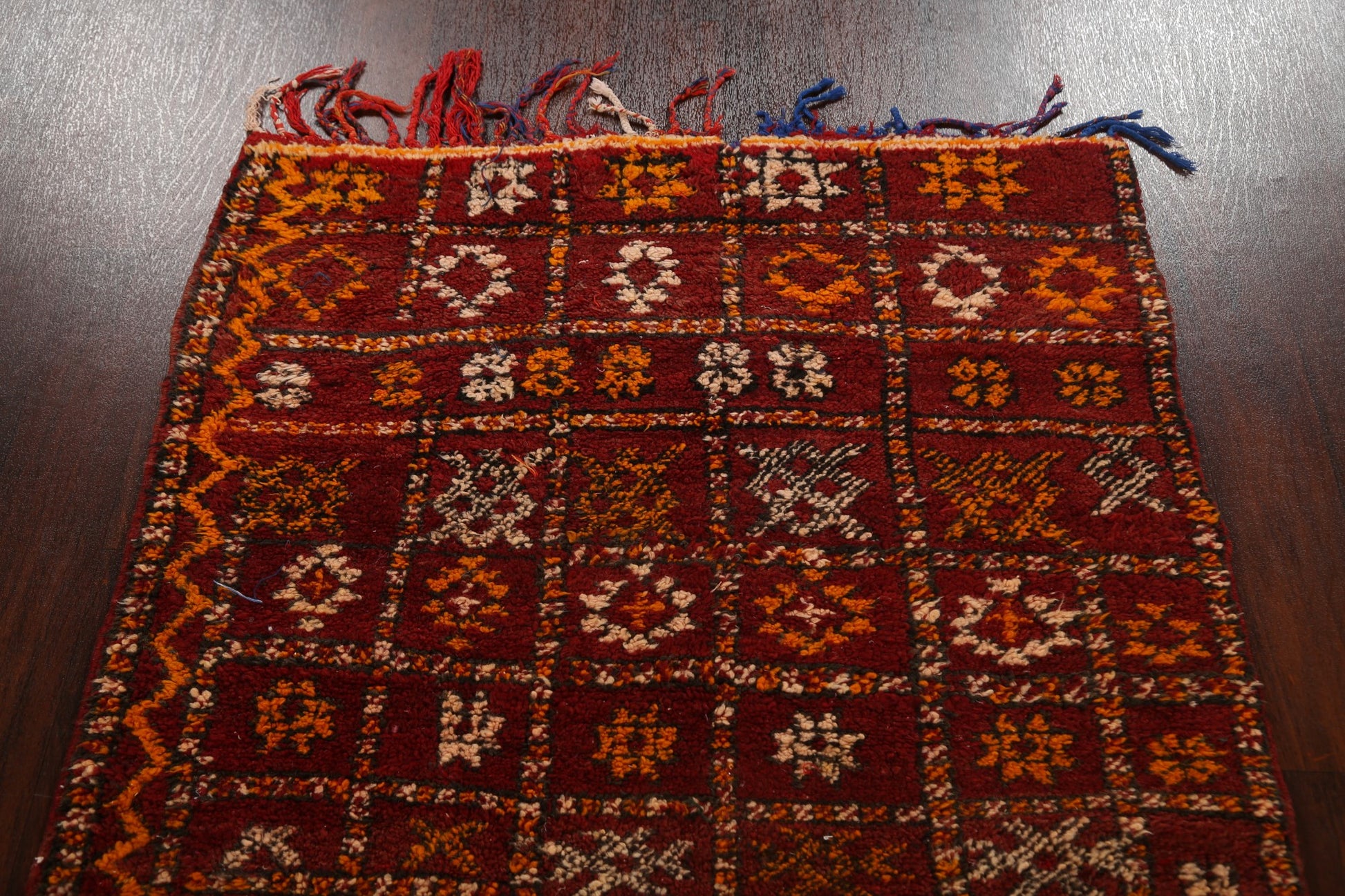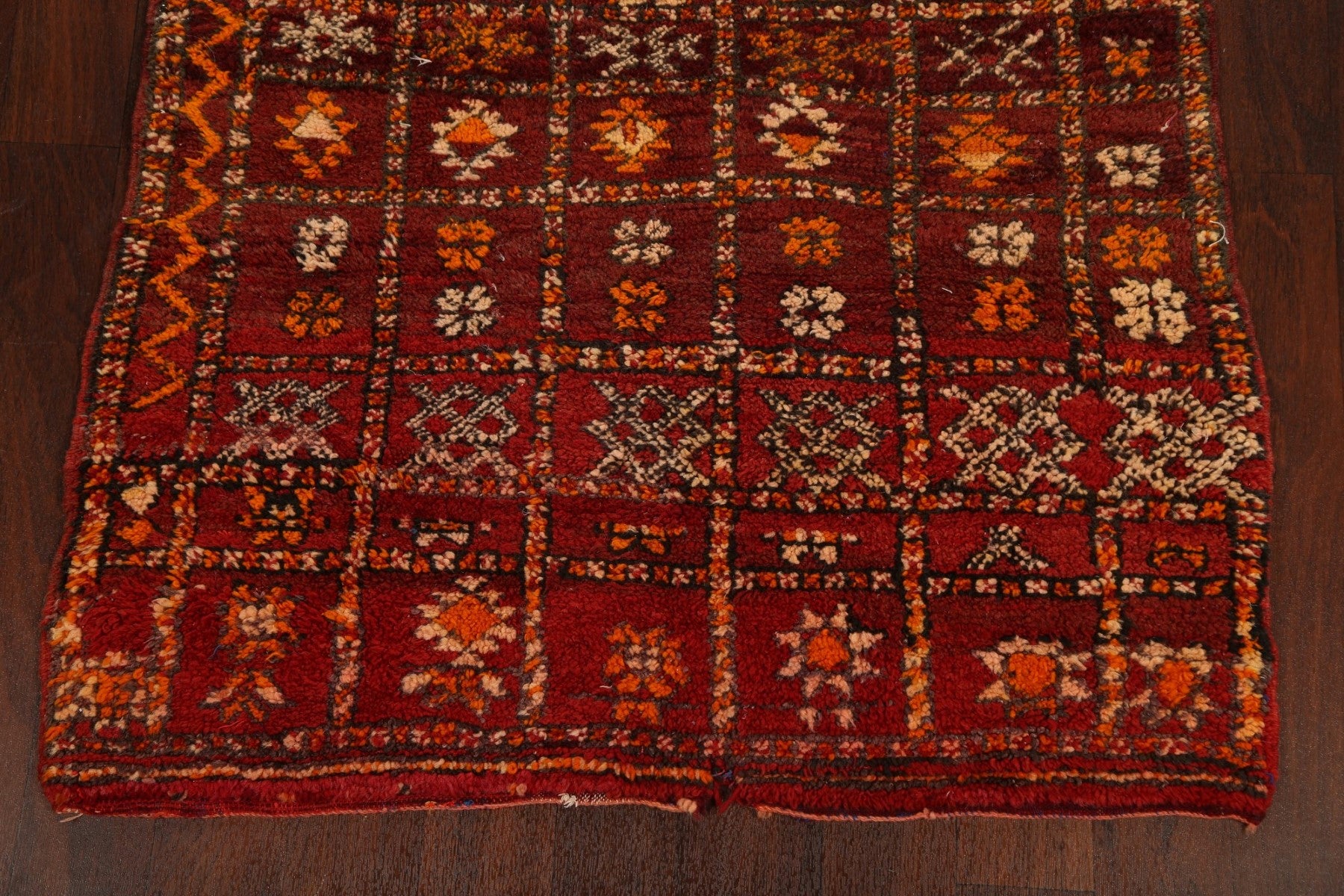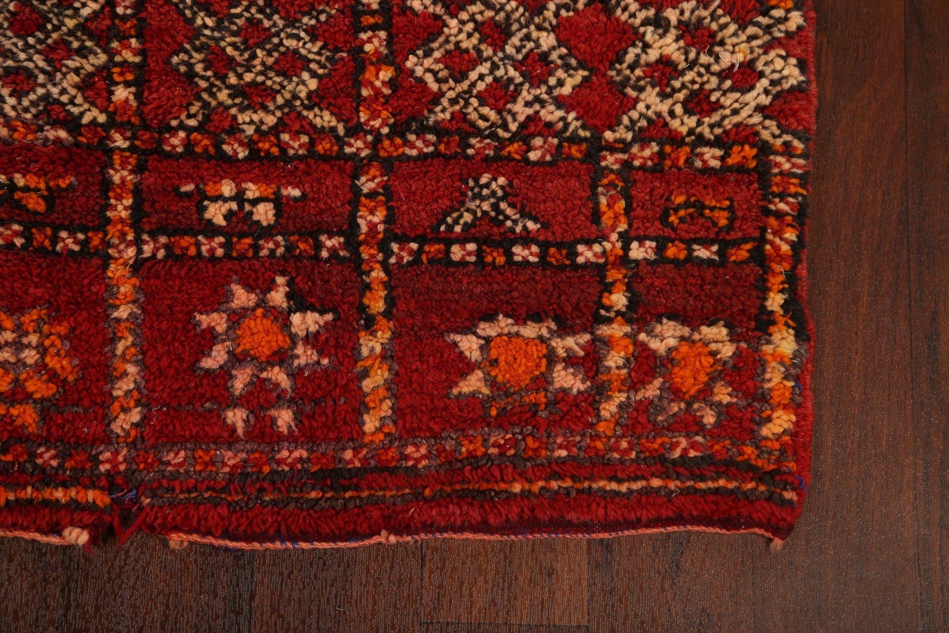 A Beautiful Genuine Morocco Moroccan rug is Hand Knotted by skillful weavers in Morocco with 100% Wool Material. This rug is in Very Good (Missing Fringe) condition. dimensions are 6' 0'' X 3' 7'' in foot and 183 X 109 in centimeter. the primary color is Red.