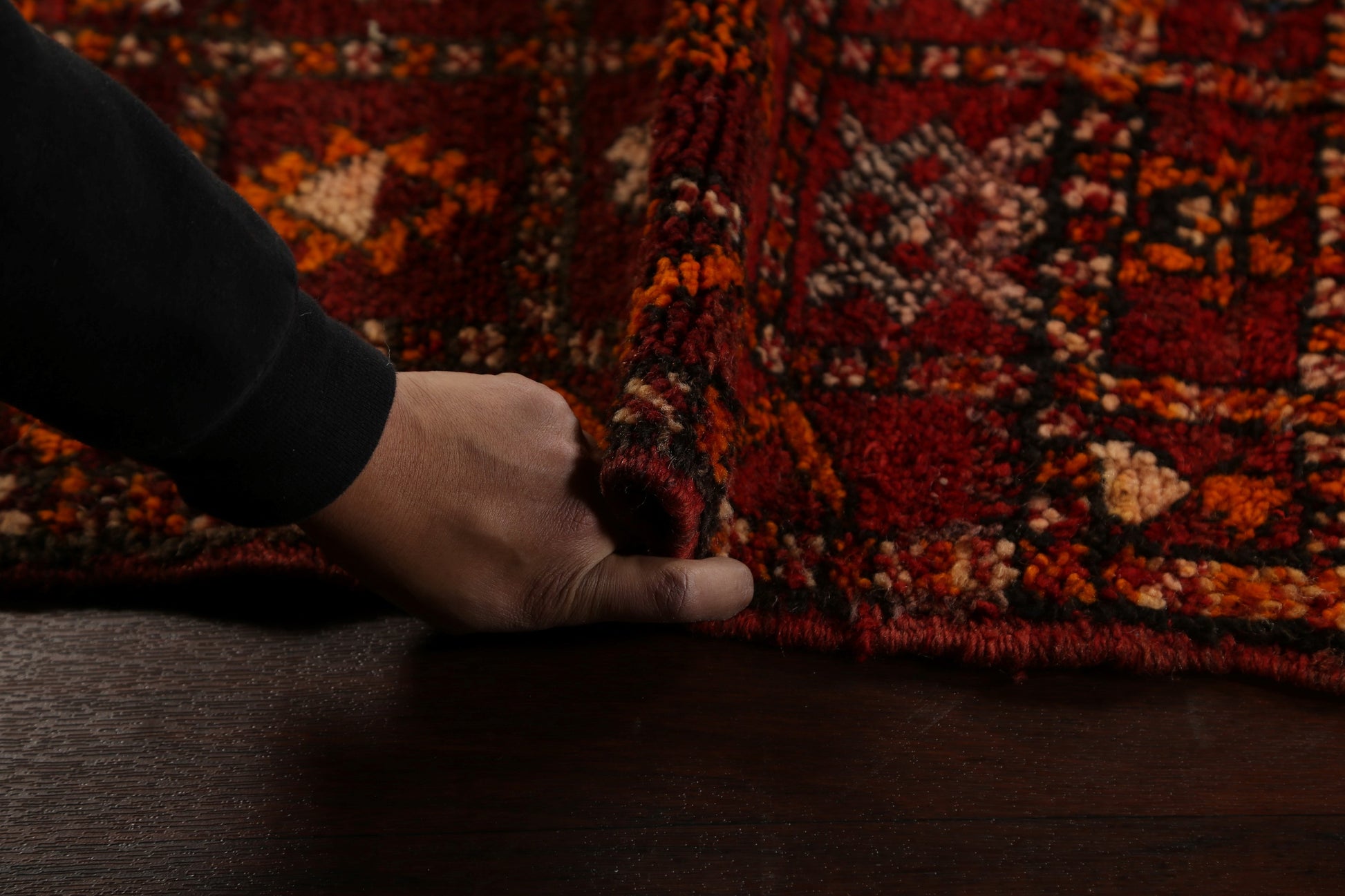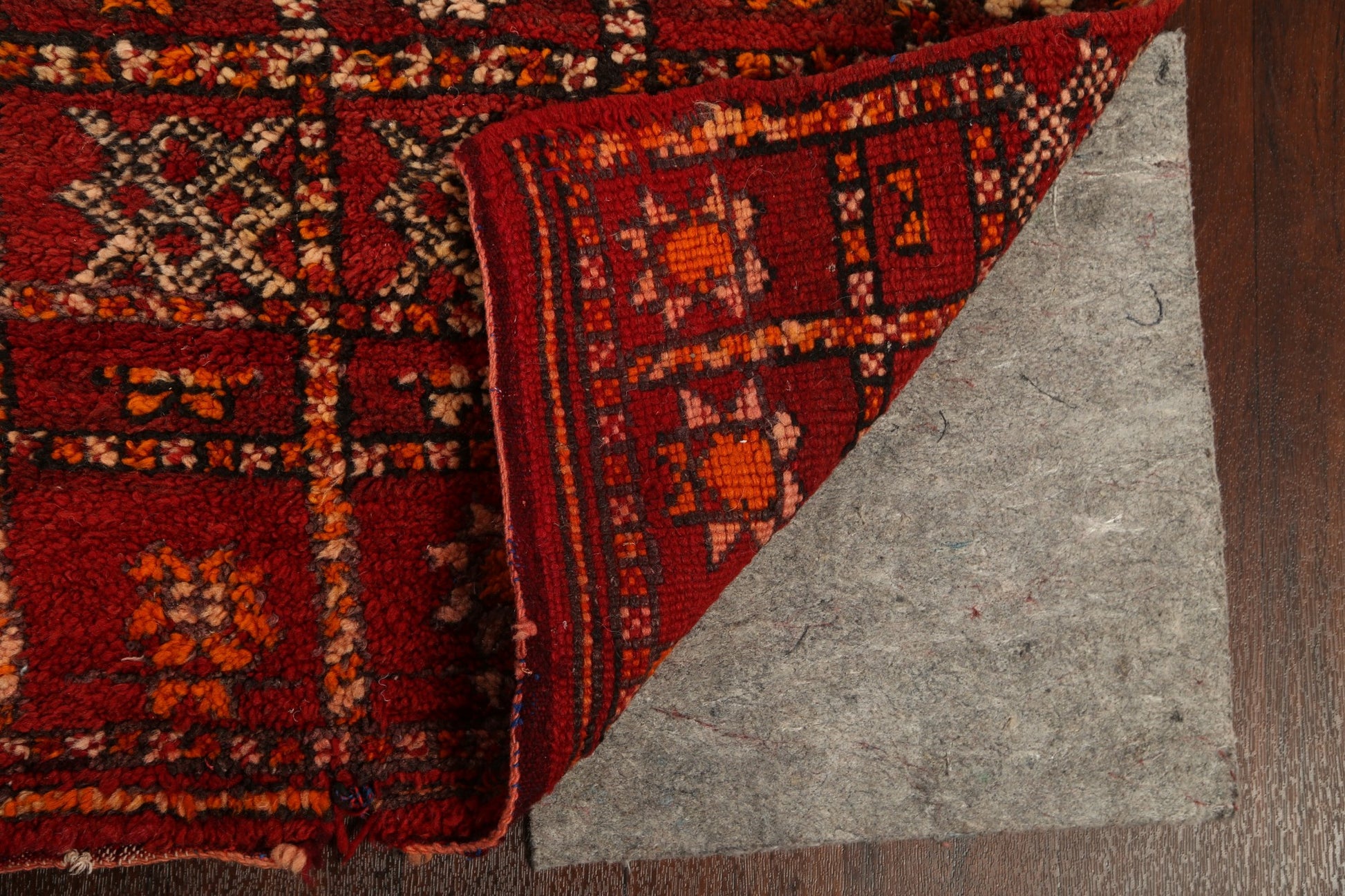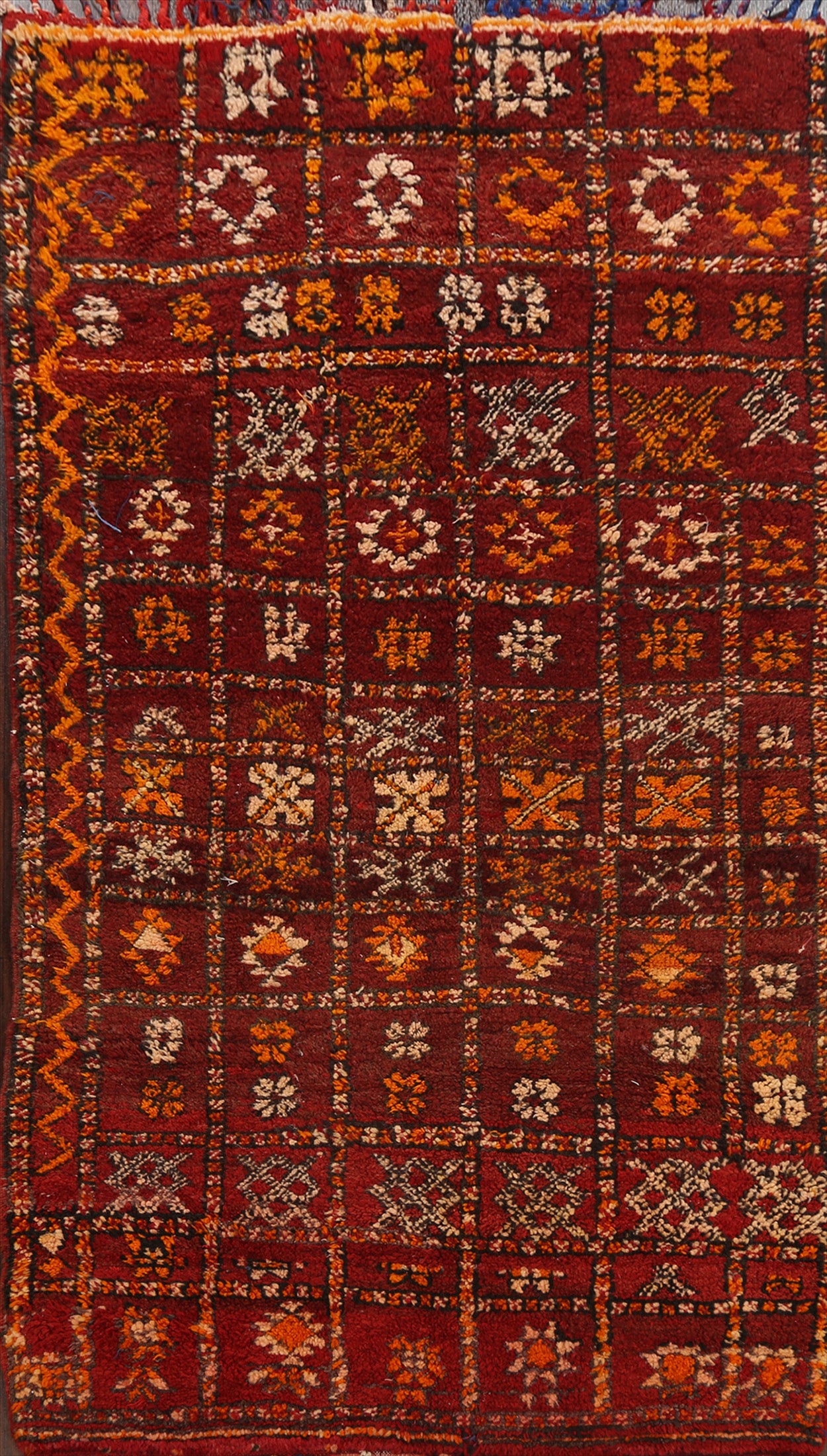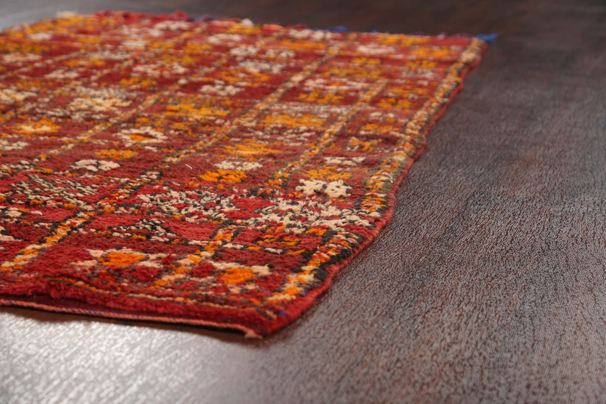 A Beautiful Genuine Morocco Moroccan rug is Hand Knotted by skillful weavers in Morocco with 100% Wool Material. This rug is in Very Good (Missing Fringe) condition. dimensions are 6' 0'' X 3' 7'' in foot and 183 X 109 in centimeter. the primary color is Red.