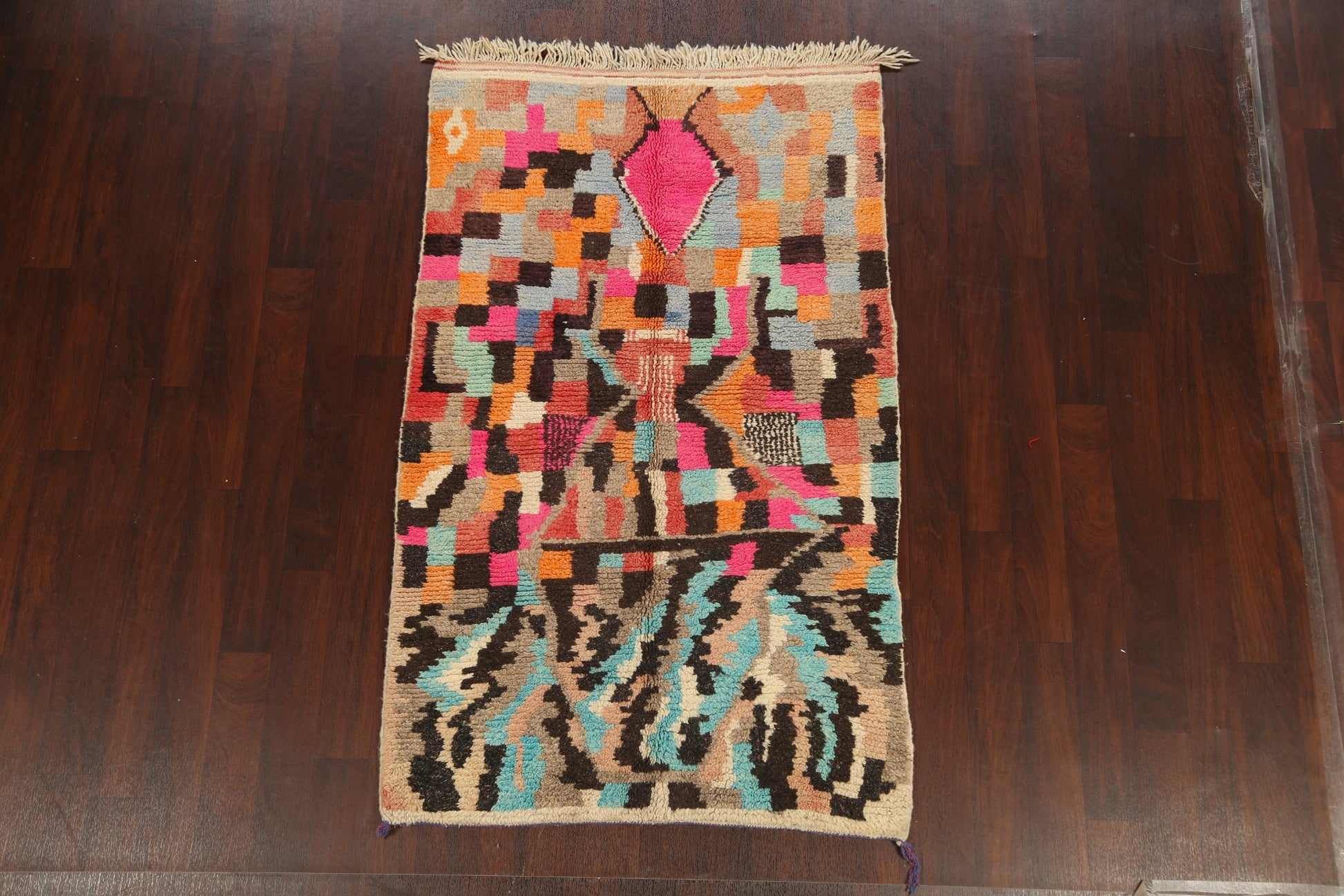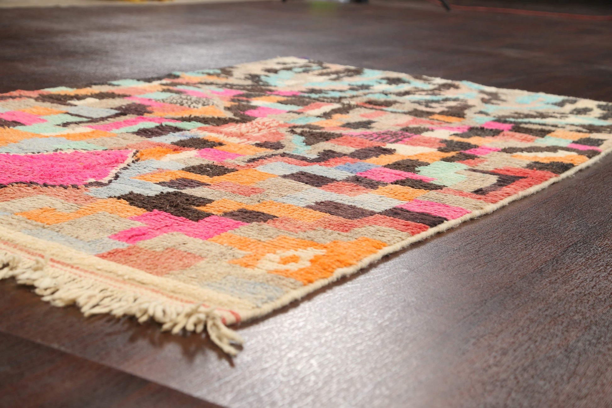 A Beautiful Genuine Morocco Moroccan rug is Hand Knotted by skillful weavers in Morocco with 100% Wool Material. This rug is in New, First Quality condition. dimensions are 6' 6'' X 4' 0'' in foot and 198 X 122 in centimeter. the primary color is Multi-Colored.