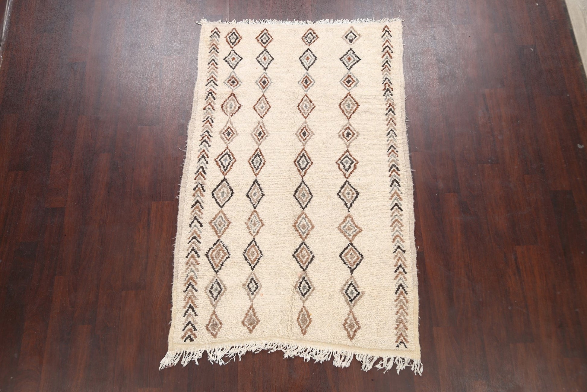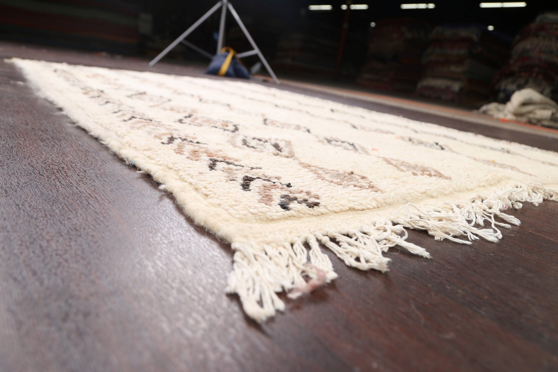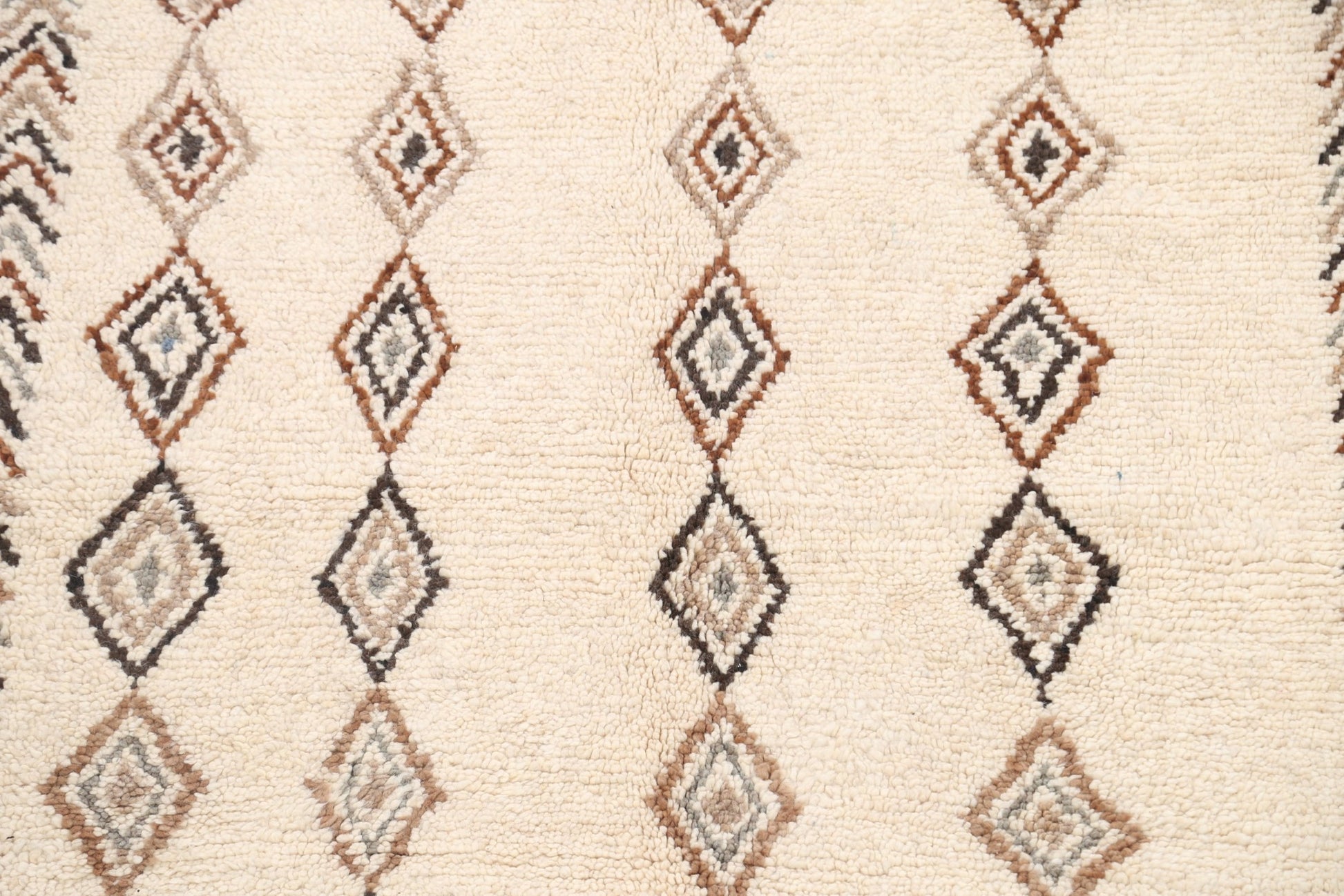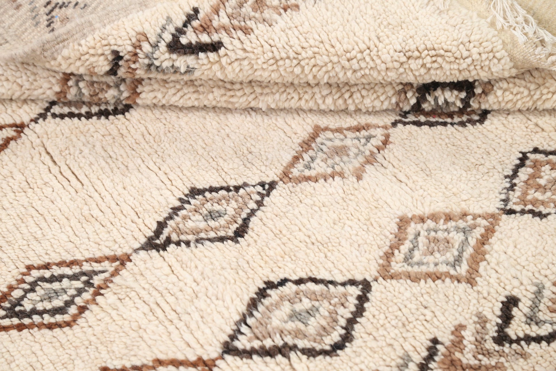 A Beautiful Genuine Morocco Moroccan rug is Hand Knotted by skillful weavers in Morocco with 100% Wool Material. This rug is in Very Good condition. dimensions are 6' 7'' X 4' 4'' in foot and 201 X 132 in centimeter. the primary color is Beige & Ivories.