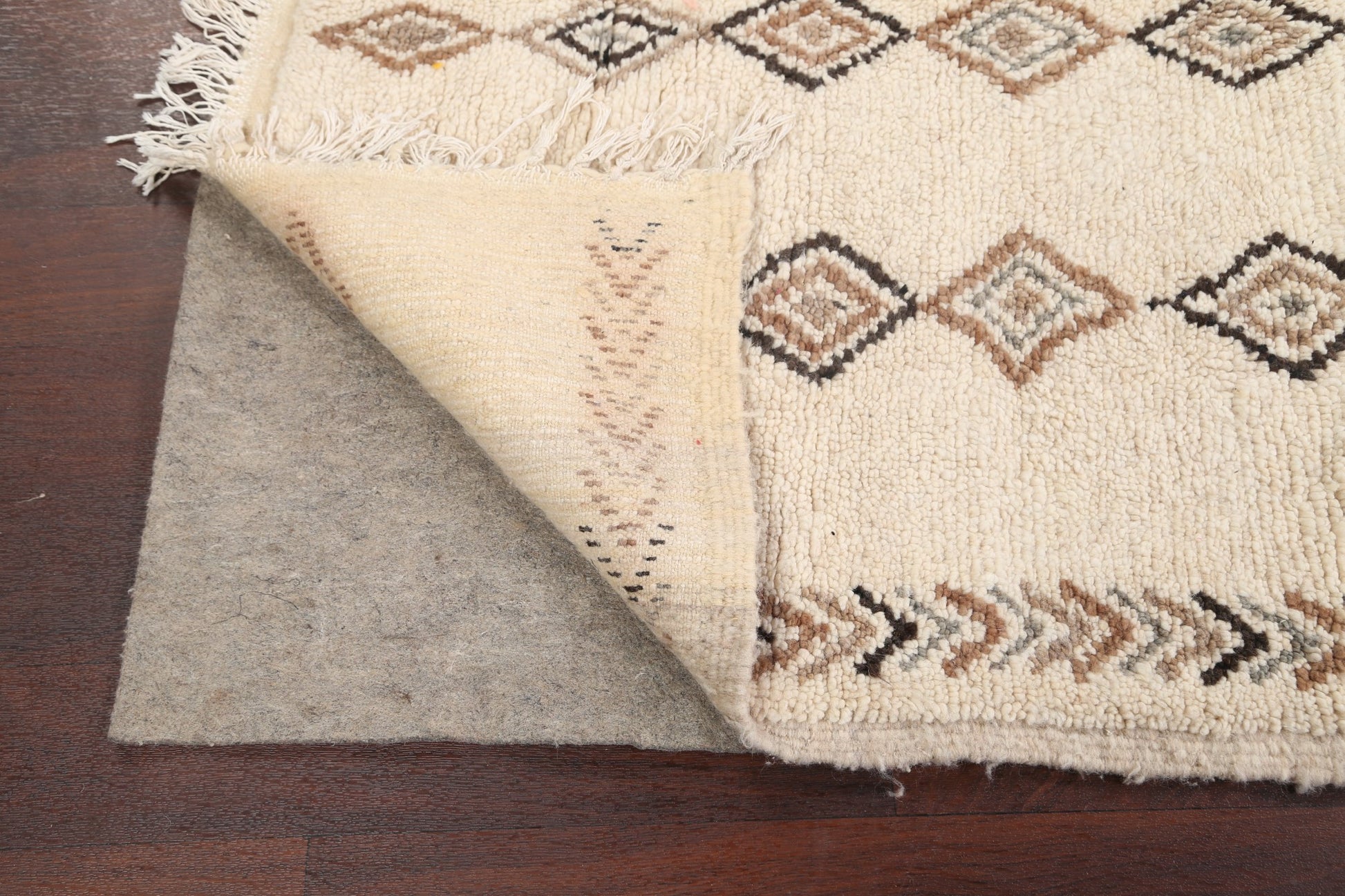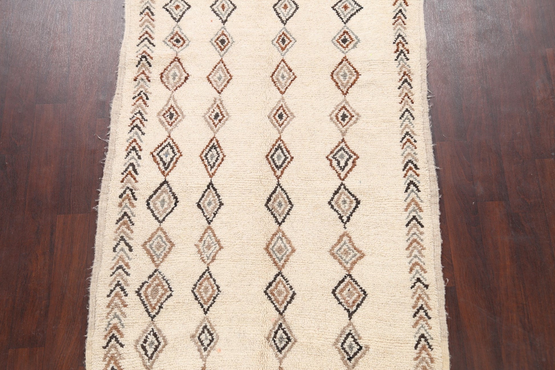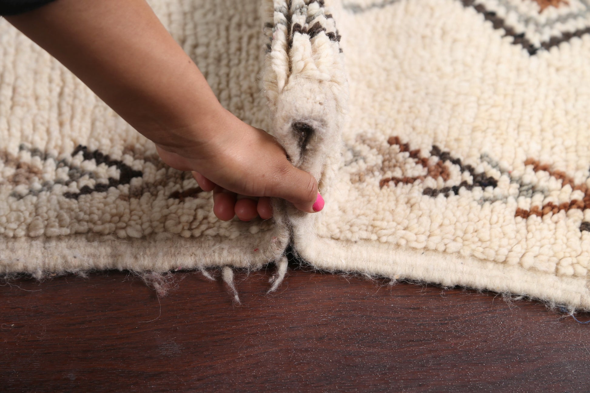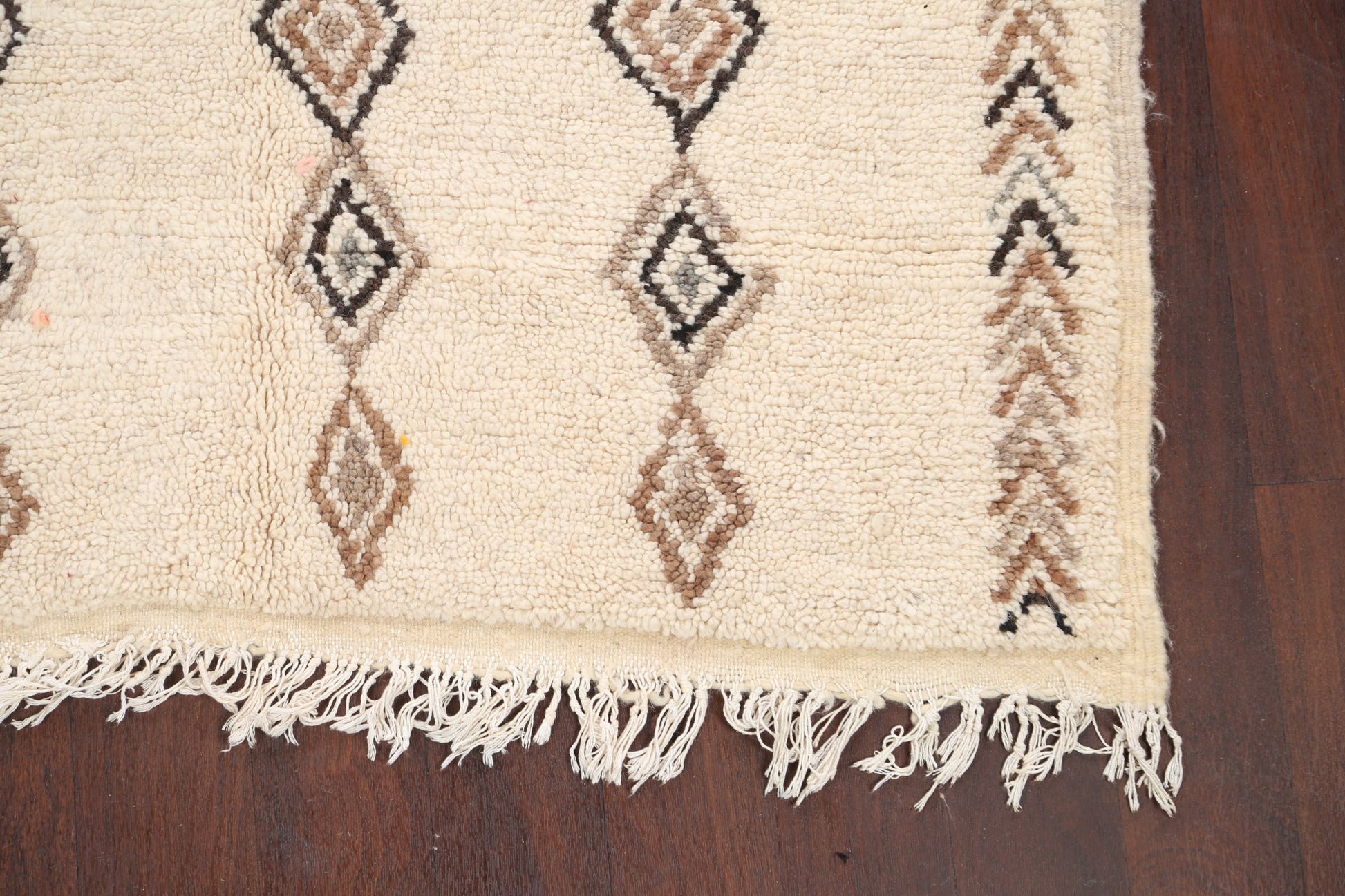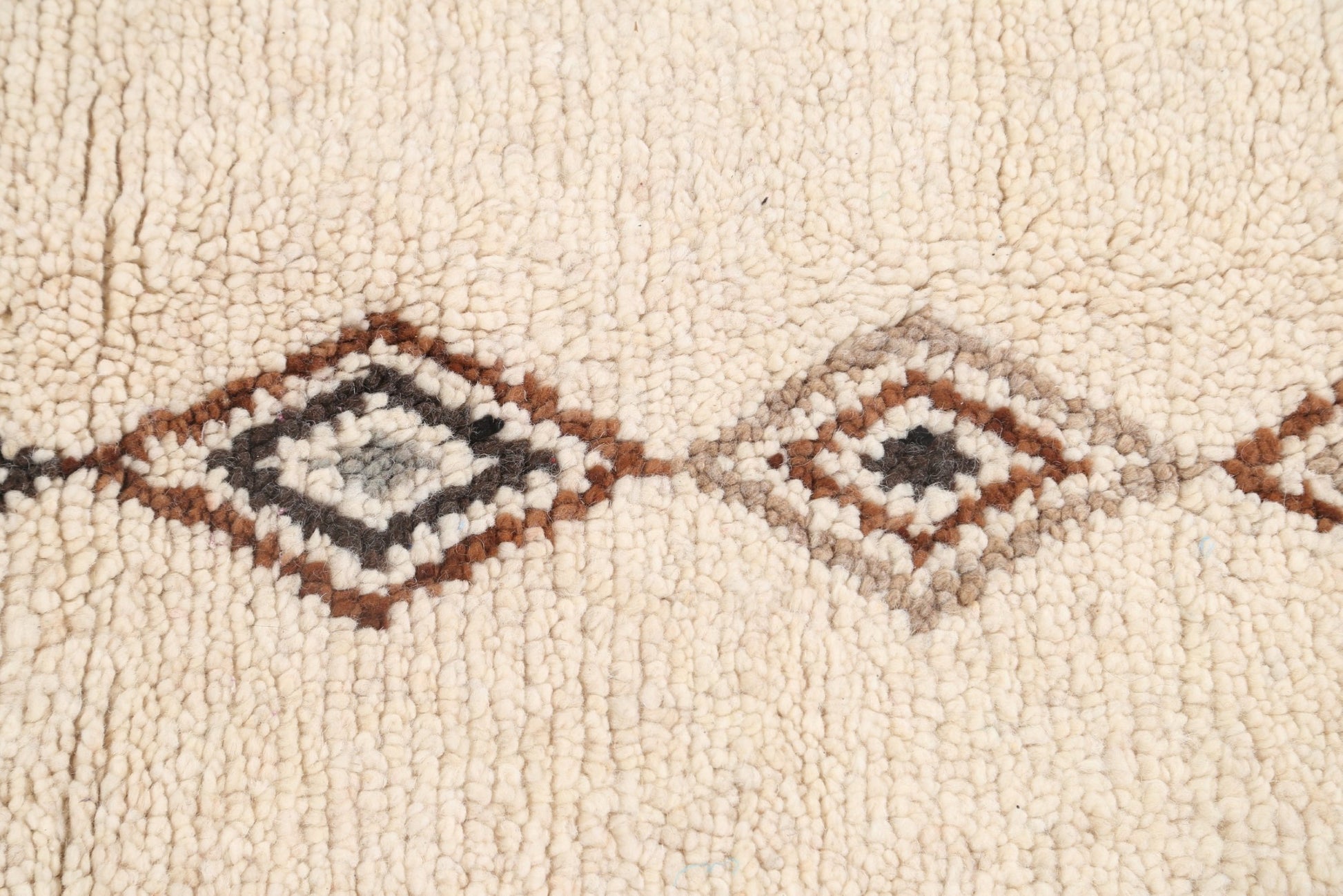 A Beautiful Genuine Morocco Moroccan rug is Hand Knotted by skillful weavers in Morocco with 100% Wool Material. This rug is in Very Good condition. dimensions are 6' 7'' X 4' 4'' in foot and 201 X 132 in centimeter. the primary color is Beige & Ivories.