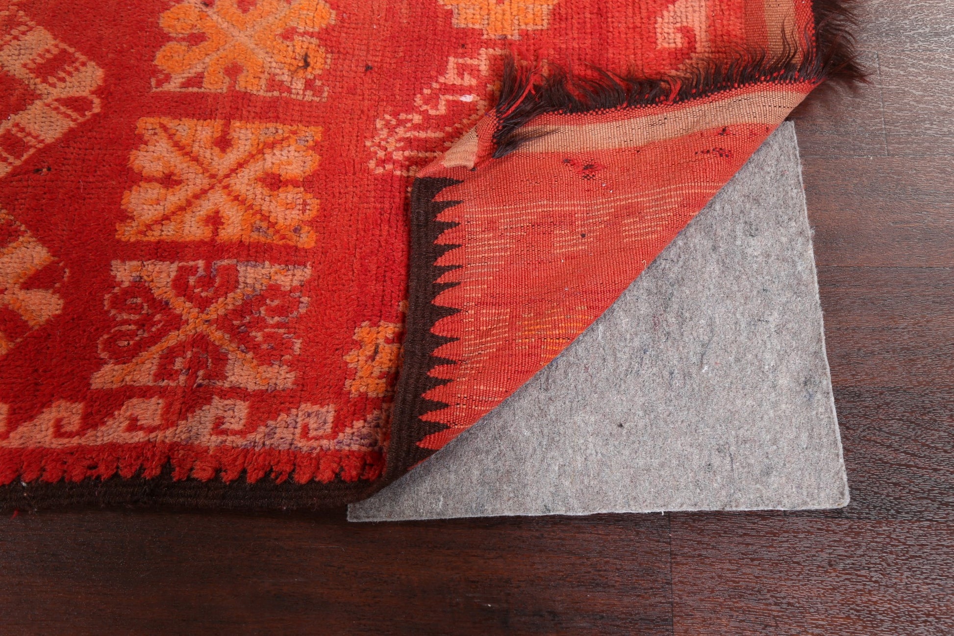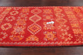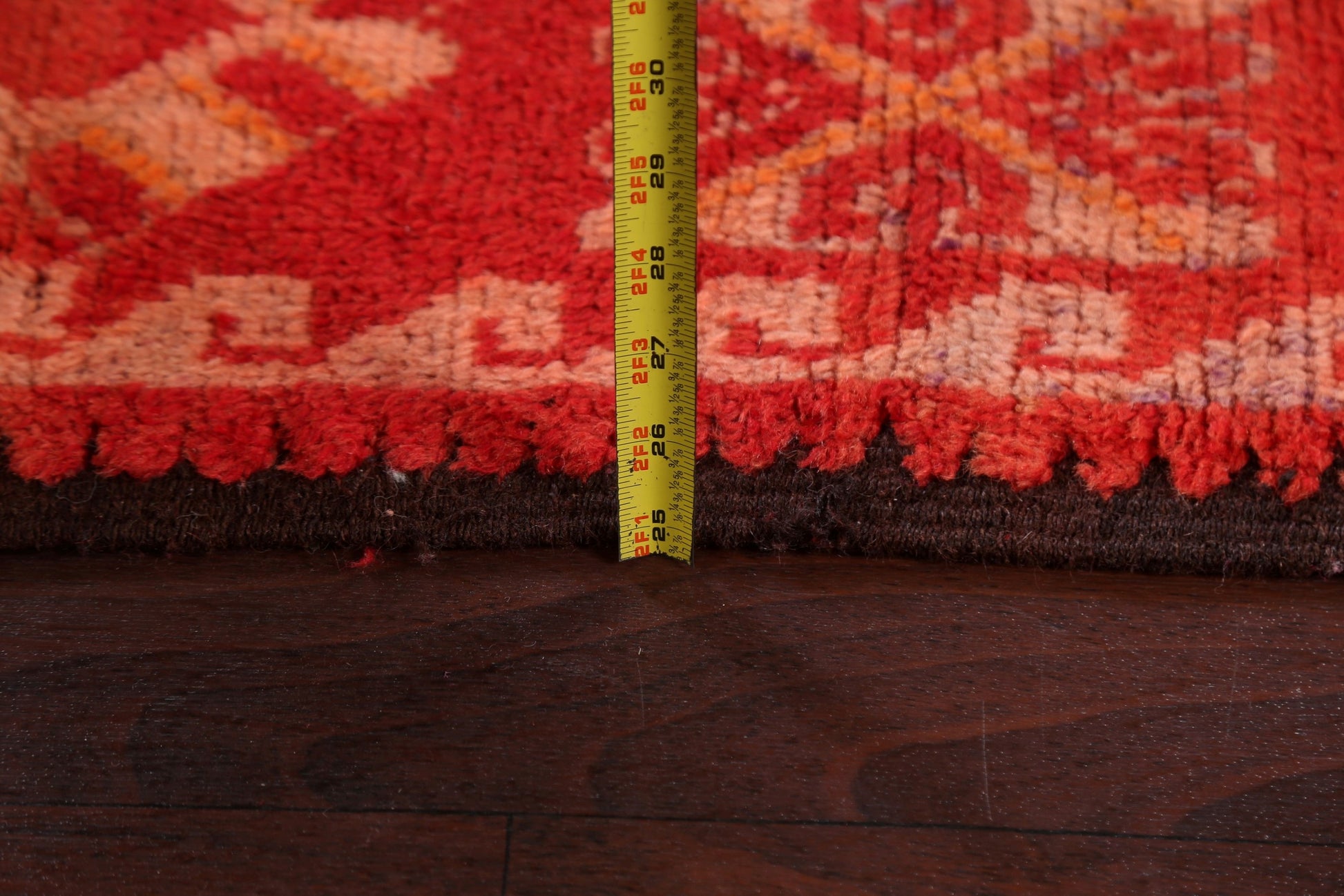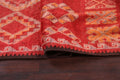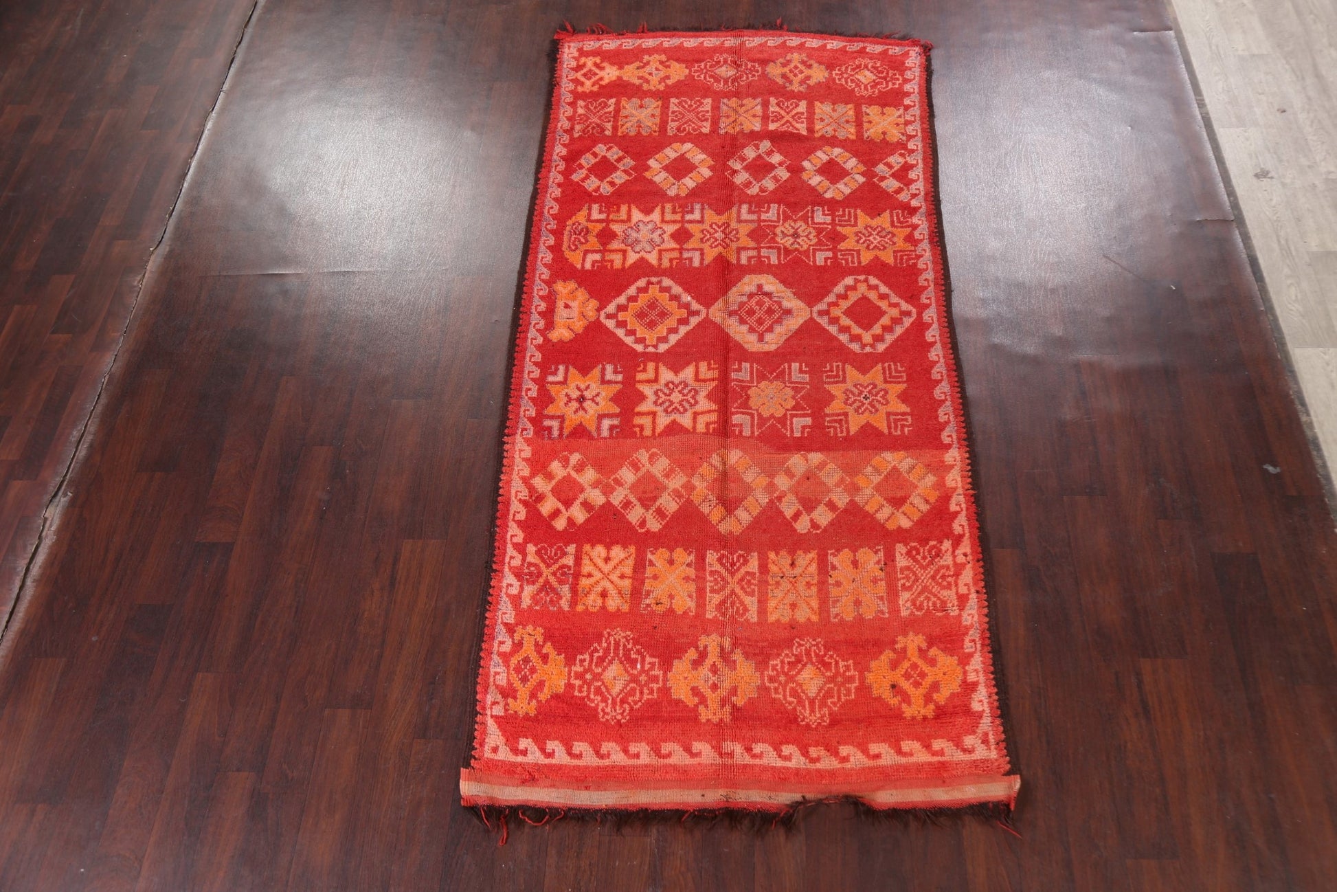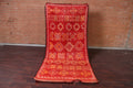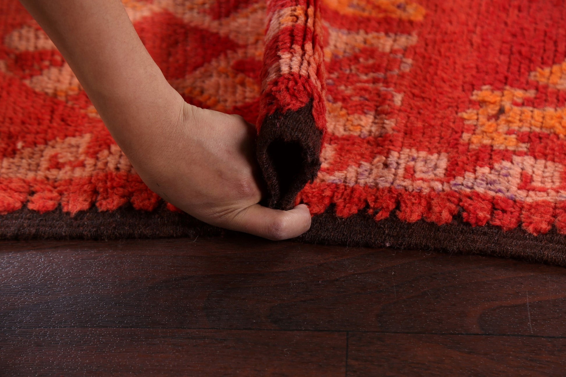 A Beautiful Genuine Morocco Moroccan rug is Hand Knotted by skillful weavers in Morocco with 100% Wool Material. This rug is in Very Good (Low Pile-Abrash) condition. dimensions are 10' 0'' X 4' 8'' in foot and 305 X 142 in centimeter. the primary color is Red.